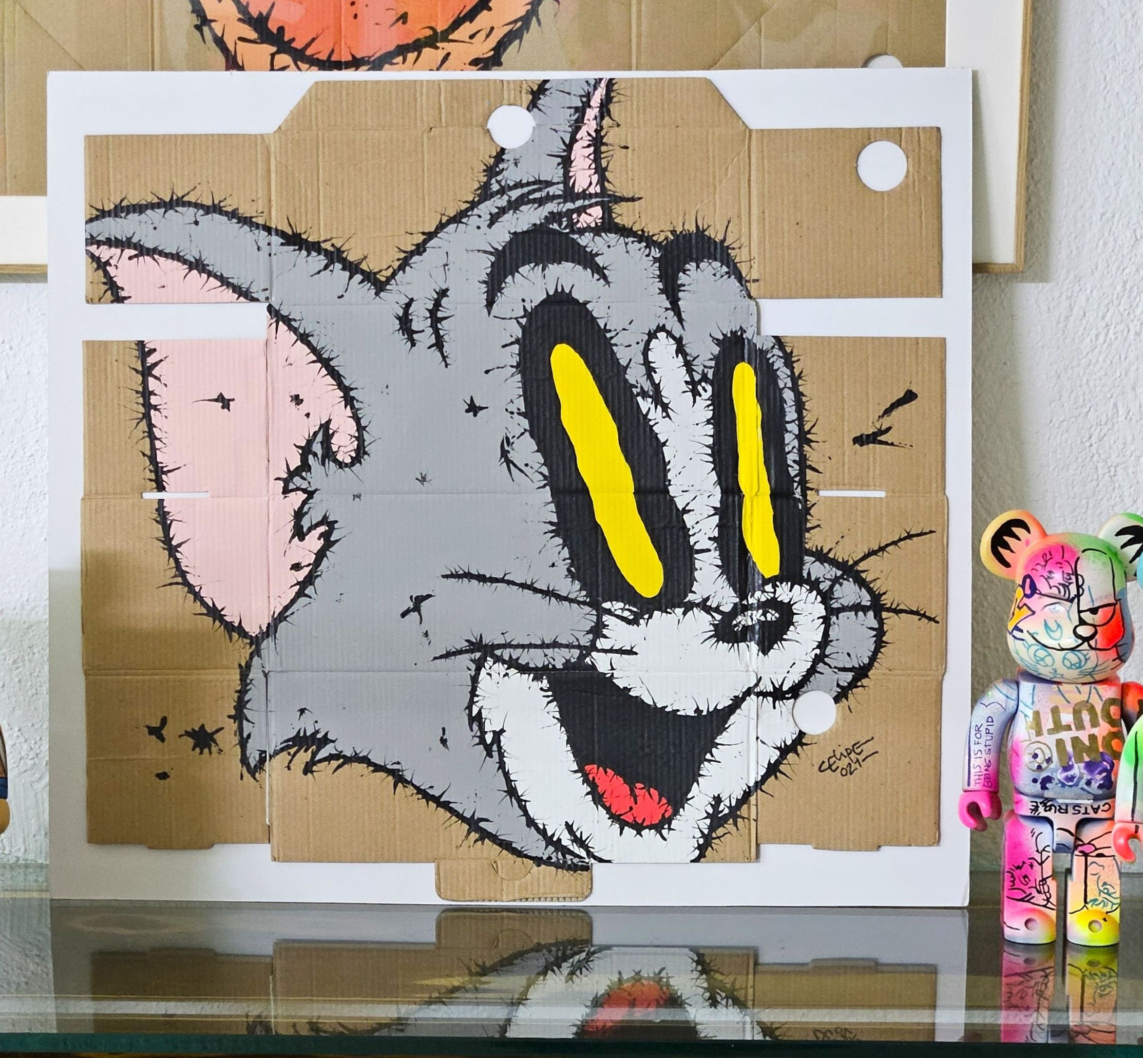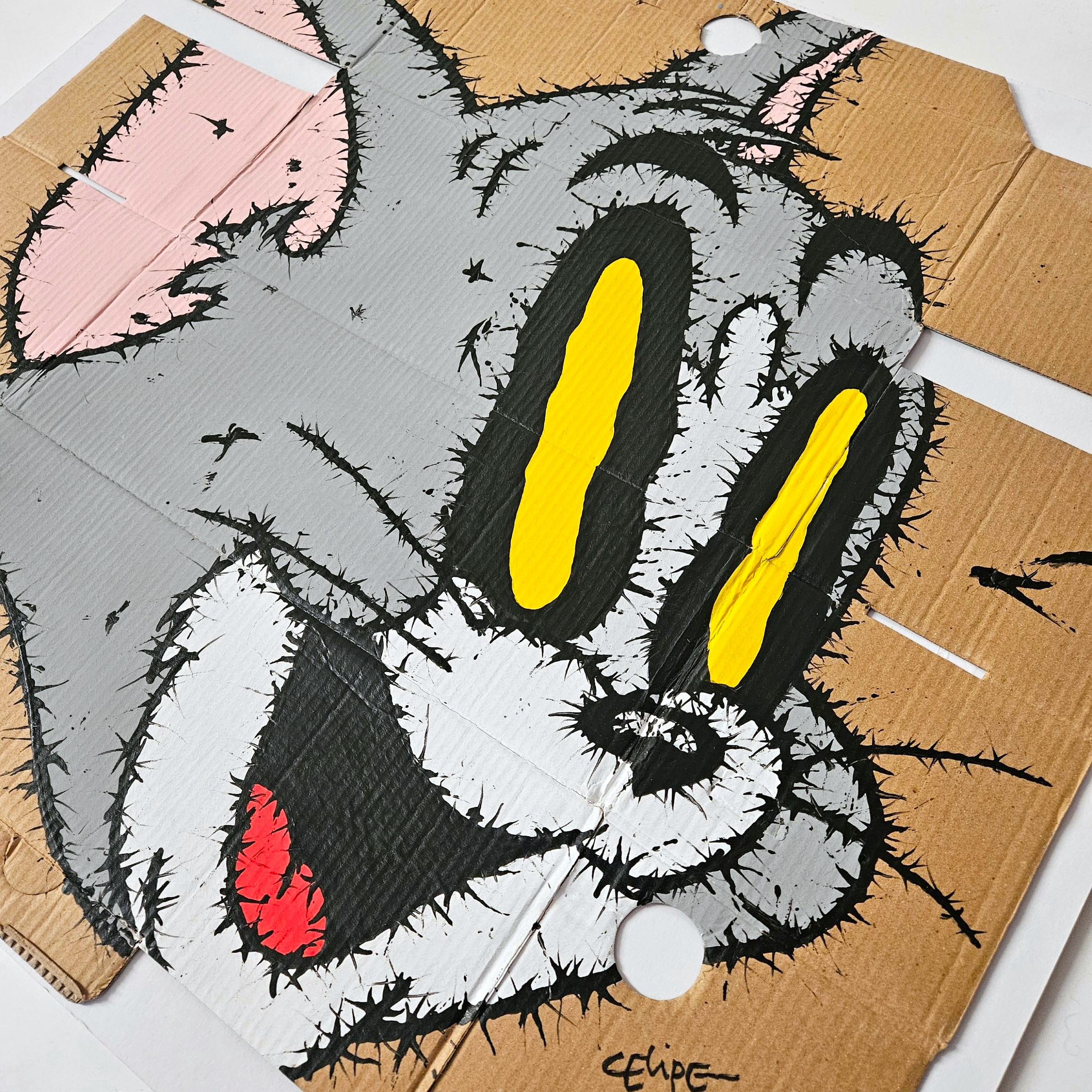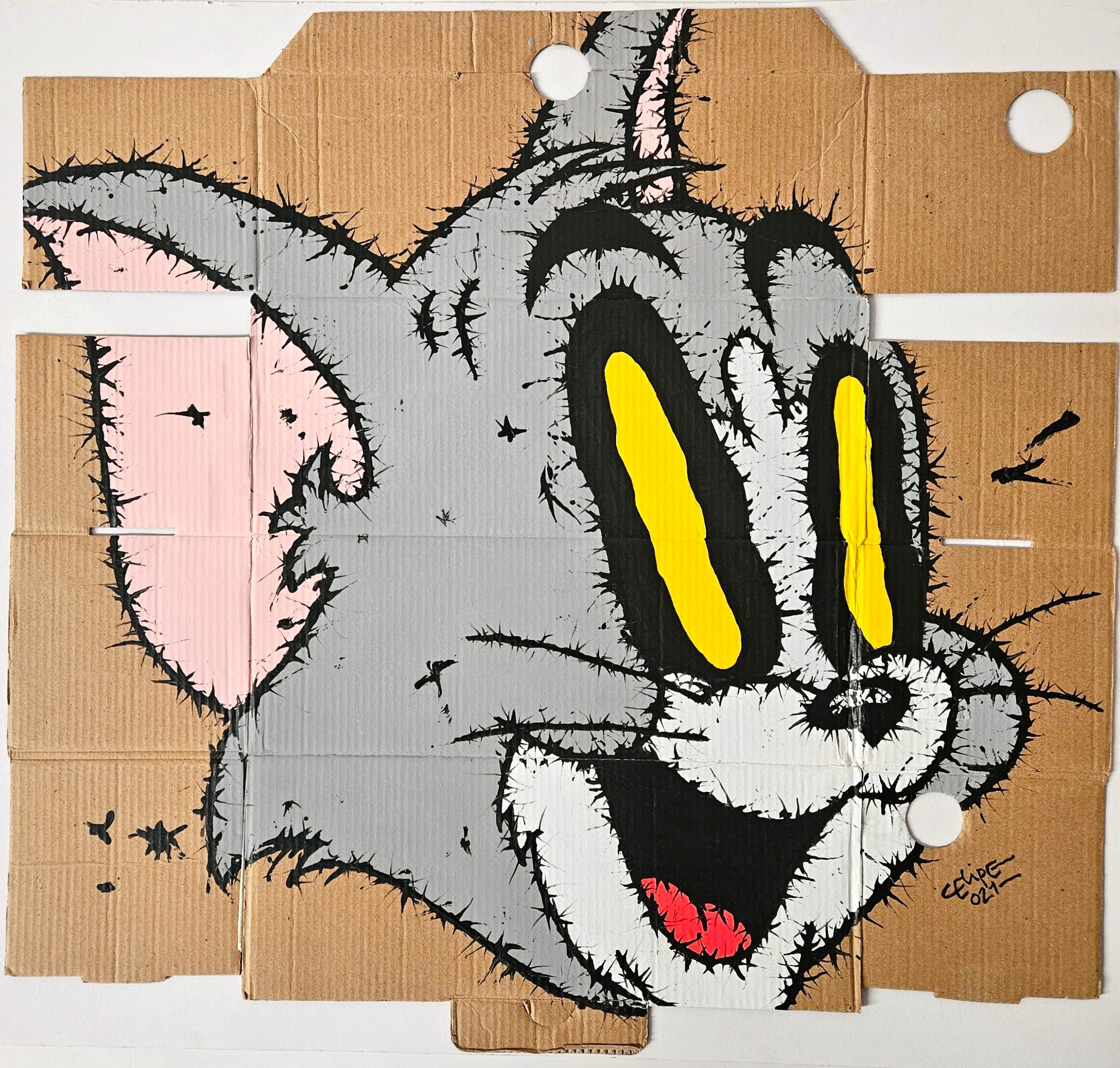 • Technique: Acrylic on repurposed cardboard.