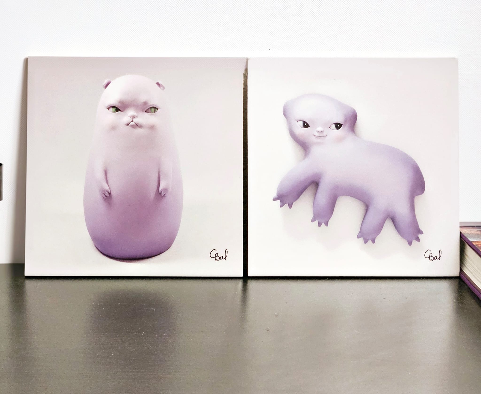 Through a meditative process, she transforms simple shapes into characters full of life, applying monochromatic colors that enhance their soft curves and unique personalities.