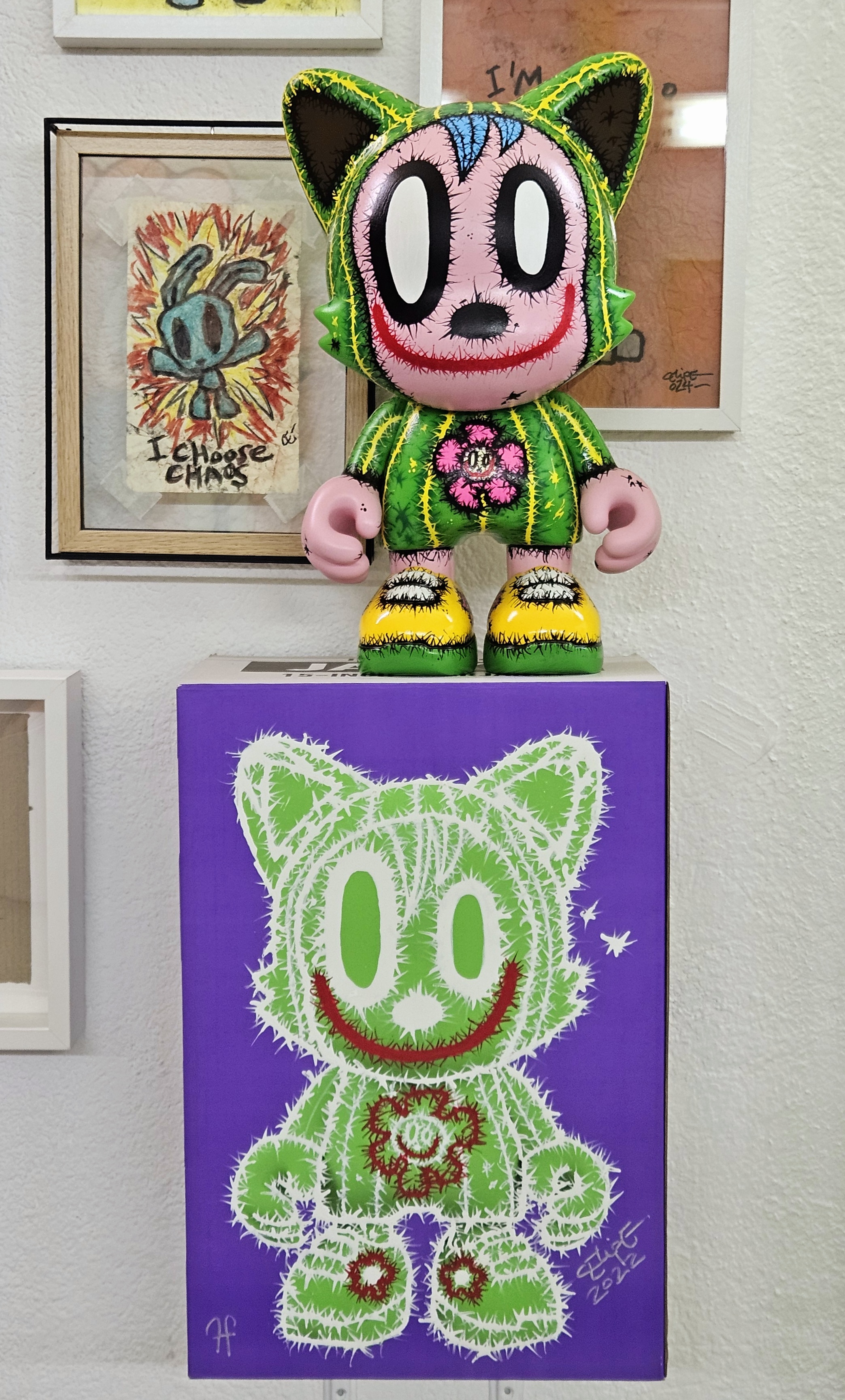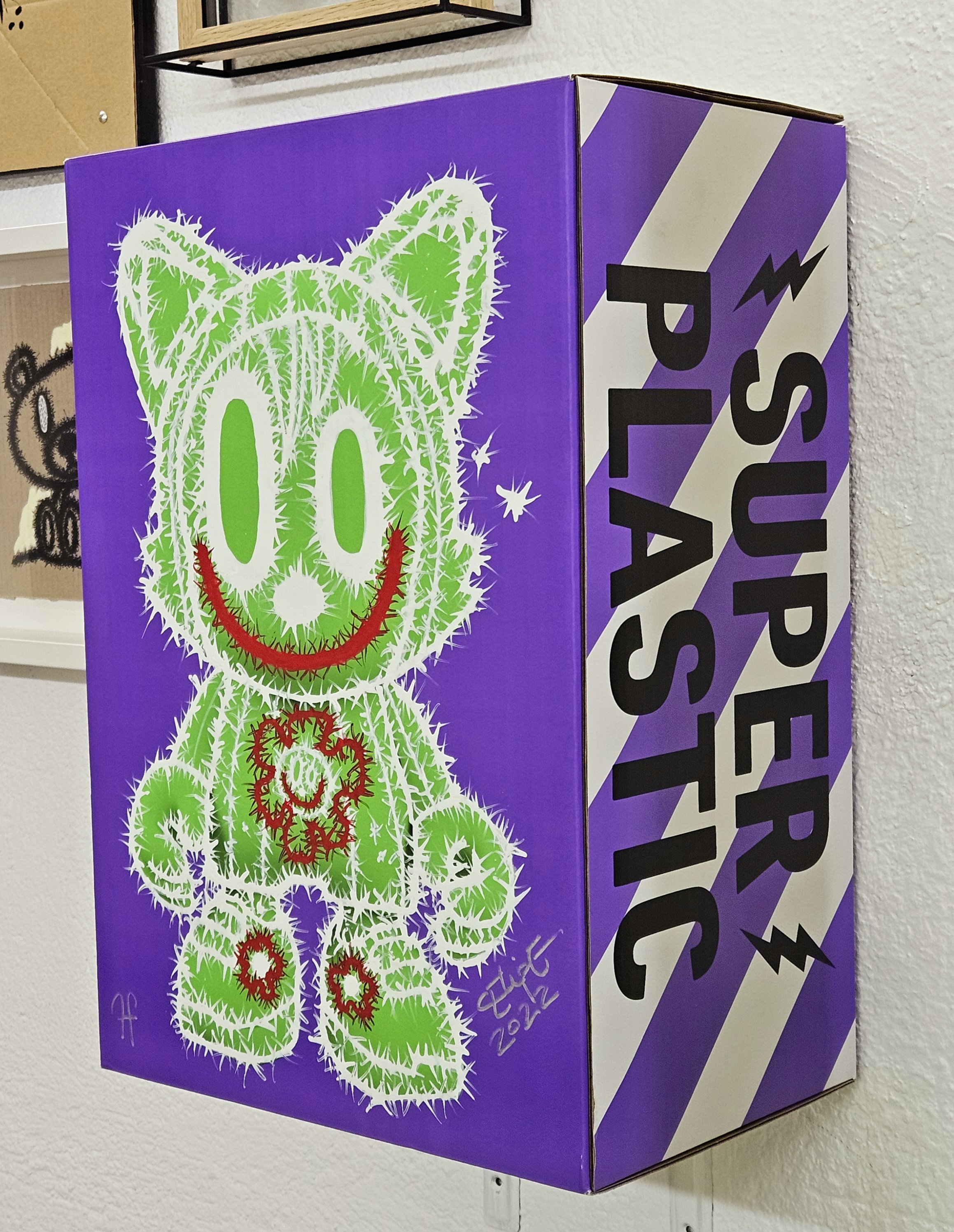 • This custom vinyl toy will be delivered with his original cardboard box. The box has been manually intervened by the artist, turning it into a unique piece that is part of the artwork itself.