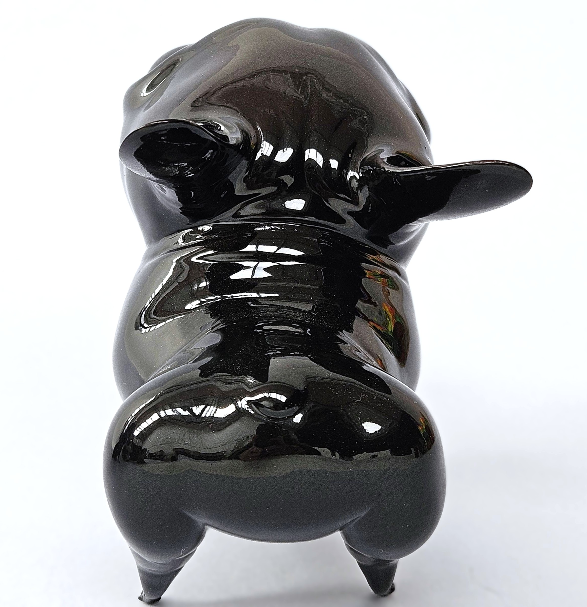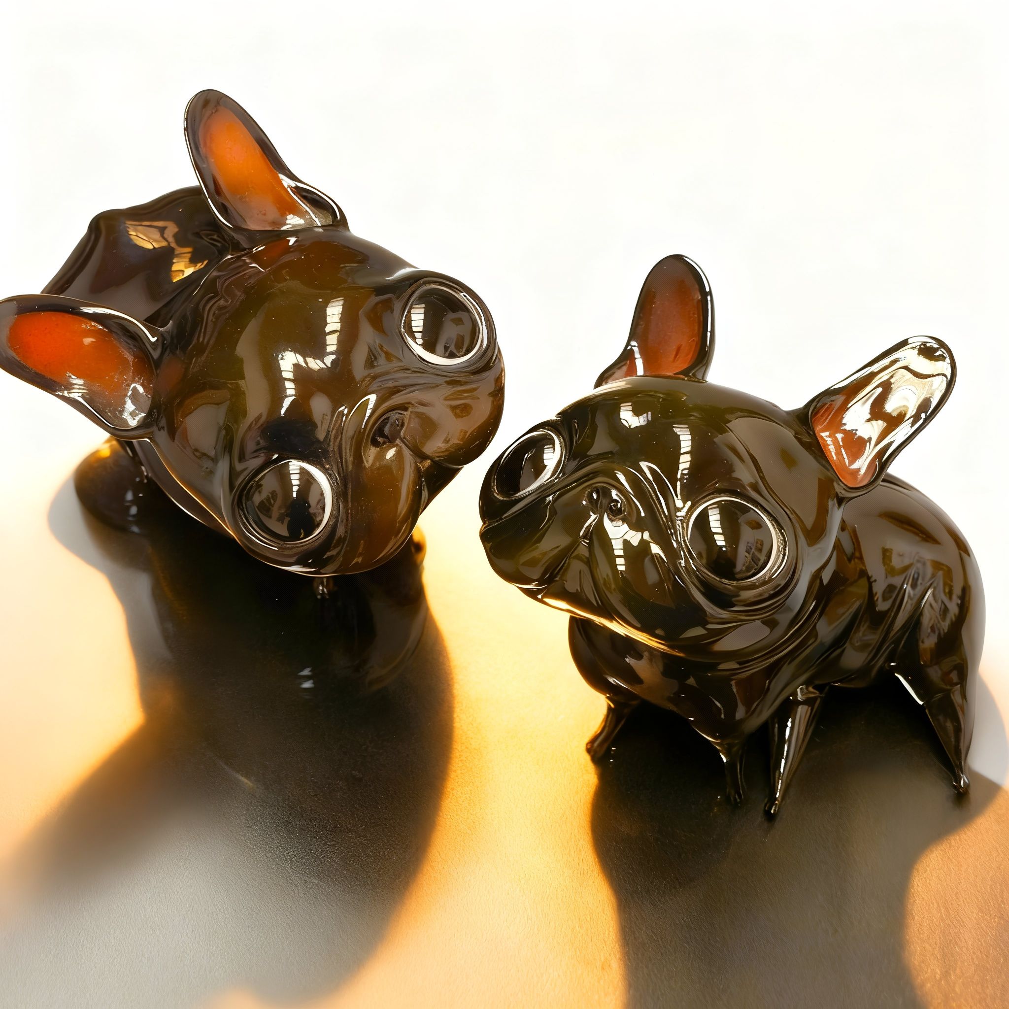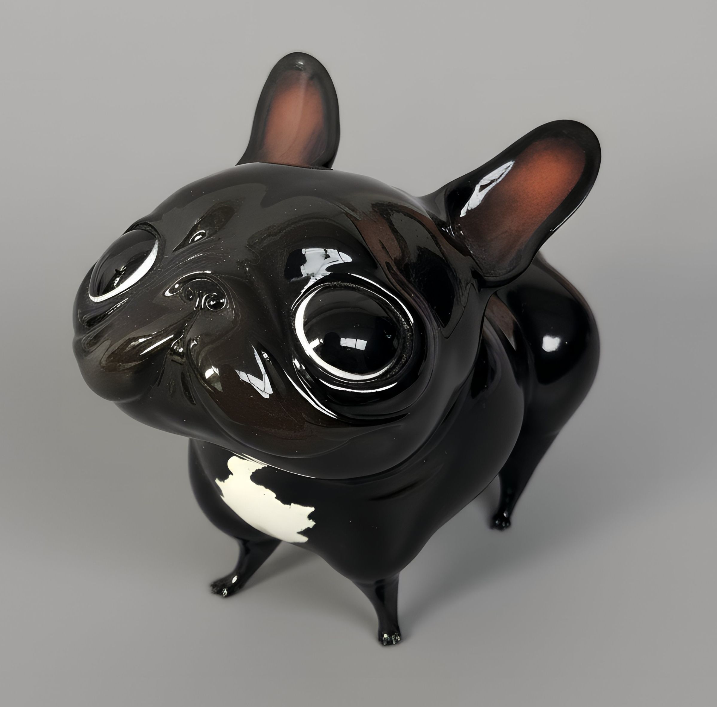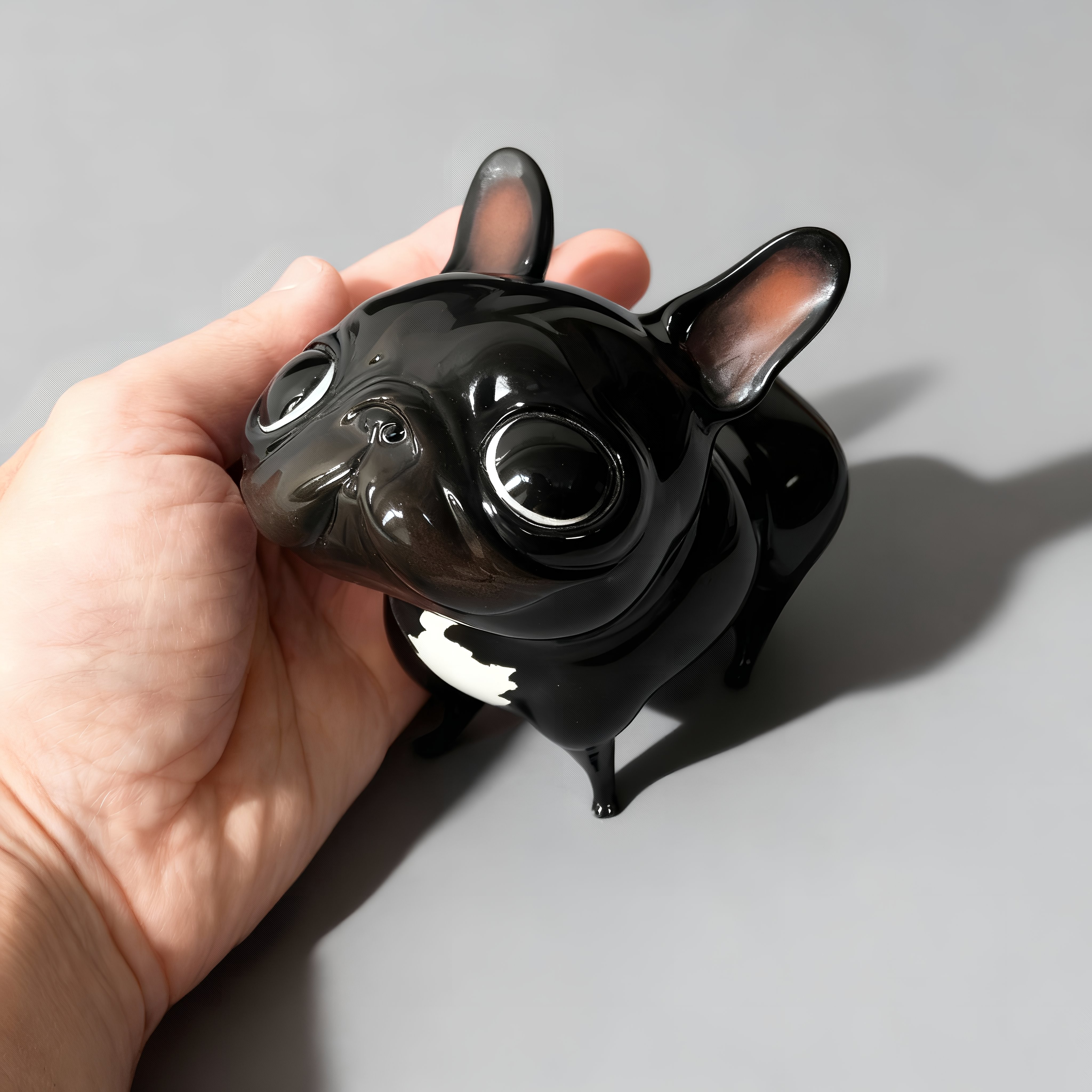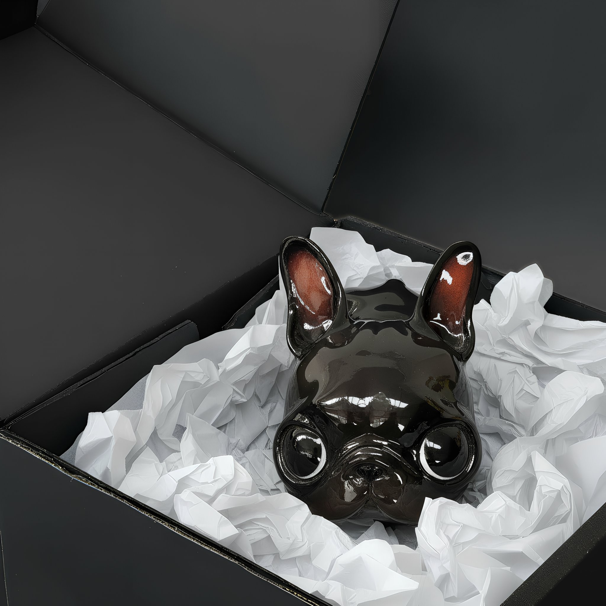 It doesn’t need to bark for you to look at it. Its black shine, polished like obsidian, and that firm posture speak for it. But it’s the eyes—round, attentive, almost pleading—that reveal its true intention: it seeks connection. This dog by Katyushka Art, a hand-painted resin sculpture, combines minimalist elegance with a vulnerable touch that makes it irresistible. Its compact body, clean lines, and soft reflections turn the ordinary into something sculptural.