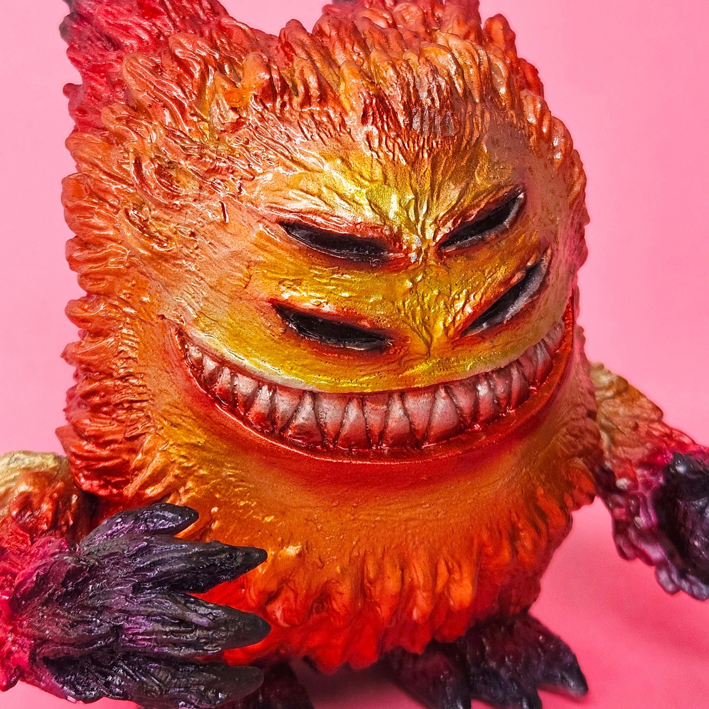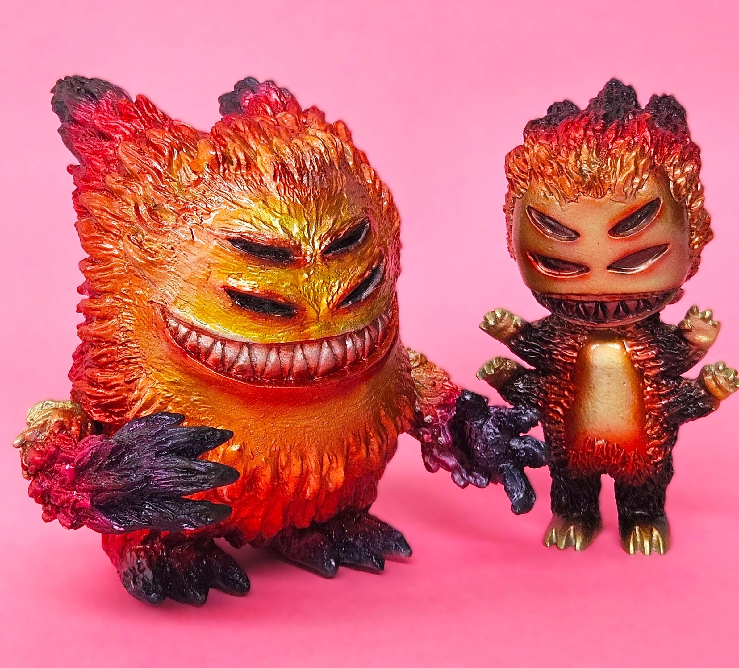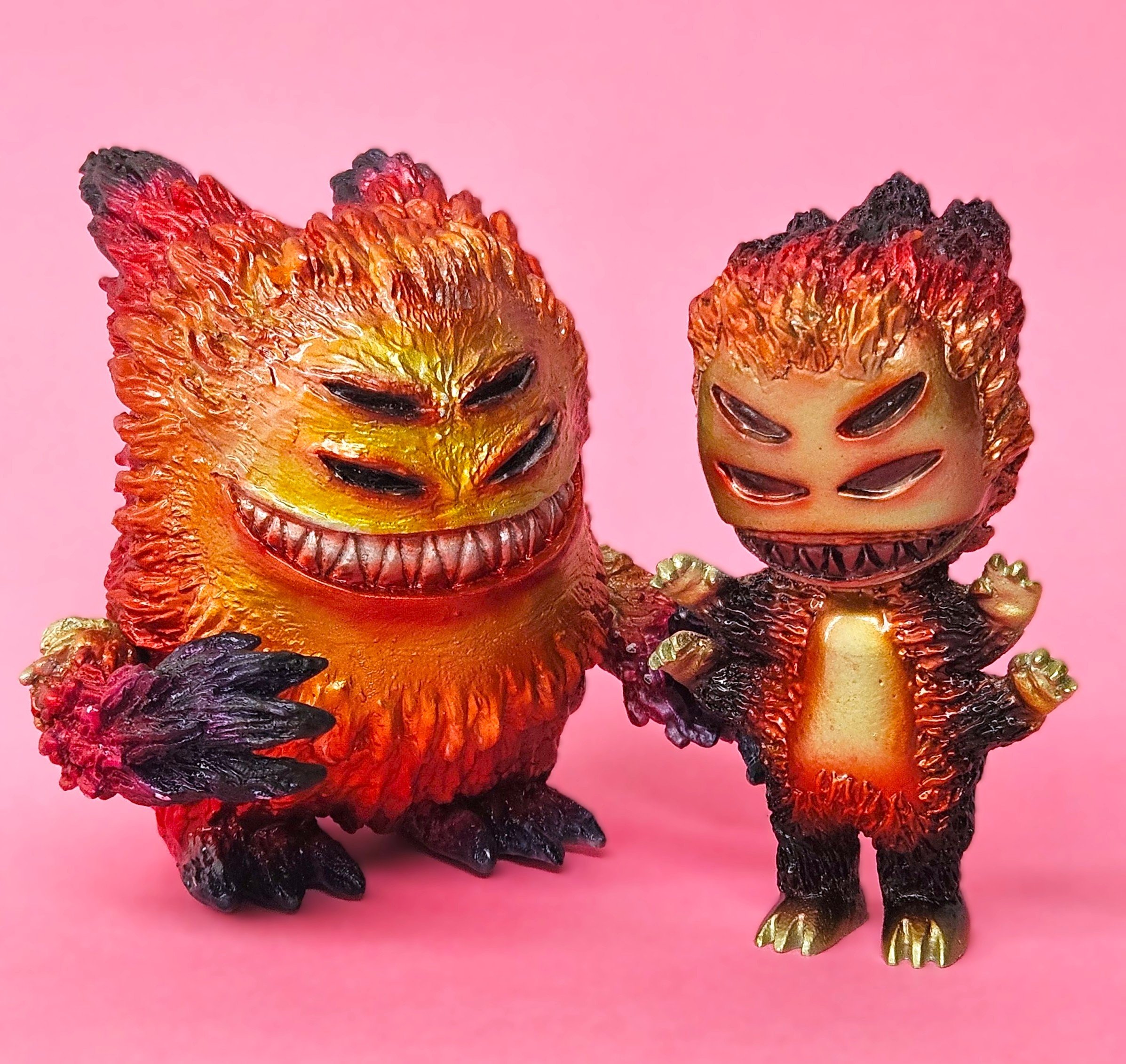 His work fuses kaiju sensibilities with an aesthetic that shifts between the galactic, the mutant, and the anthropomorphic, giving rise to creatures with such an intense presence they seem to breathe beneath the surface of the resin.