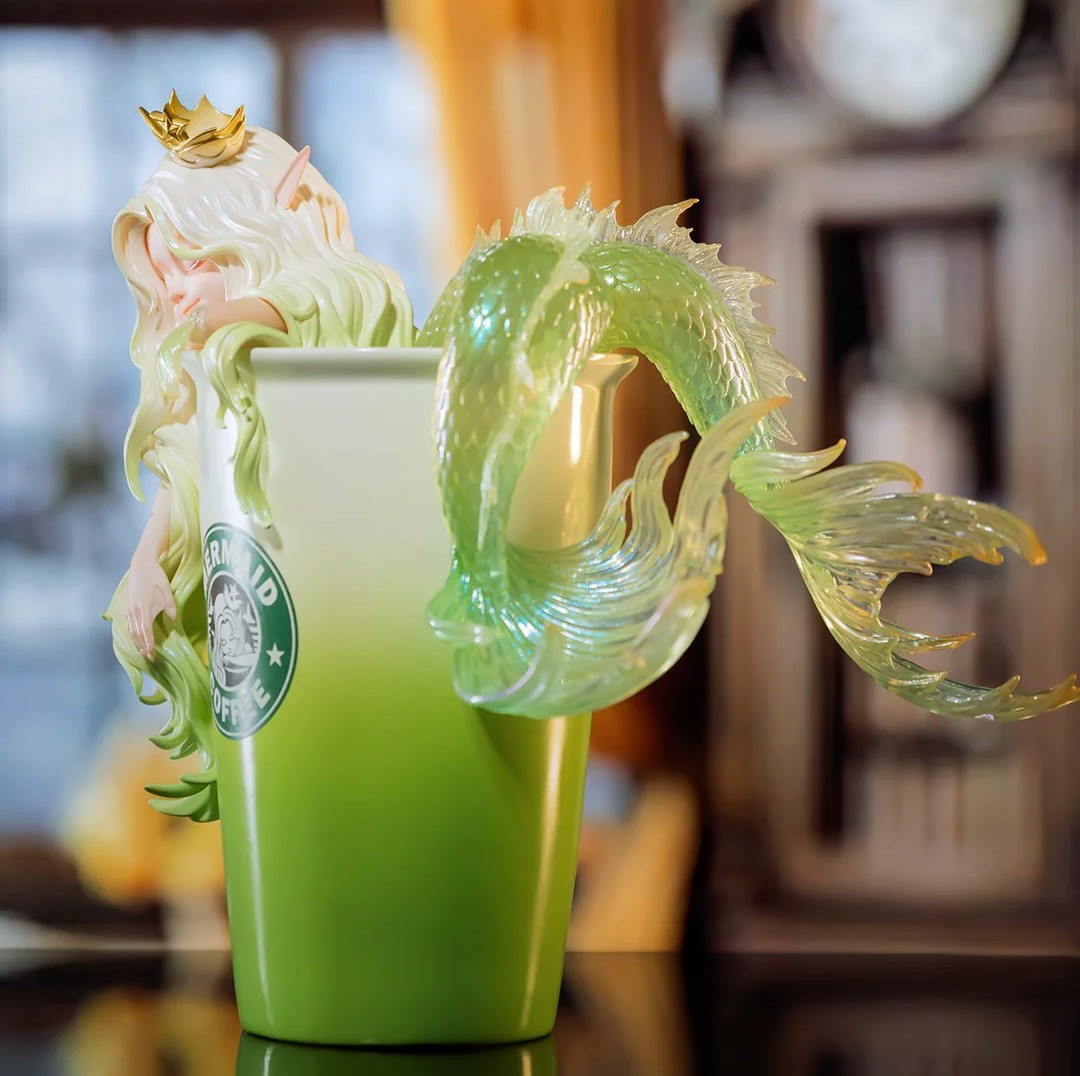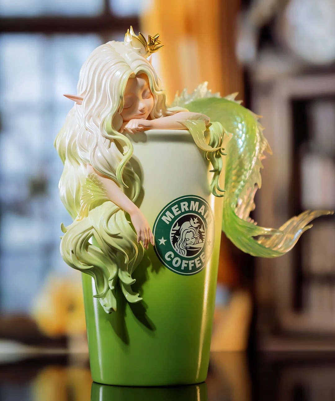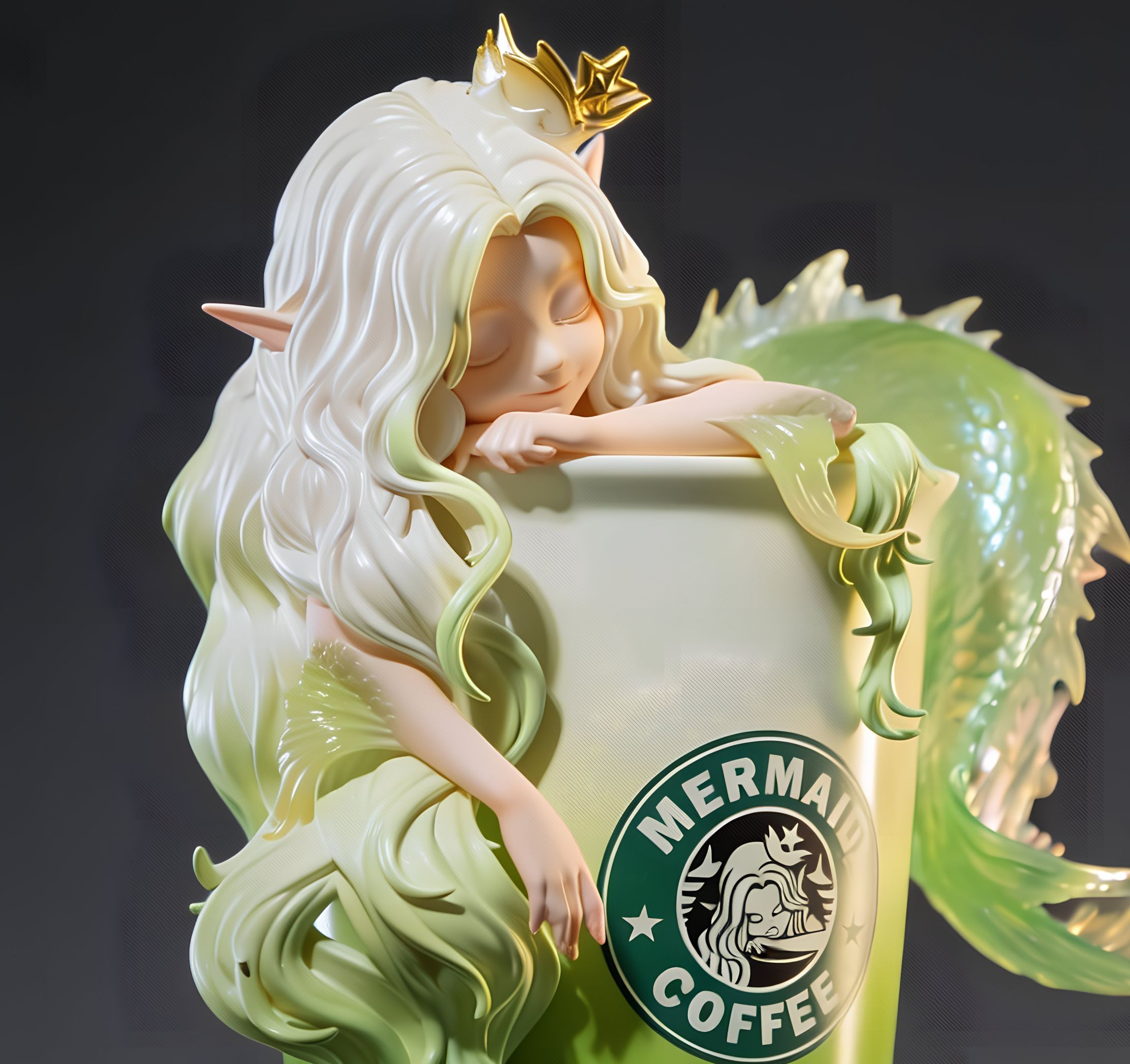 The sleeping princess collapses inside a coffee cup, trapped in the logo of a global brand: a fairy tale turned into daily routine or a reminder that even in the most ordinary moments a little magic can hide?