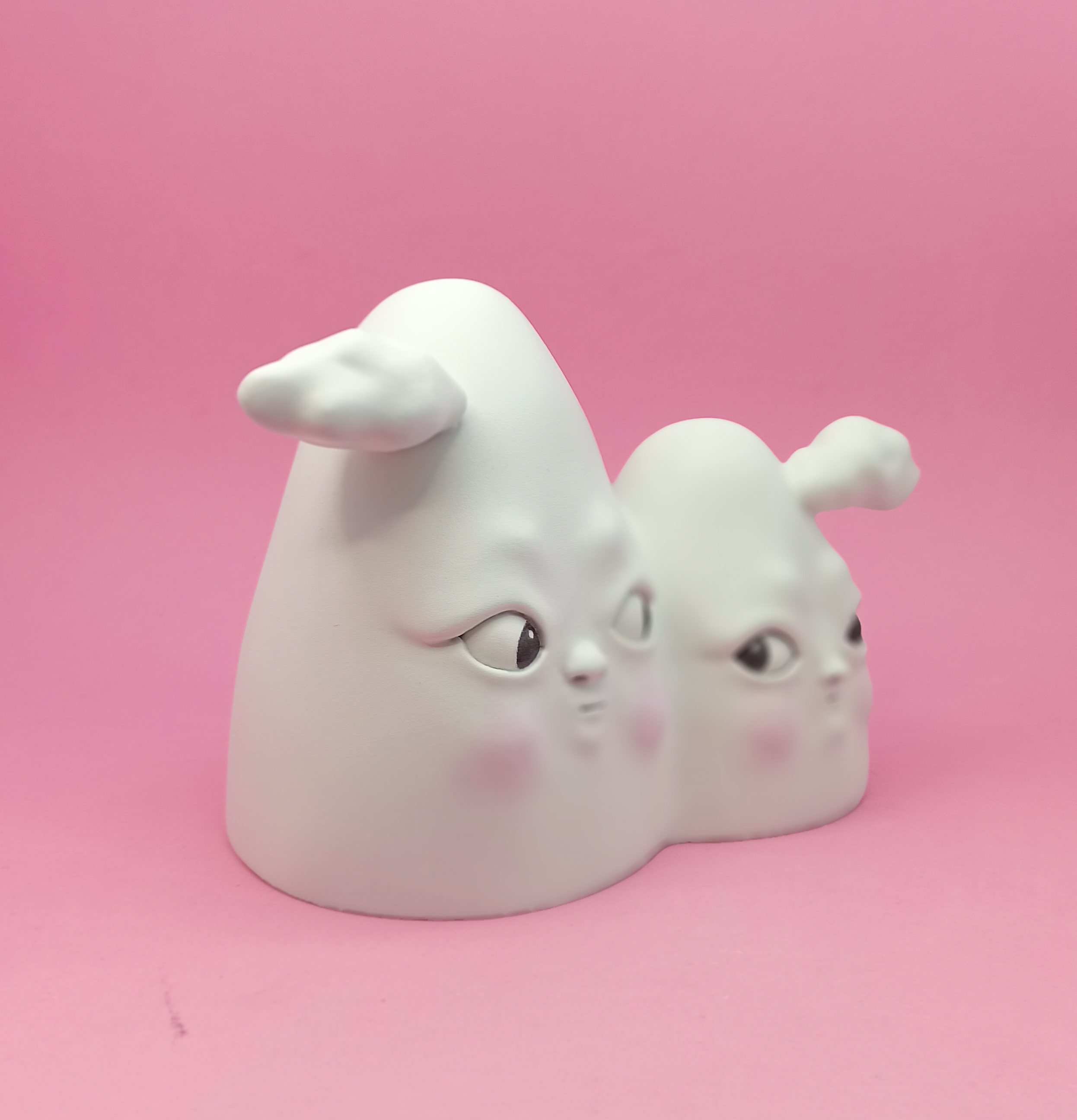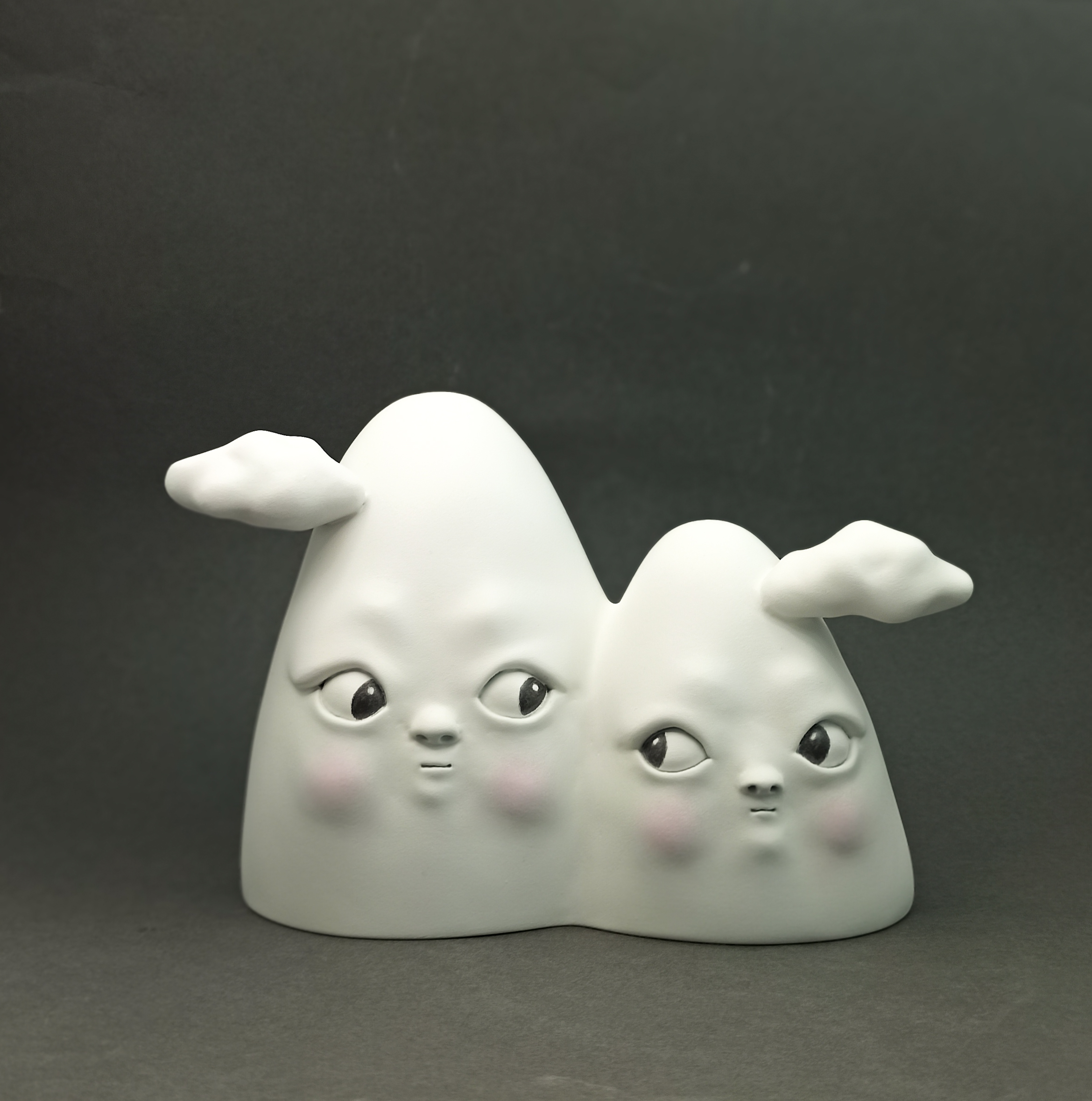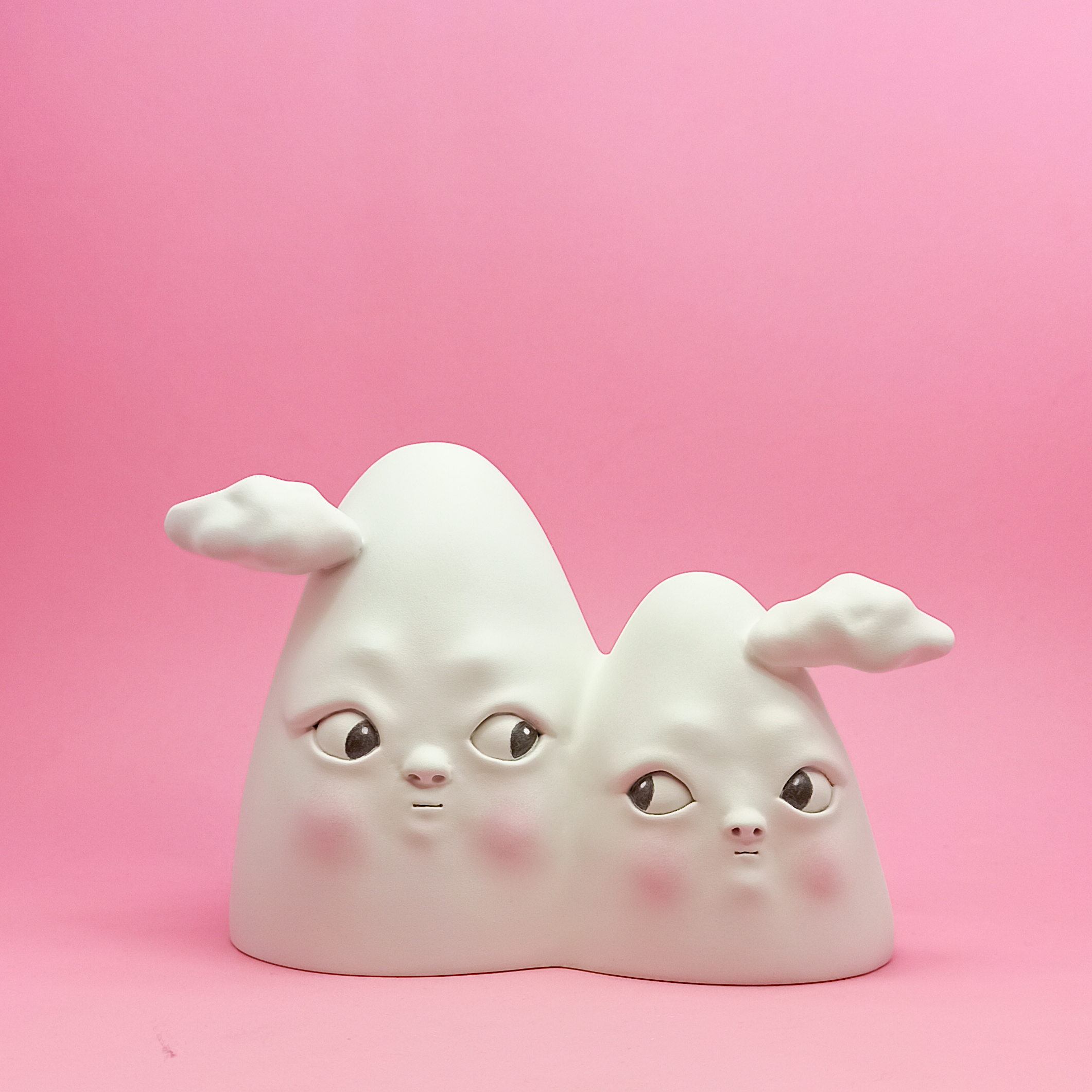 Clémentine Bal (Paris, 1979) is a Fine Arts graduate from Annecy and Dijon, whose work brings to life imaginary creatures that inhabit a serene and timeless universe. Using resins and sealants, she sculpts figures with soft lines and subtle expressions, applying a monochromatic palette that enhances their delicate presence.