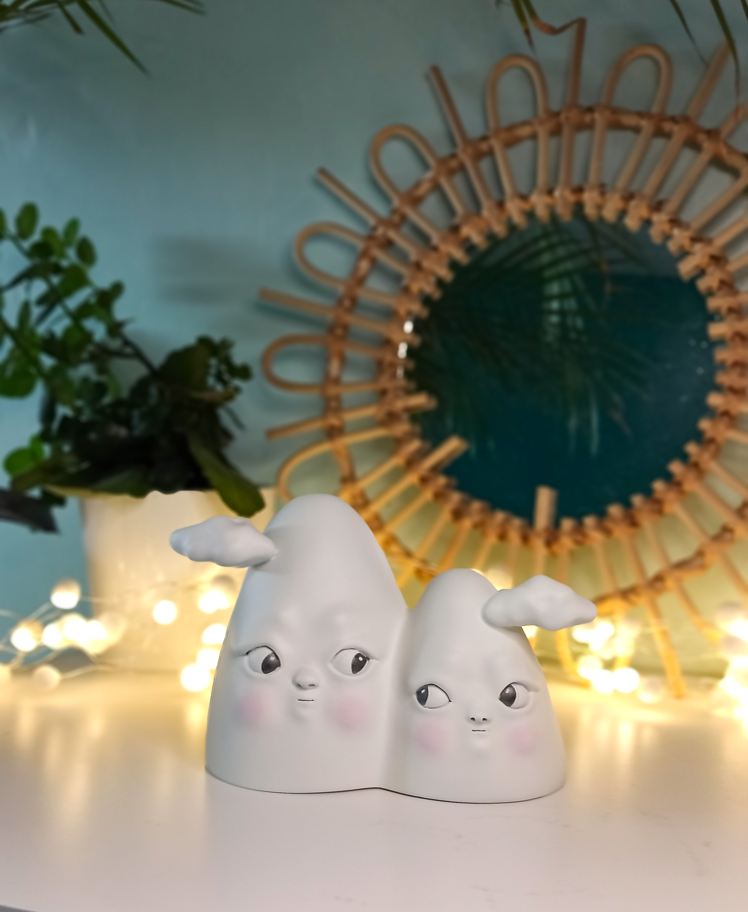Her creative process, almost meditative, transforms simplicity into enigma, giving rise to characters that oscillate between tenderness and mystery. Her style, reminiscent of gentle surrealism, merges the fantastical with the familiar. Each piece invites contemplation, evoking a sense of calm and intrigue, as if her creatures held a secret yet to be uncovered.