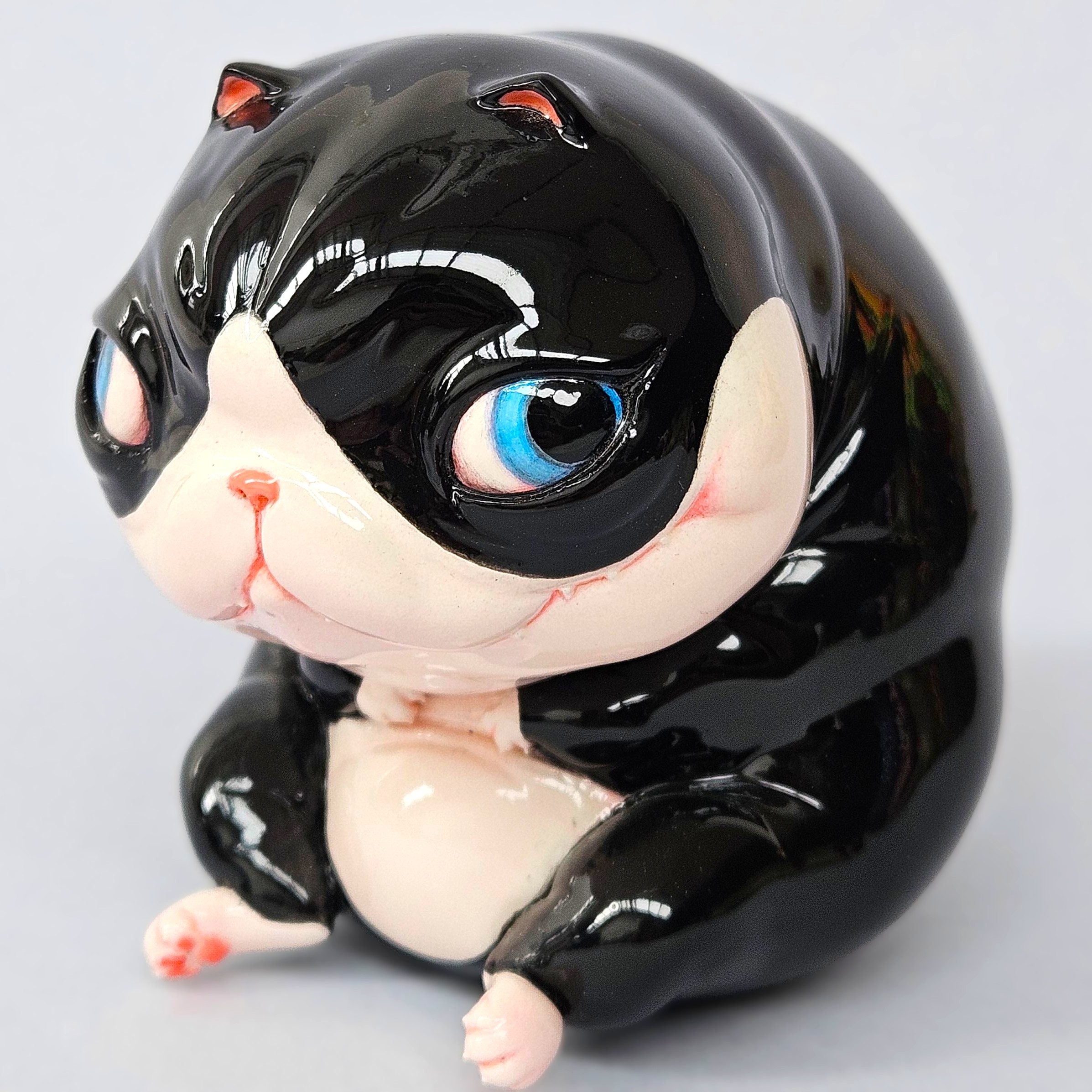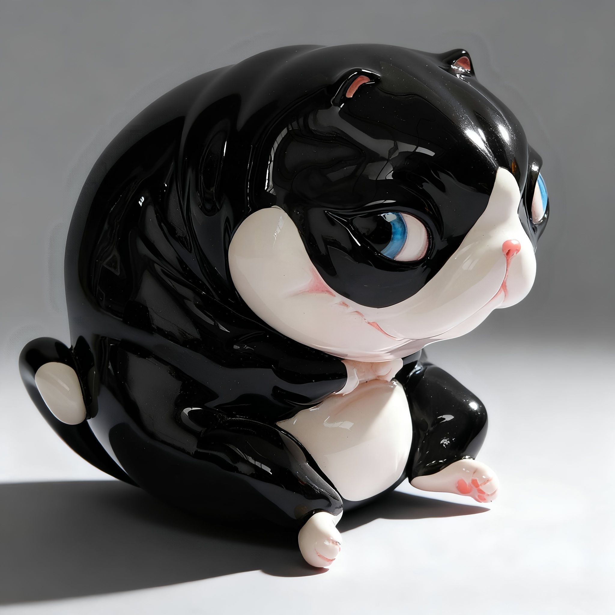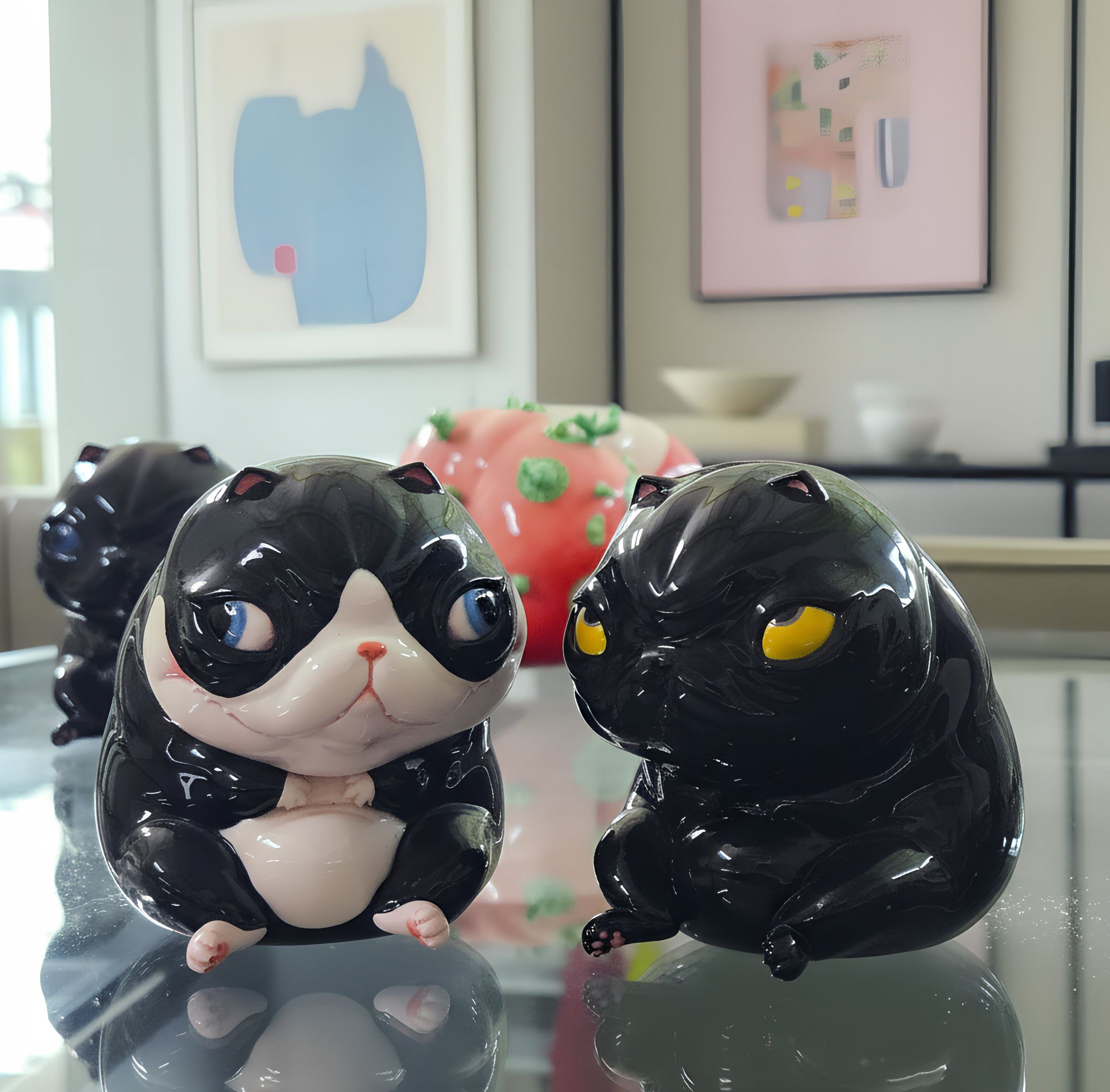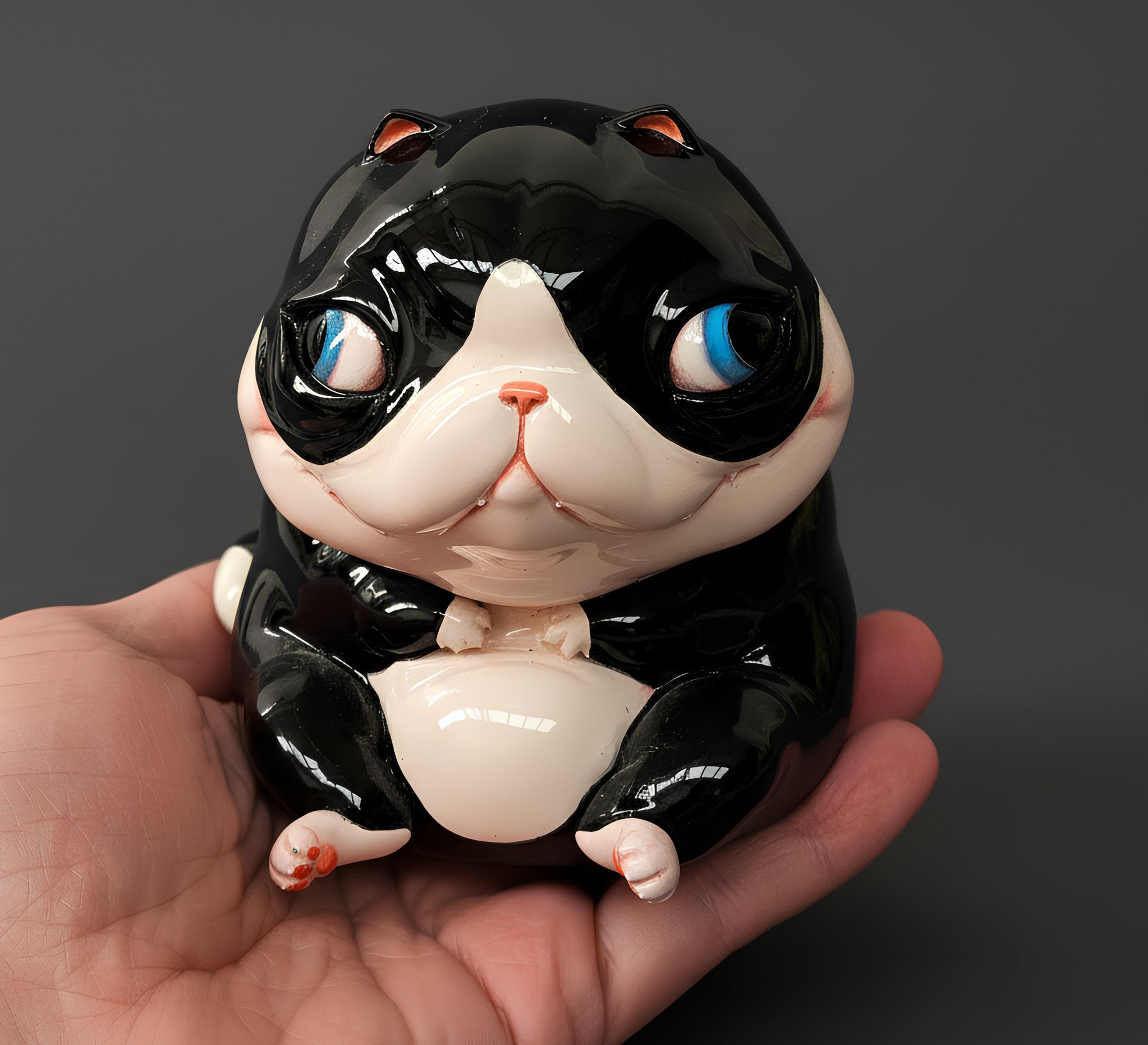 Impeccable shine, restrained attitude. This black & white cat by Katyushka Art —a hand-painted resin sculpture— plays at being classic on the outside and mischievous on the inside. Its polished finish, clean contrasts, and that blue gaze that never relaxes make it clear it’s here for more than just “looking pretty.” It seems sophisticated, yes… but only until you realize it’s sizing you up, waiting for the exact moment to break expectations.