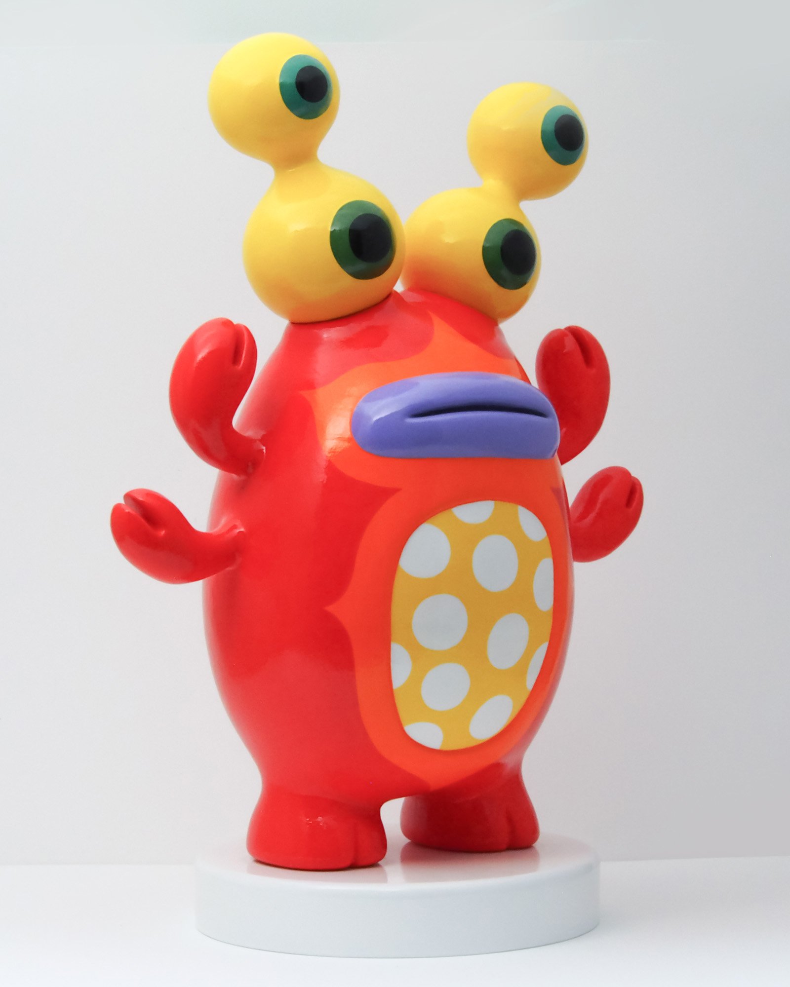 Sometimes, art follows instincts rather than rules. Gourd Eyed Crab is proof that the goofy and the mesmerizing can coexist in a single piece. With its oversized eyes, playful claws, and an undeniable presence, this creature is a bold statement of character and originality. You know that what you have before you is the Art Toy you’ve always dreamed of.