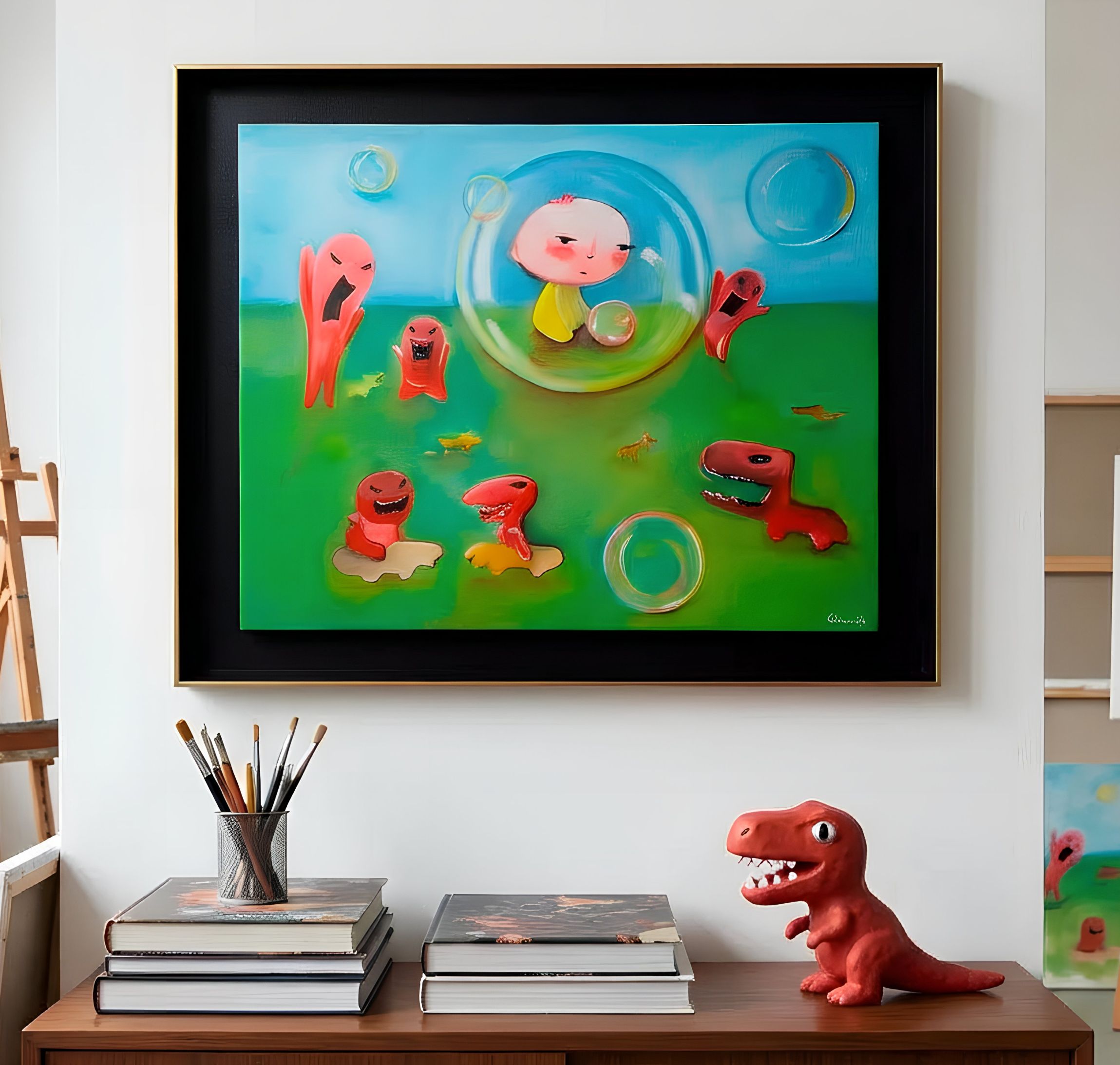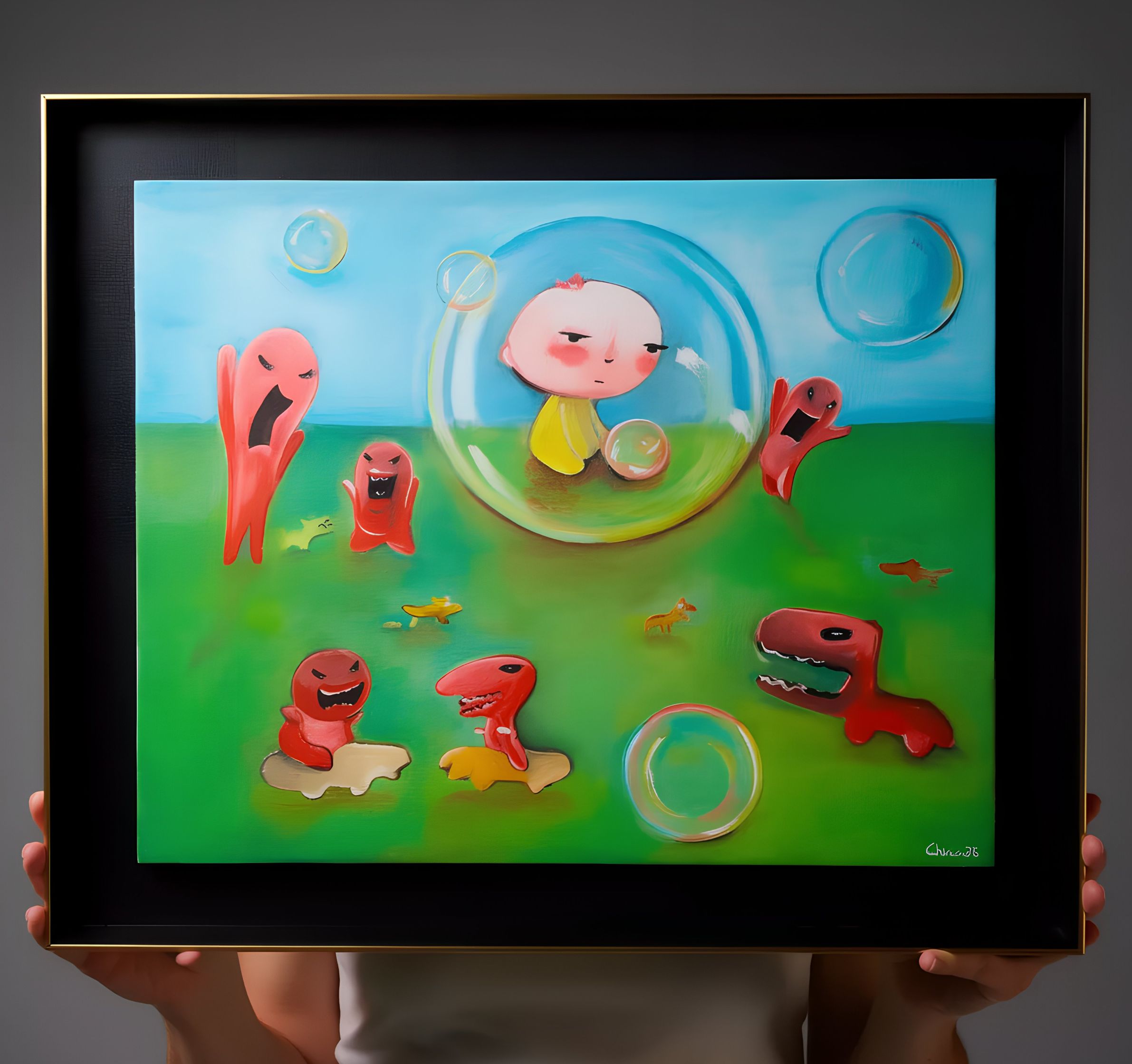 Today, her work gives a voice to those “bears,” telling new stories that reflect her concerns and the realities of her time. With a naïve and surrealist perspective, she addresses themes such as corruption, crises, war, and hope, delivering a message that is both critical and social.