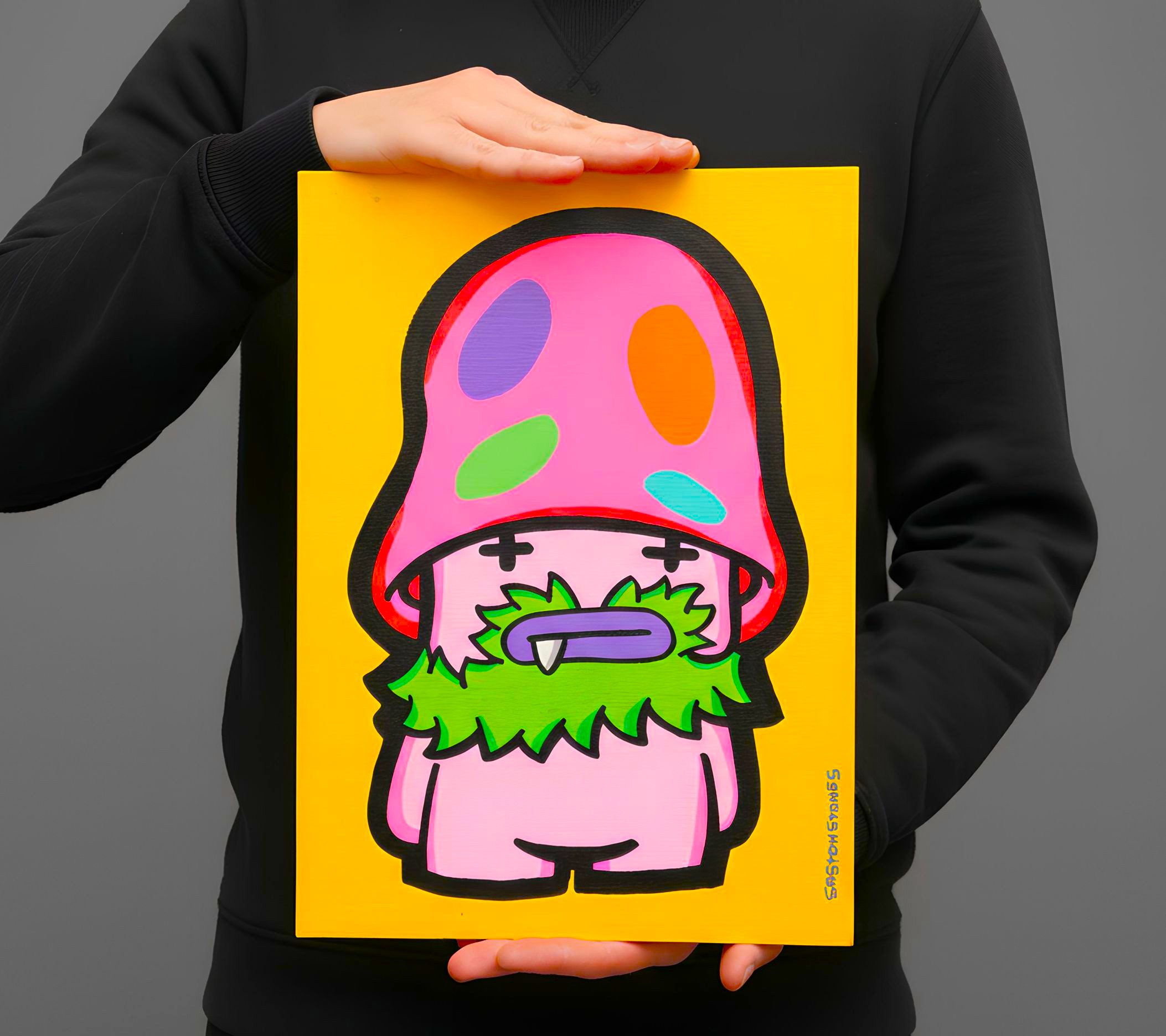 This character is part of the "Stones Kids" series — a collection of creatures born from Gastón Stones’ artist notebook: a portable space where he brings them to life, one by one, before transforming them into part of his doodle art universe, expanded across murals in cities around the world.
