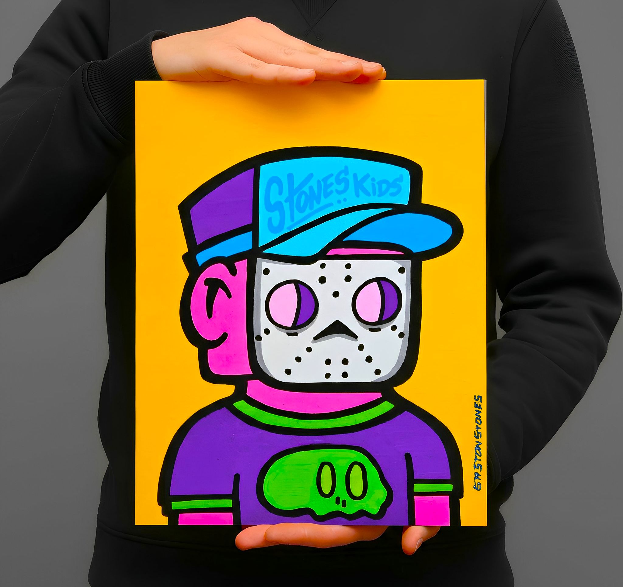This character is part of the "Stones Kids" series — a collection of creatures born from Gastón Stones’ artist notebook: a portable space where he brings them to life, one by one, before transforming them into part of his doodle art universe, expanded across murals in cities around the world.