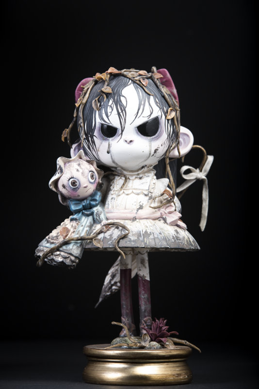 Ramón Plá combines illustration and sculpture to create unique characters that blend fiction and realism, filled with intrigue and spirituality. Together with Silvia Pérez, an expert in floral design, they worked at Lladró and collaborated with renowned designers like Jaime Hayón, Gary Baseman, and Paul Smith, furthering their artistic growth.