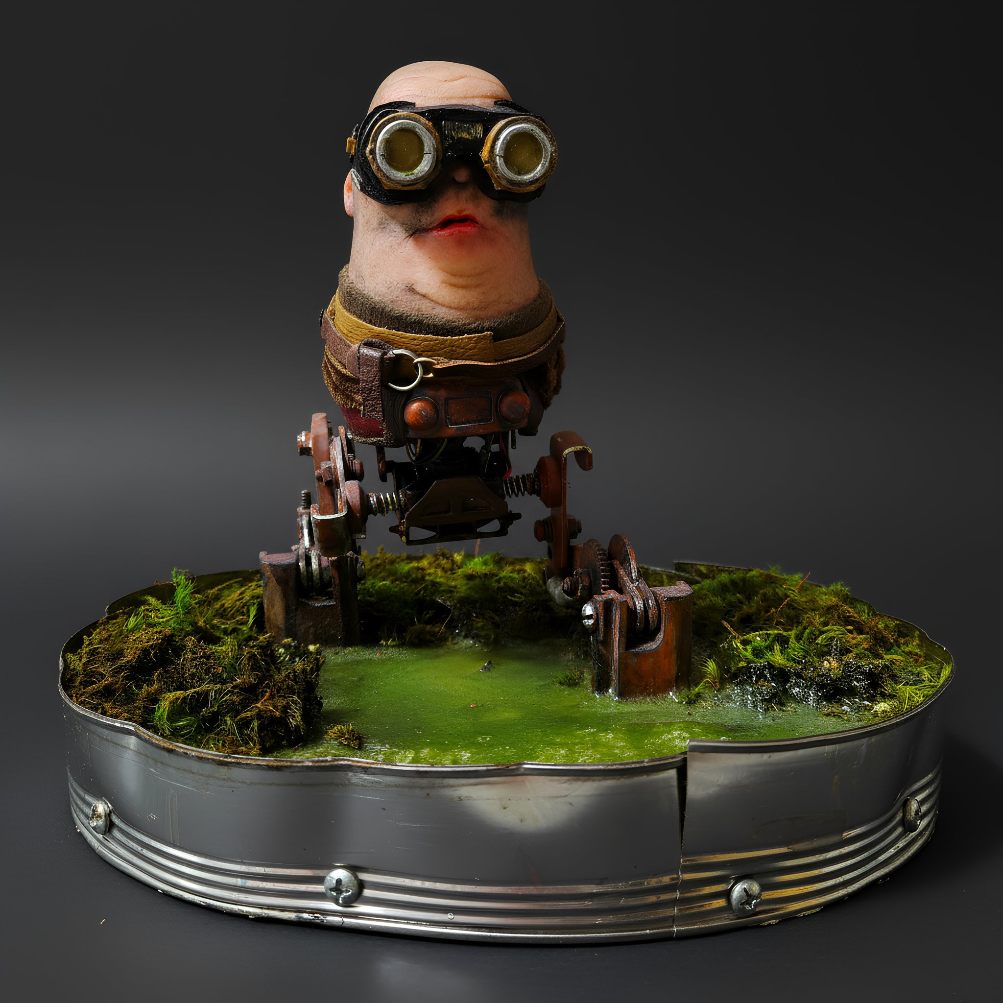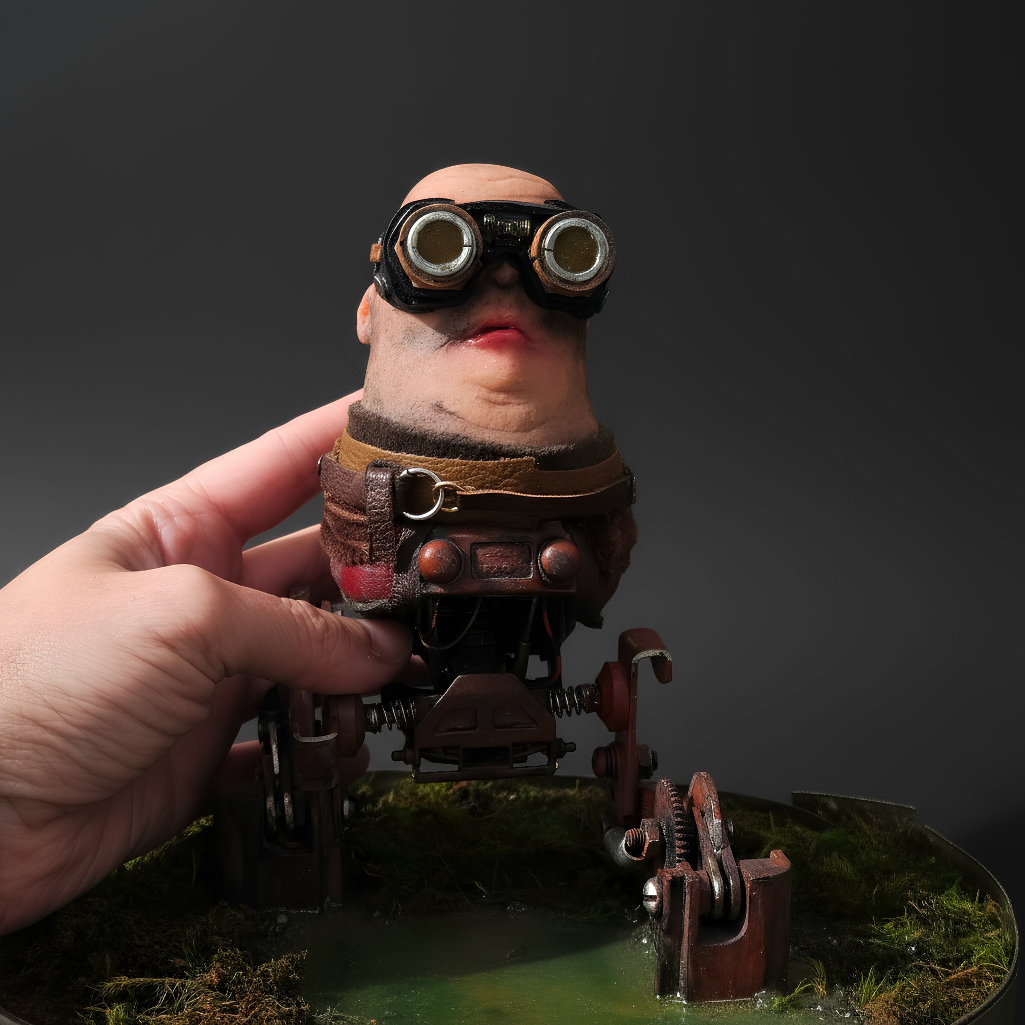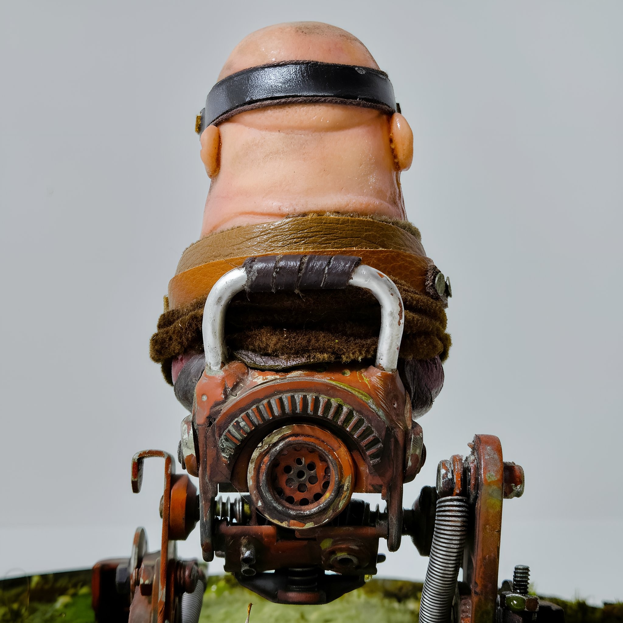 'Mr. Novothie X-plorer' is a dystopian Art Toy, crafted with meticulous details that bring to life a unique character: an explorer who lost his body in the A.I. War. His ingenious leg mechanism symbolizes resilience and the ability to adapt after devastation. Is your collection ready to embrace the future?.