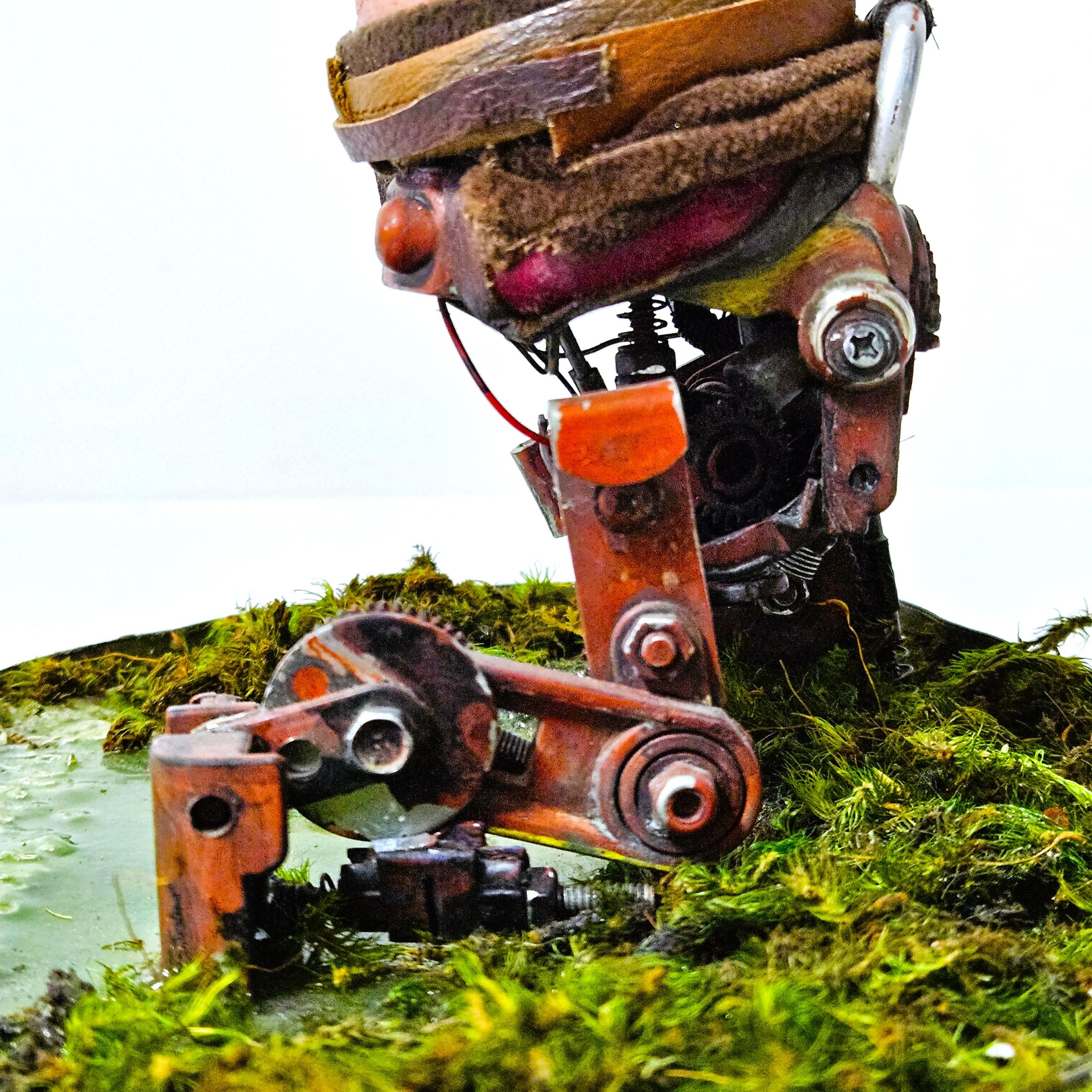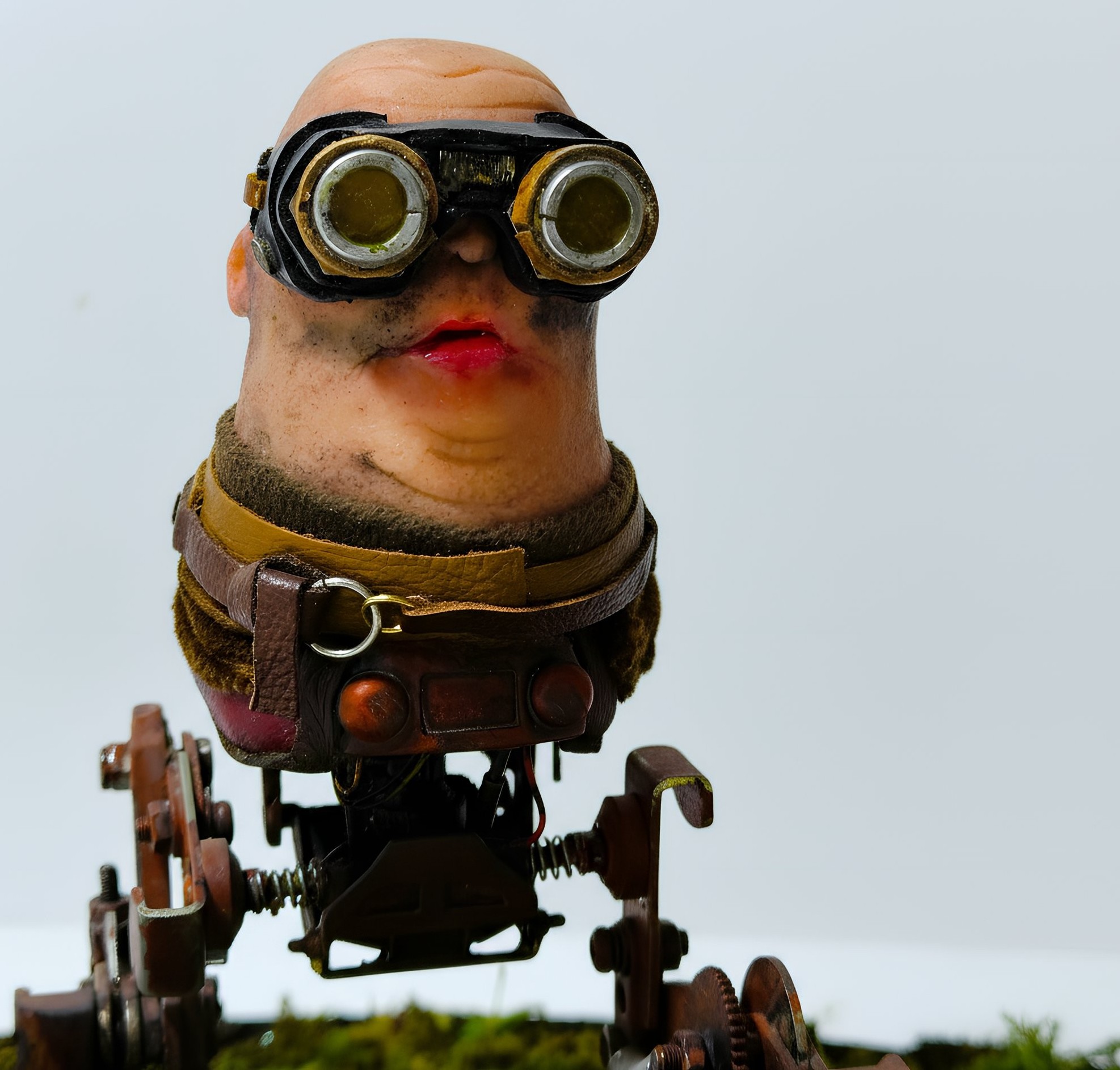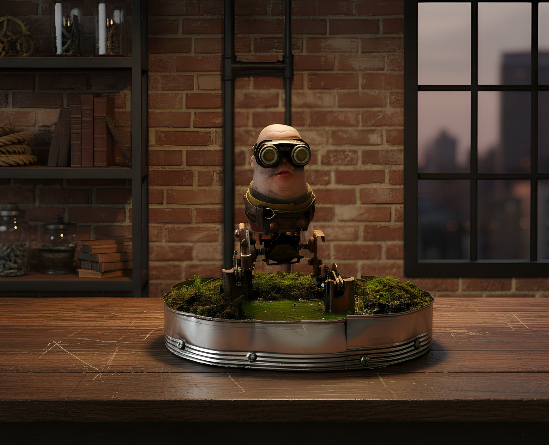 'Mr. Novothie X-plorer' is a dystopian Art Toy, crafted with meticulous details that bring to life a unique character: an explorer who lost his body in the A.I. War. His ingenious leg mechanism symbolizes resilience and the ability to adapt after devastation. Is your collection ready to embrace the future?.