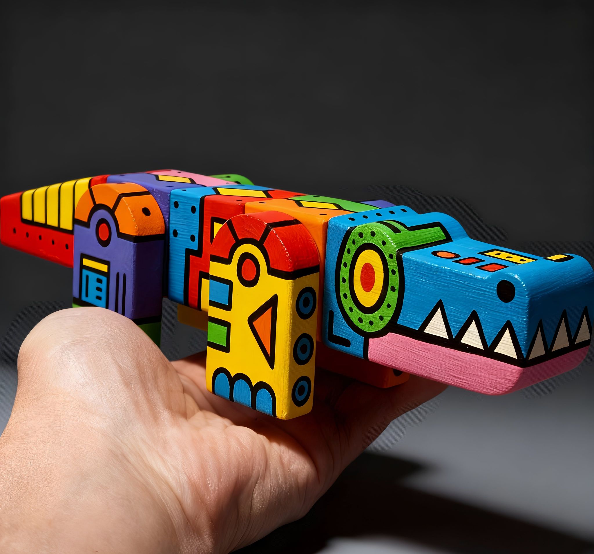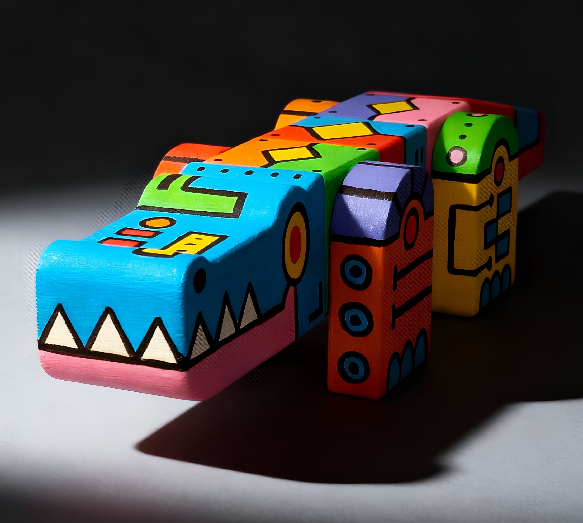 If you're obsessed with urban art and mecha, "Wani Kamakri Mecha" is made for you. A bold fusion of graphics, color, and mechanical aesthetics, where the chaos of street art meets the precision of engineering. Designed by KAMAKIRI in his unmistakable style, this Art Toy is pure three-dimensional dynamism.
