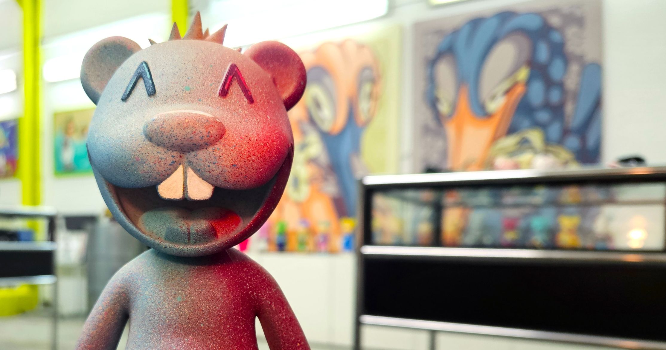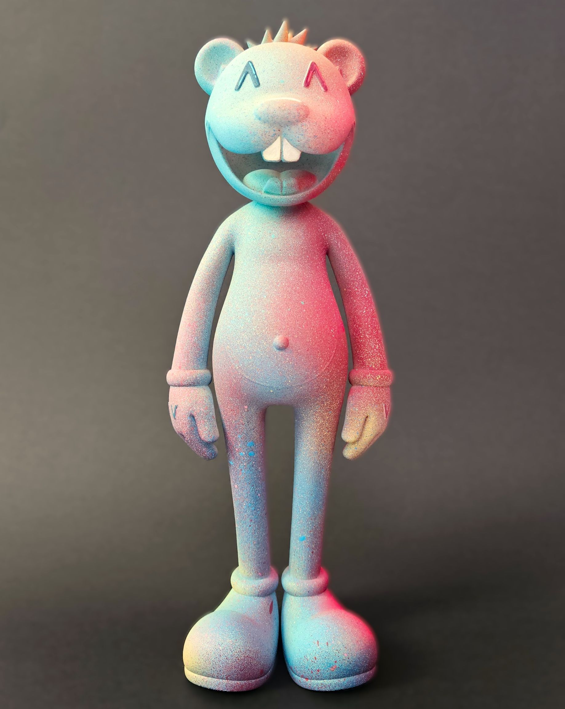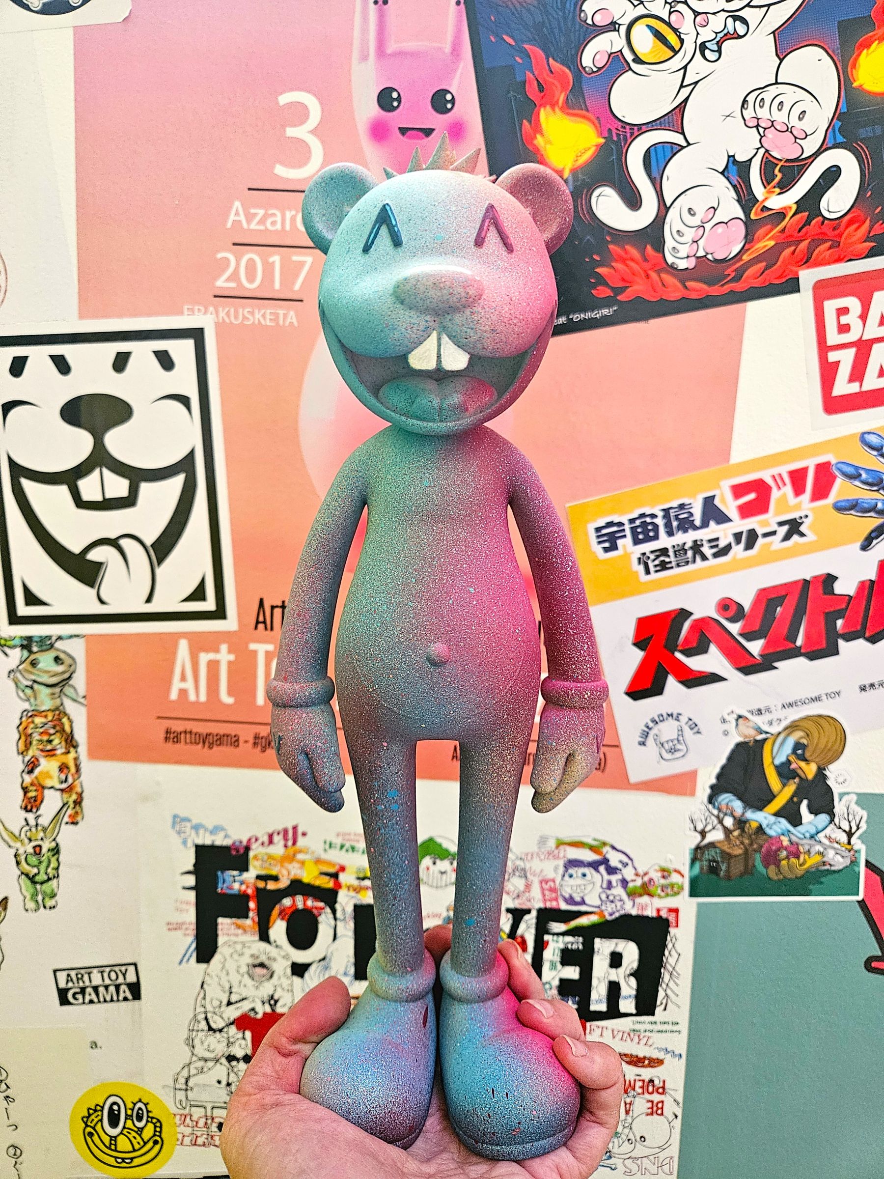 With a carefree smile and the look of something freshly peeled off a mural, this art toy is free. Topo doesn’t explain itself — it shows up. With its cosmic glow and street-neon finish, it brings color, attitude, and a clear message: keep shining from the essential.