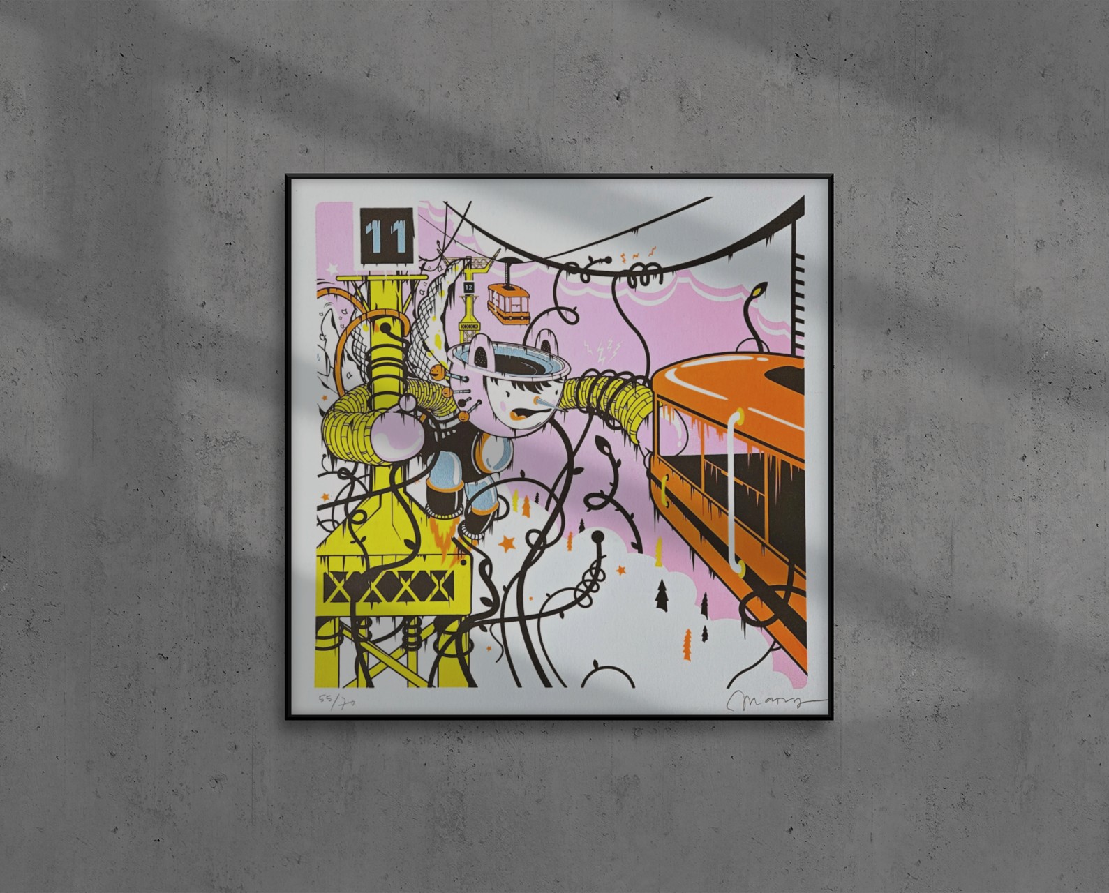 Hello, Collector, I cling to what others leave behind. I climb cables, buildings, and chaotic structures without looking down. There's no vertigo when the goal is always higher. This piece is a metaphor for your collection. Every artwork you choose is a level conquered—a reflection of your drive to go beyond.