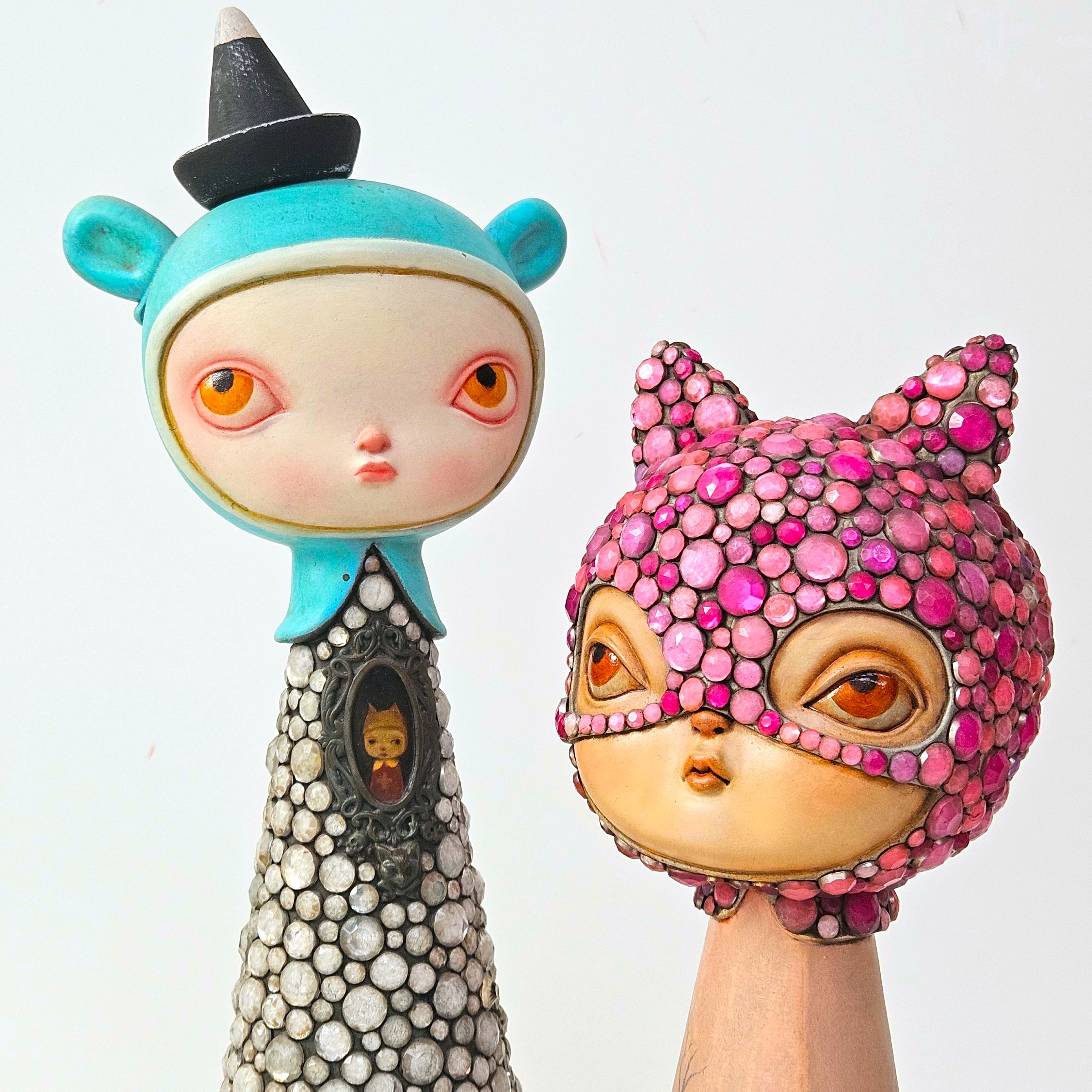 Kathie Olivas is an internationally renowned multimedia artist from New Mexico. Through her work, she explores society's insatiable desire to assign "cuteness" and our discomfort with the unknown. Kathie's paintings and custom toys offer a satirical perspective on how fear shapes our perception of reality.