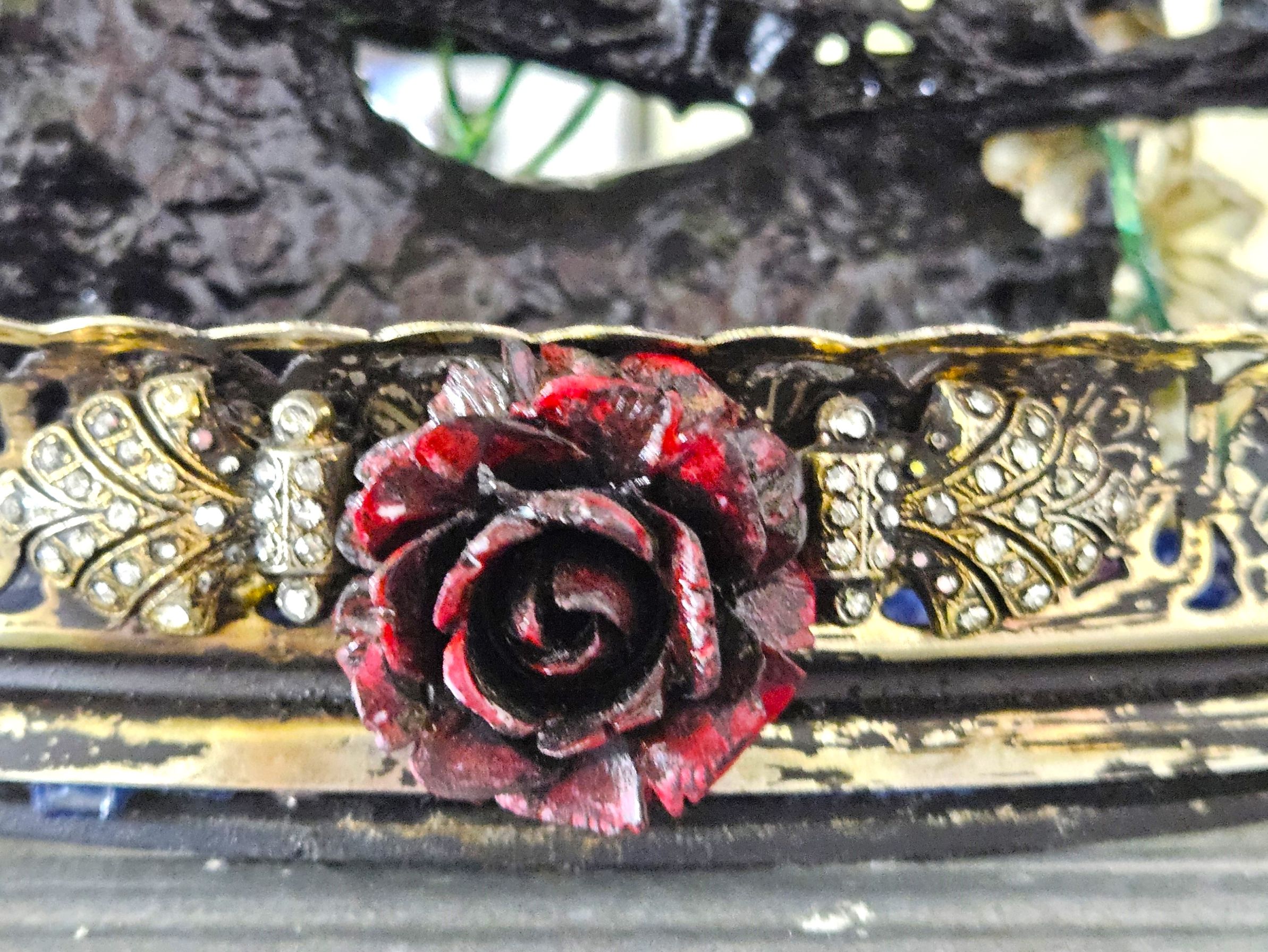 • Technique: Resin, polymer, acrylic, vintage jewelry, crystals, rhinestones.