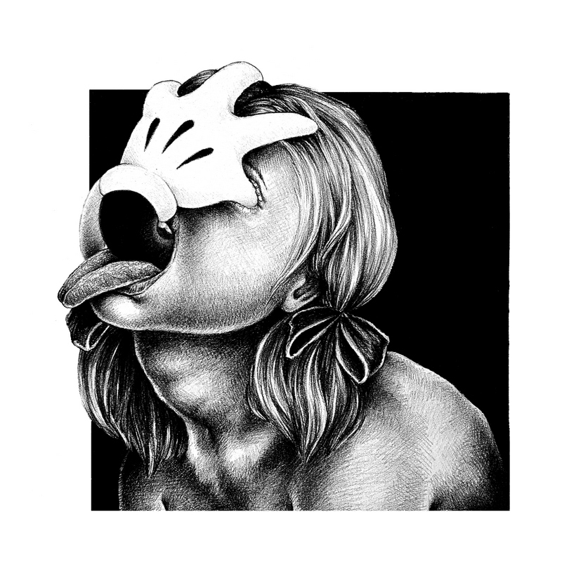 She explores the contradictions between purity and vulgarity, grace and depravity, merging horror and beauty into detailed and defiant artworks.