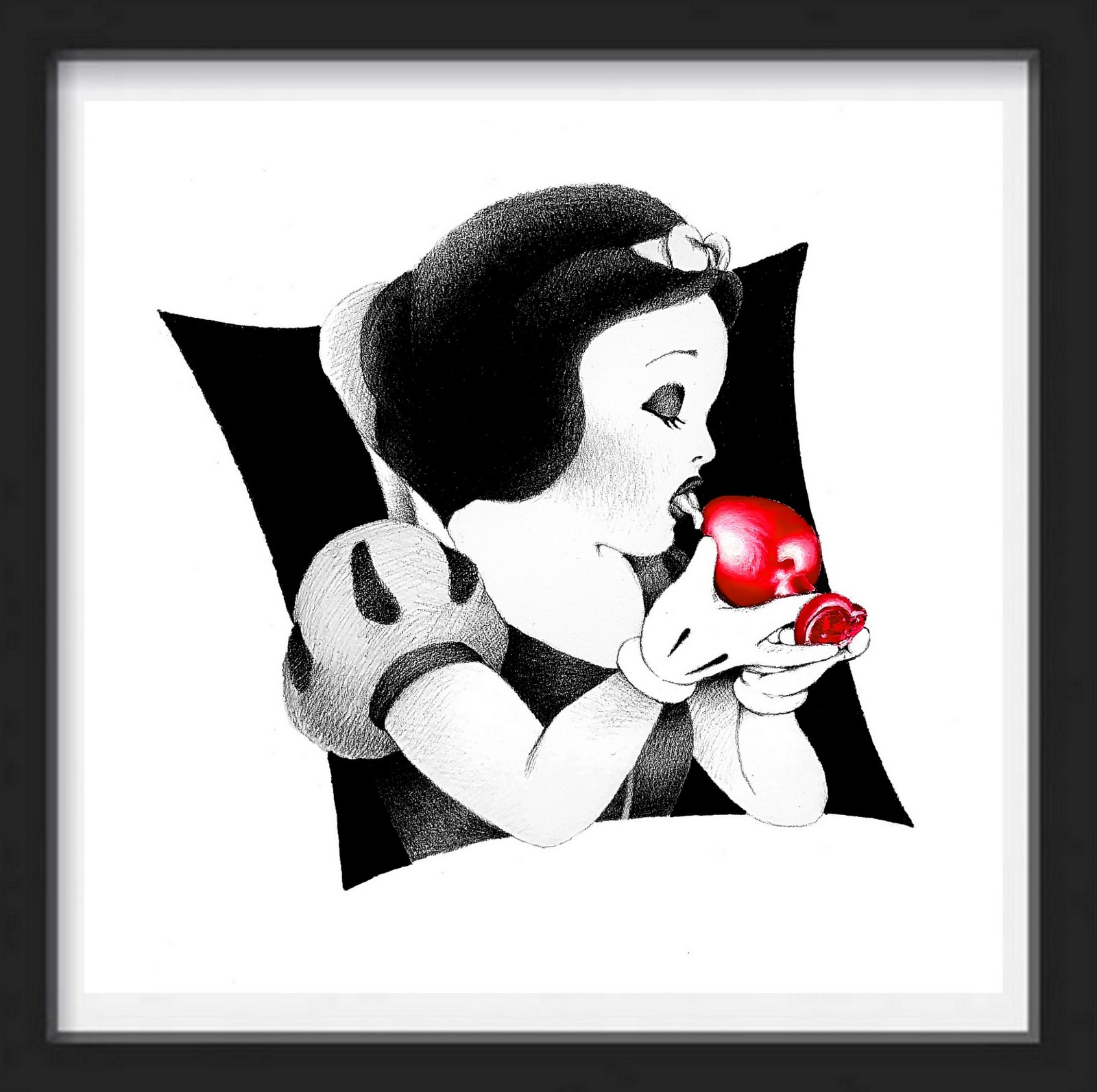 This piece invites you to question the fairy tales you thought you knew and their purpose. Is Snow White the symbol of purity from our childhood, or a provocative character caught between innocence and darkness? Those unmistakable hands break with the familiar childhood aesthetic, revealing the intentions behind certain characters: shaping stereotypes and creating unattainable ideals.