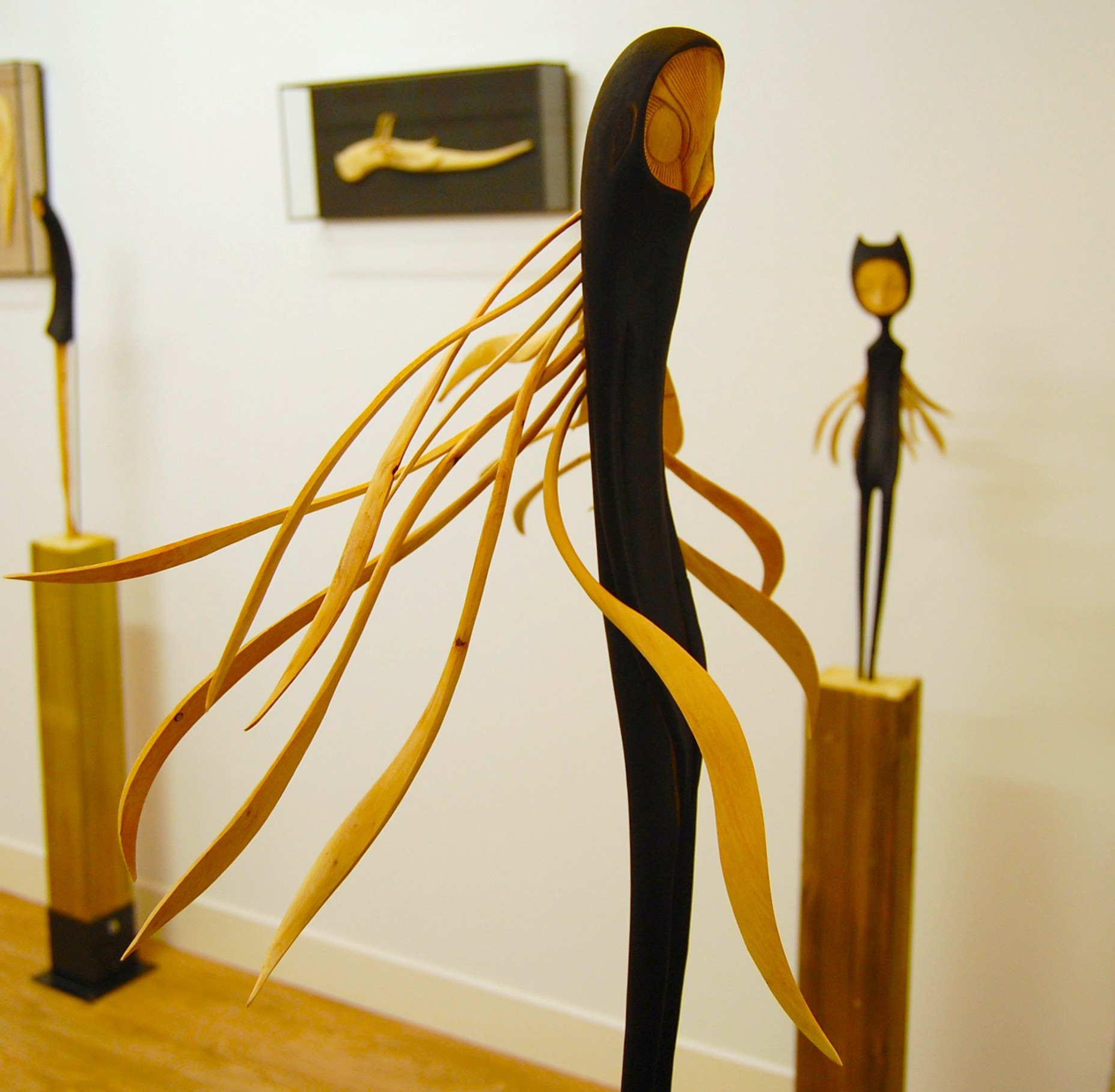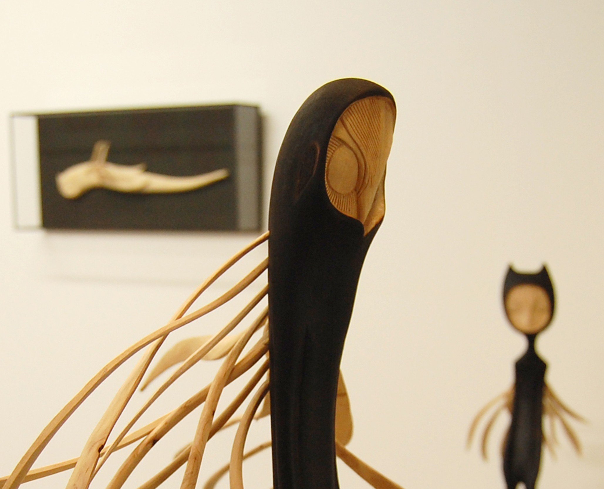 He carves sustainably sourced hawthorn wood, burns it to reveal hidden textures, and hollows it out to defy time. His creatures emerge from forgotten myths, caught between the earthly and the ethereal.