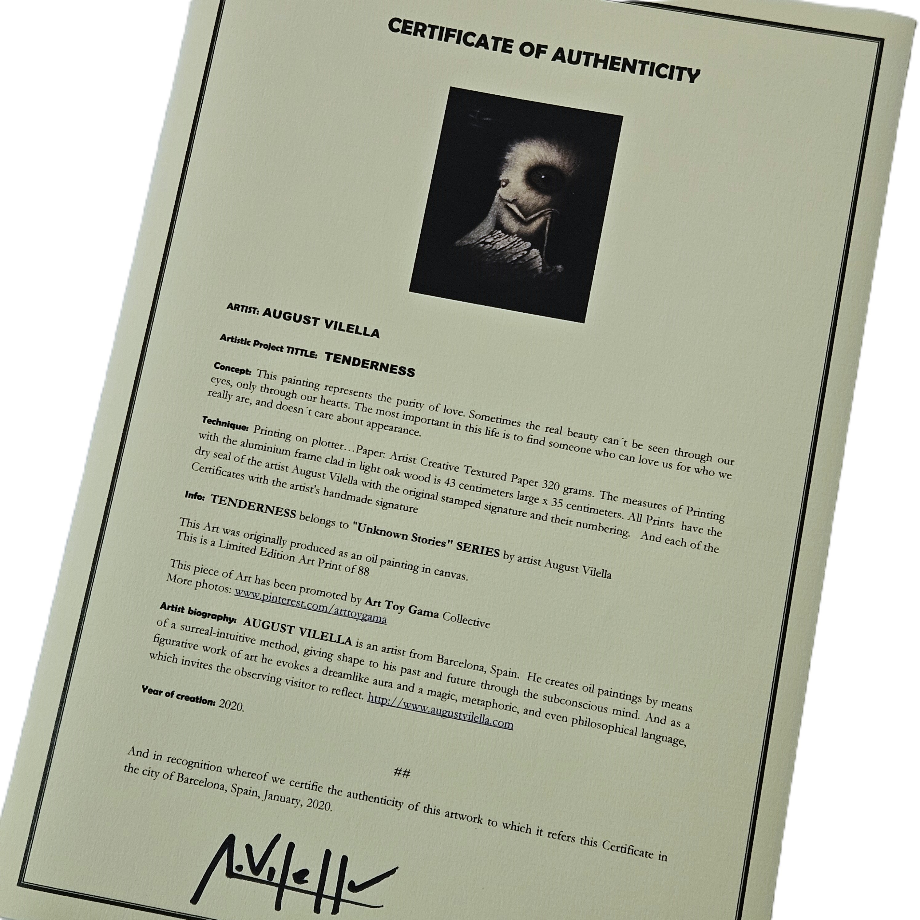 NOTE: "Tenderness" is part of August Vilella's captivating "Unknown Stories" series, which explores themes of courage, vulnerability, and transformation. You can also discover other pieces from the series here, such as "Hope", "Alice" and "Freedom".