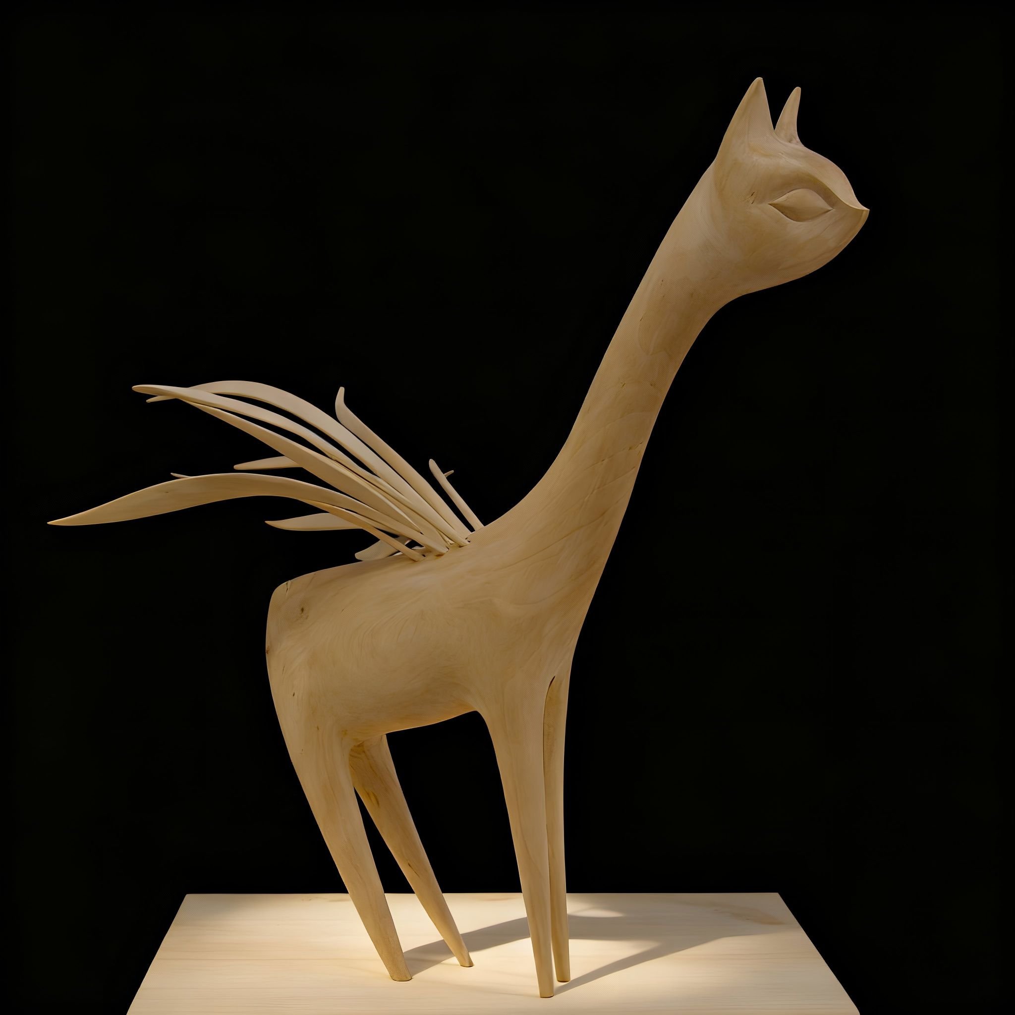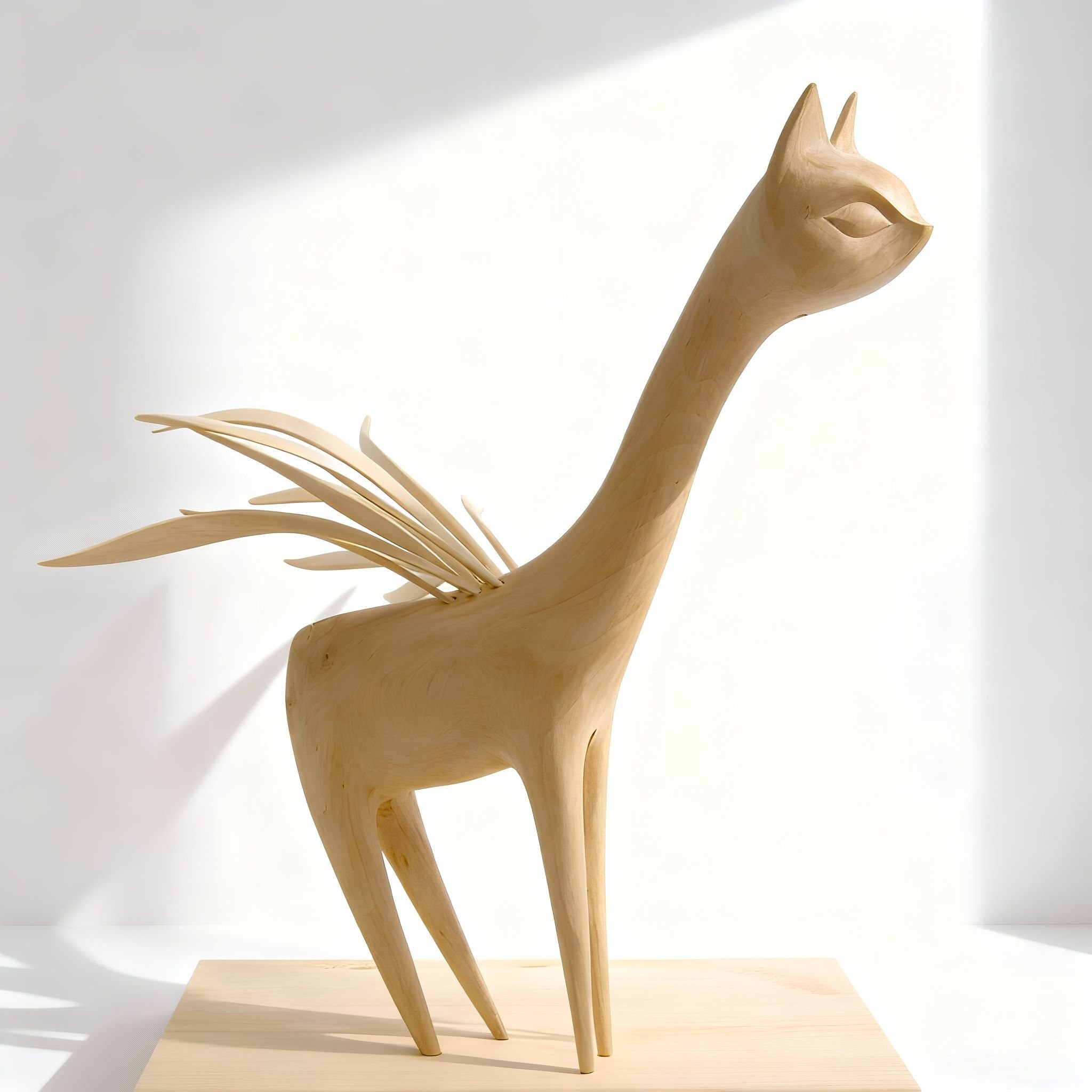 Wooden sculpture by Tach Pollard "Long Neck Rising"