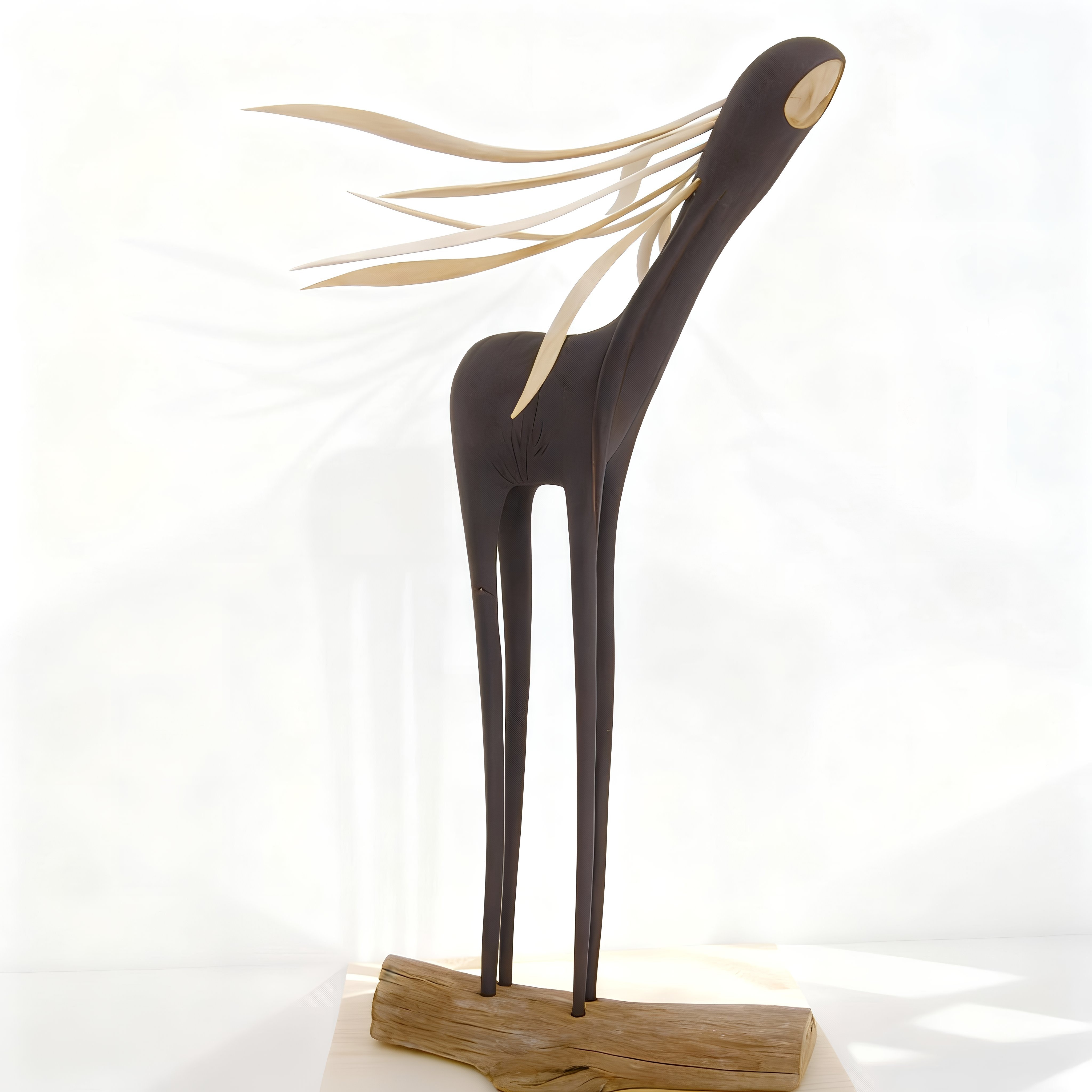 • It rises on a wooden base, as if emerging from the earth itself, ready to inhabit your collection.