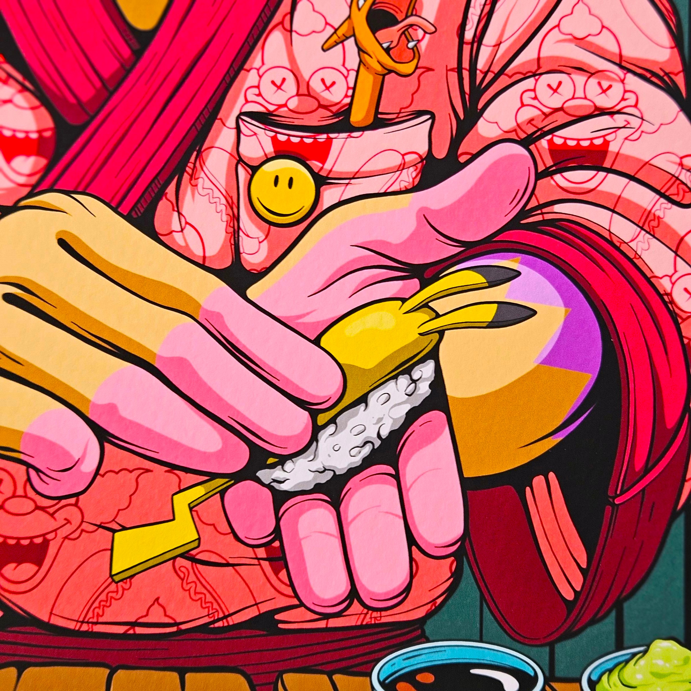 Yes, all 33 prints of The Sushi Master are now part of private collections. Each one delivered a precise slice of reinvented pop culture. And of course… they sold out.
