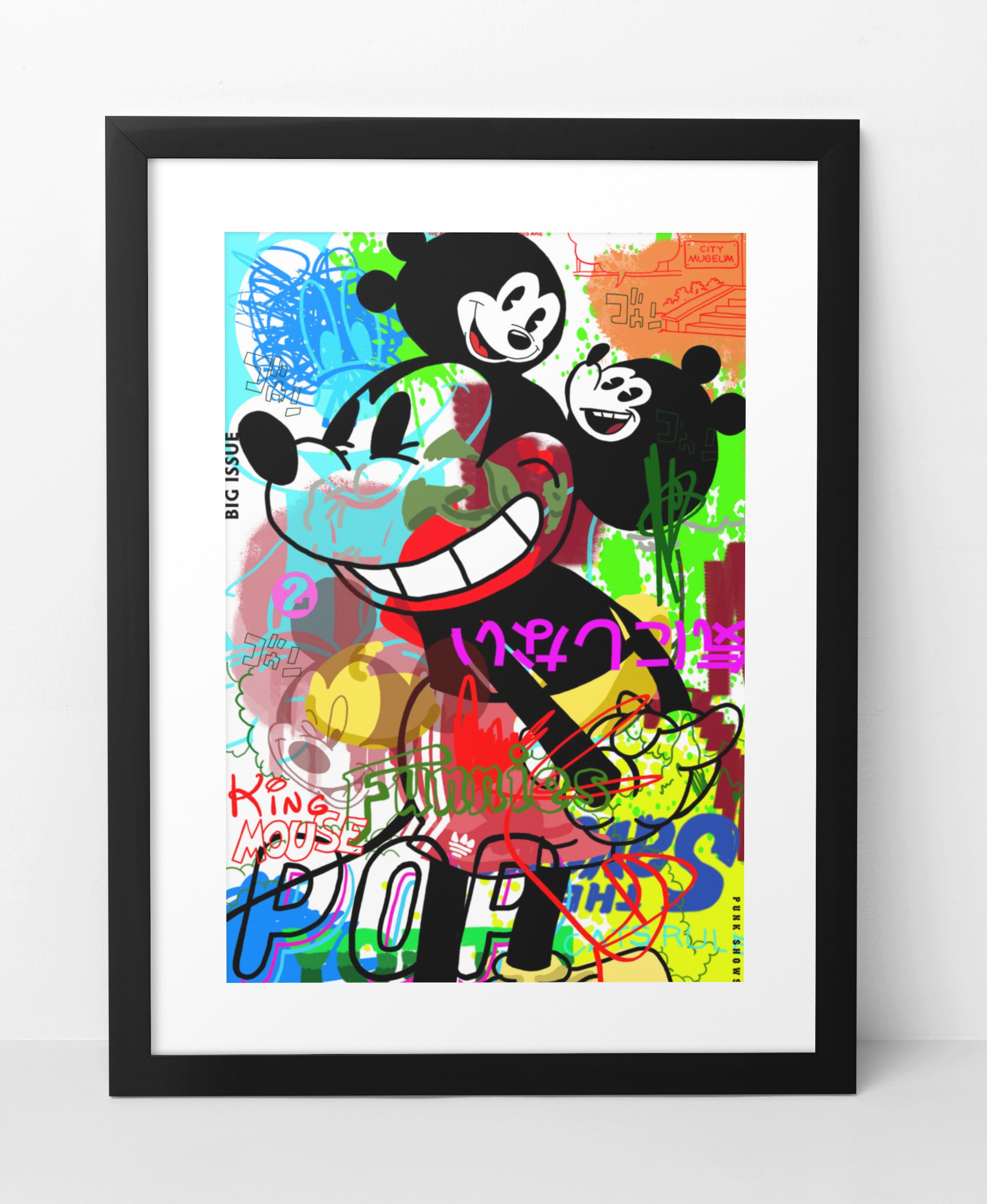 "BIG ISSUE". "Funnies". "King Mouse". "POP". And hidden between layers: "We are where the wild things are."