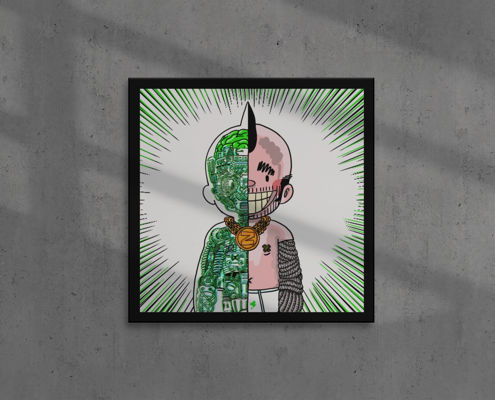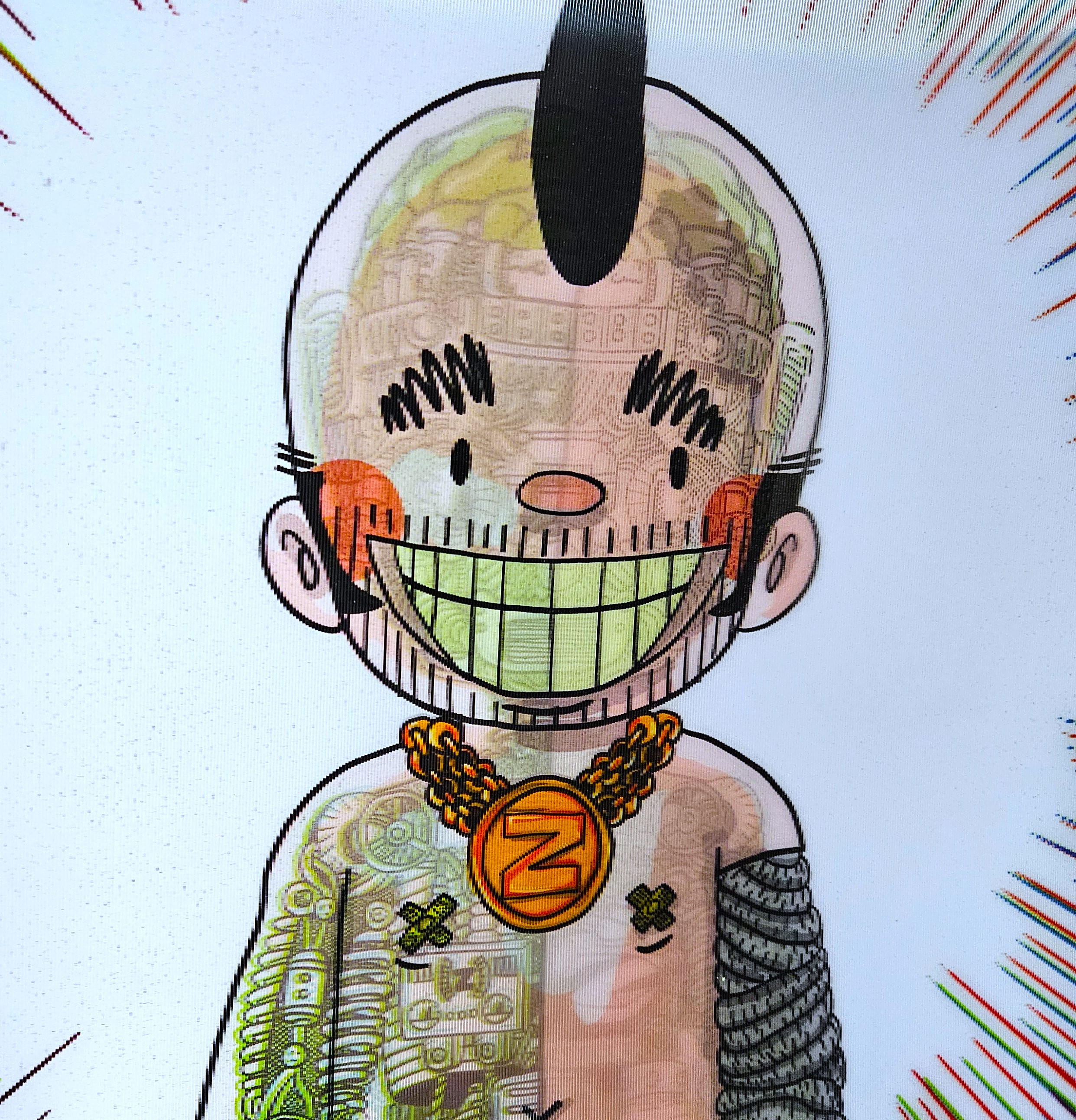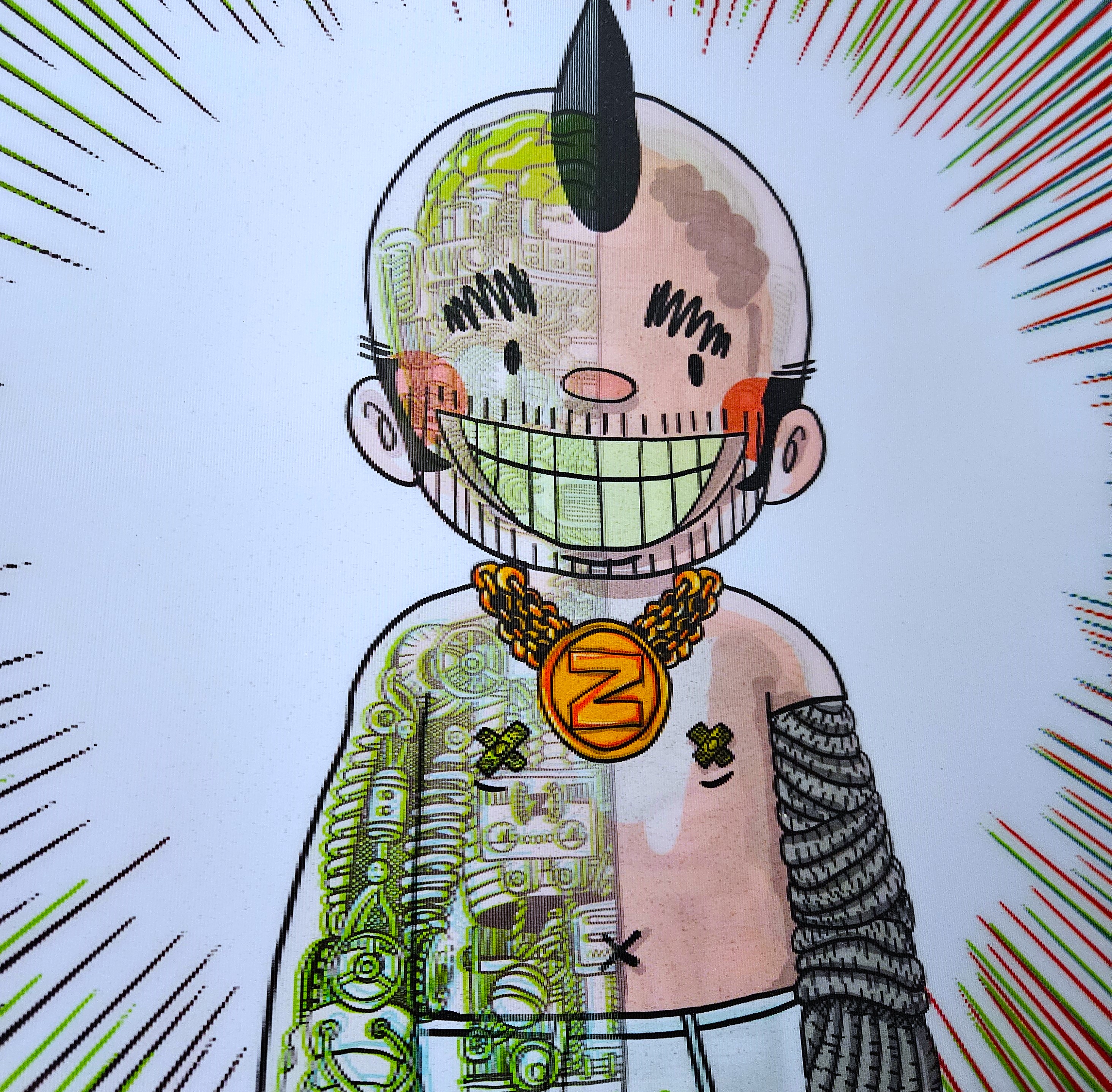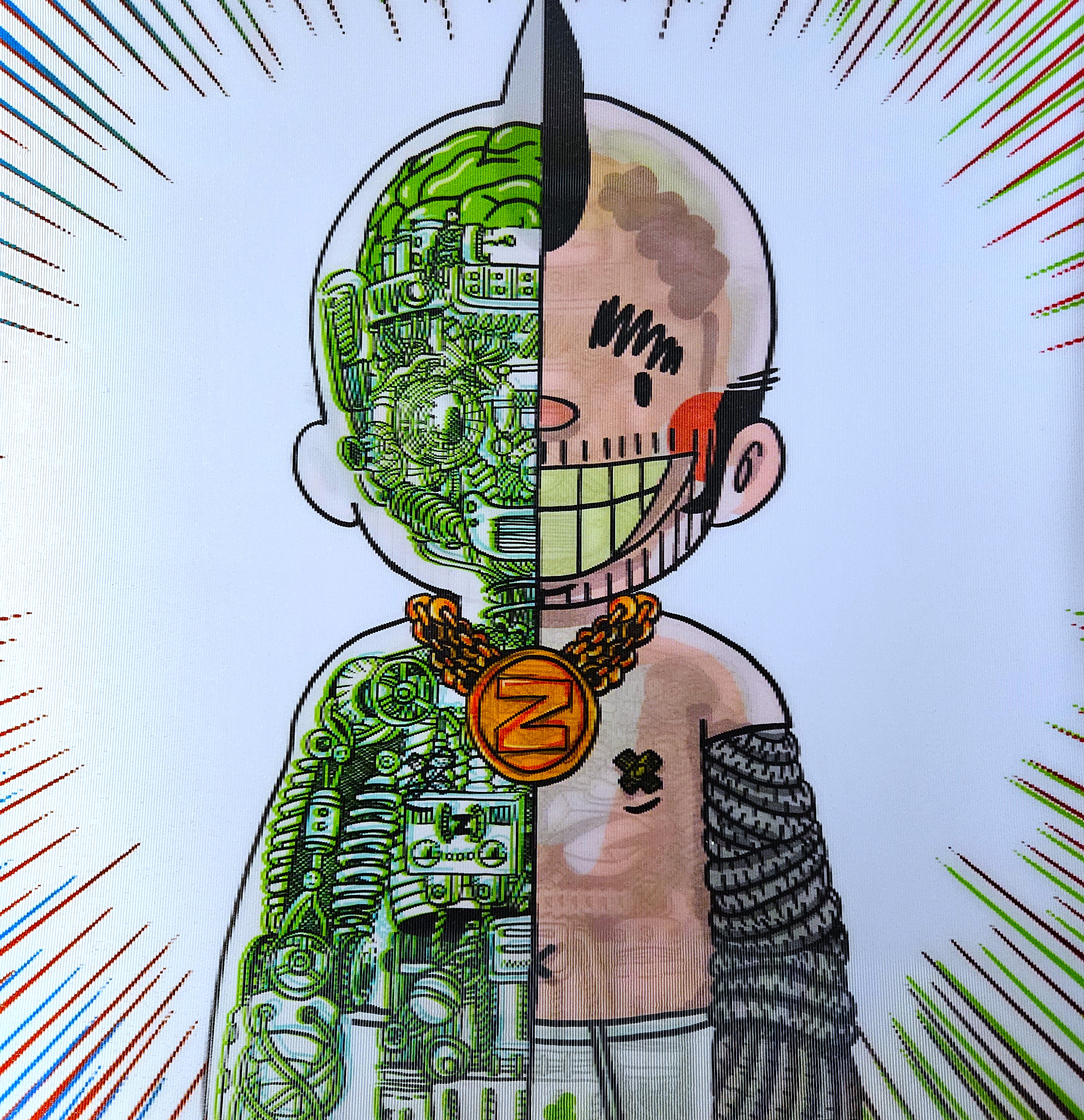 Look closely at this piece. At first, you see Teen Z. The character. The attitude. The rebellious stroke. But take a step. Shift the angle. And the machine appears. Your other half. The inner mechanism that keeps everything running—even when nothing makes sense.