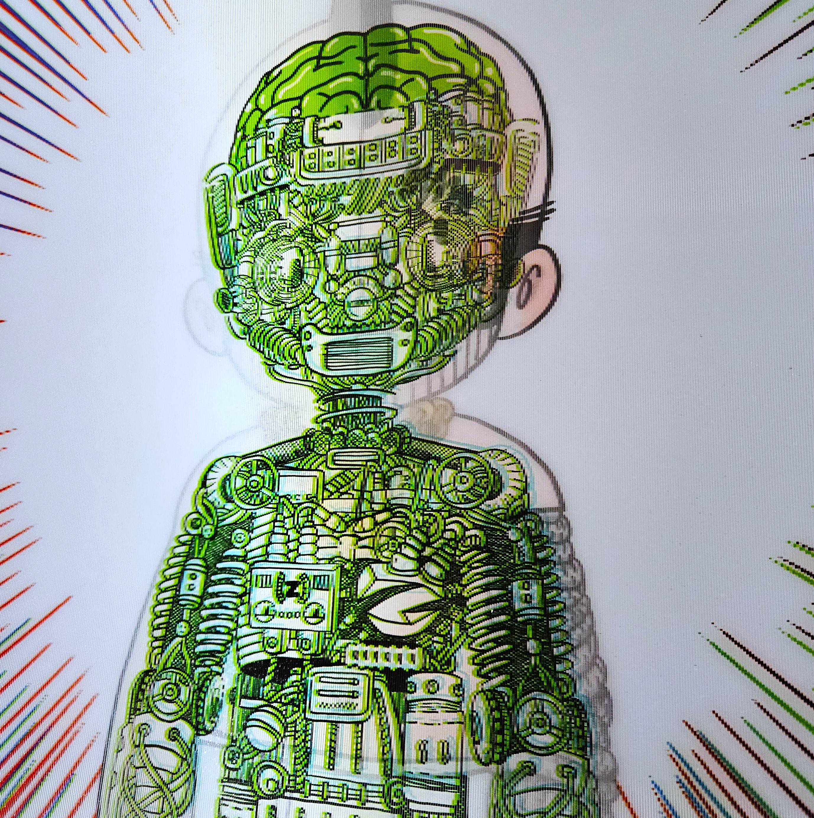 A3 Lenticular 2 Images-1 Print. Changes as You Move! by Judas Arrieta "TEEN Z ROBOT"