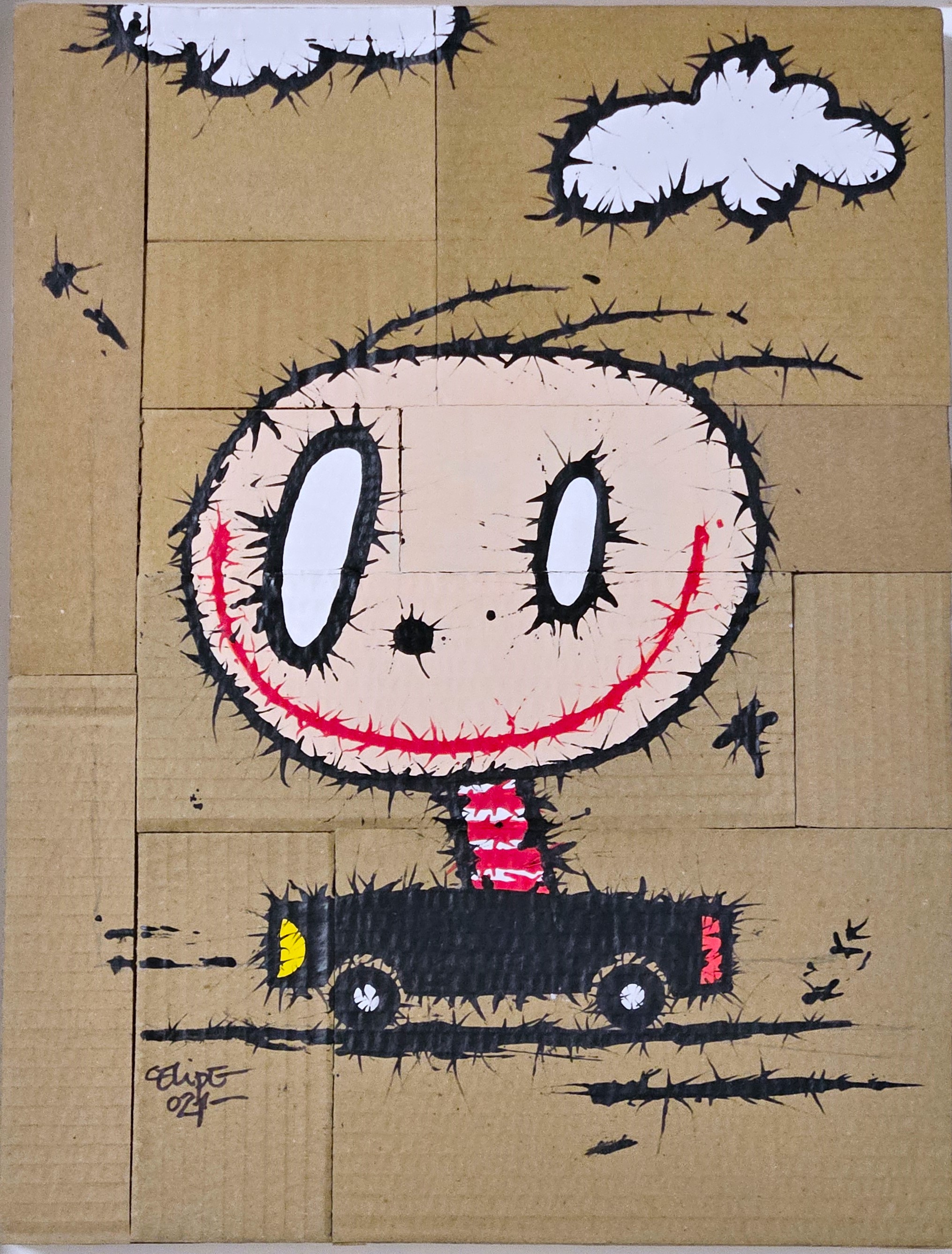 Known as Fragile Freaks, Célipe Perroloco is a multidisciplinary artist who transforms materials like cardboard, paper, canvas, and ink into creations full of strength and expressiveness.