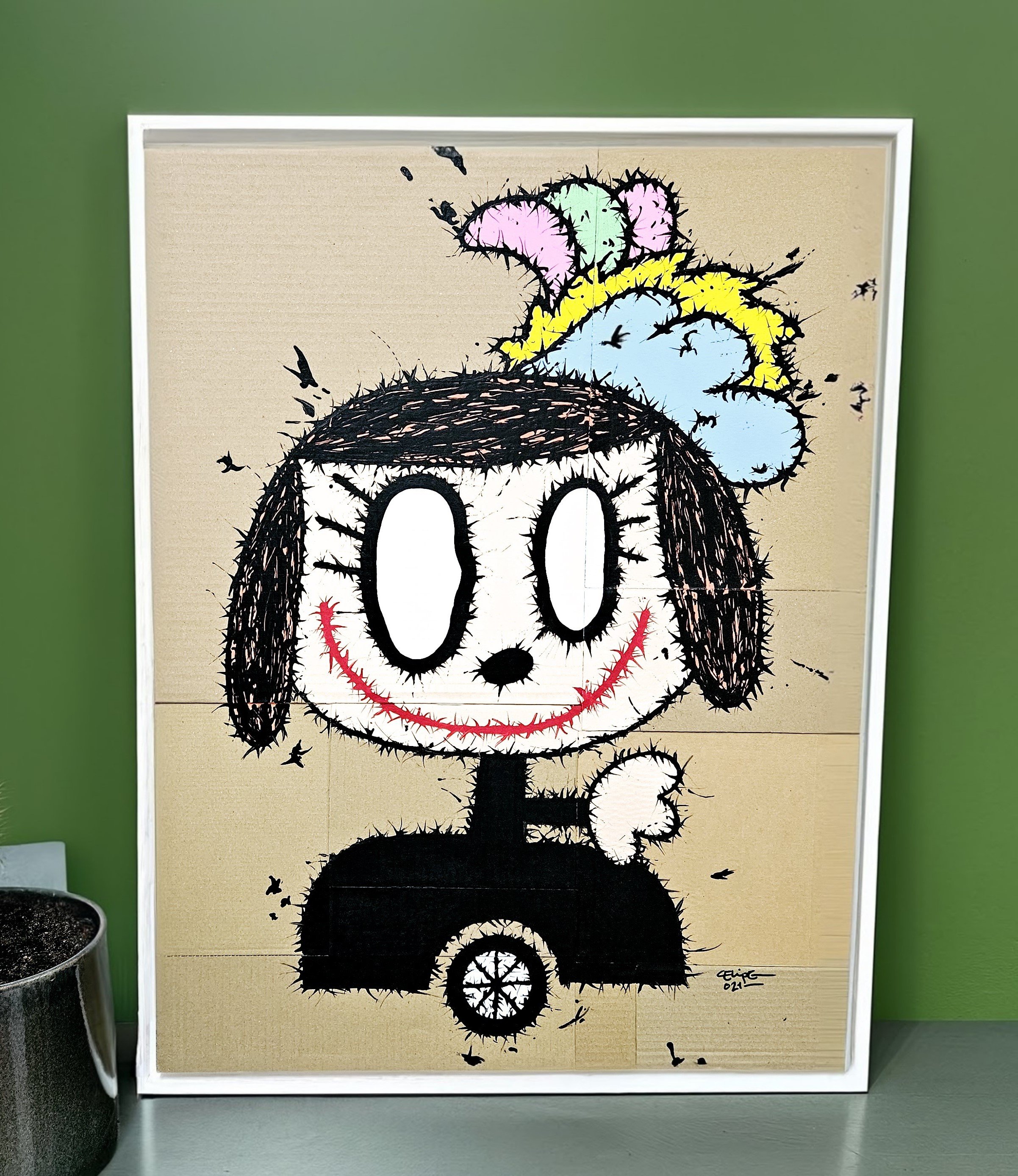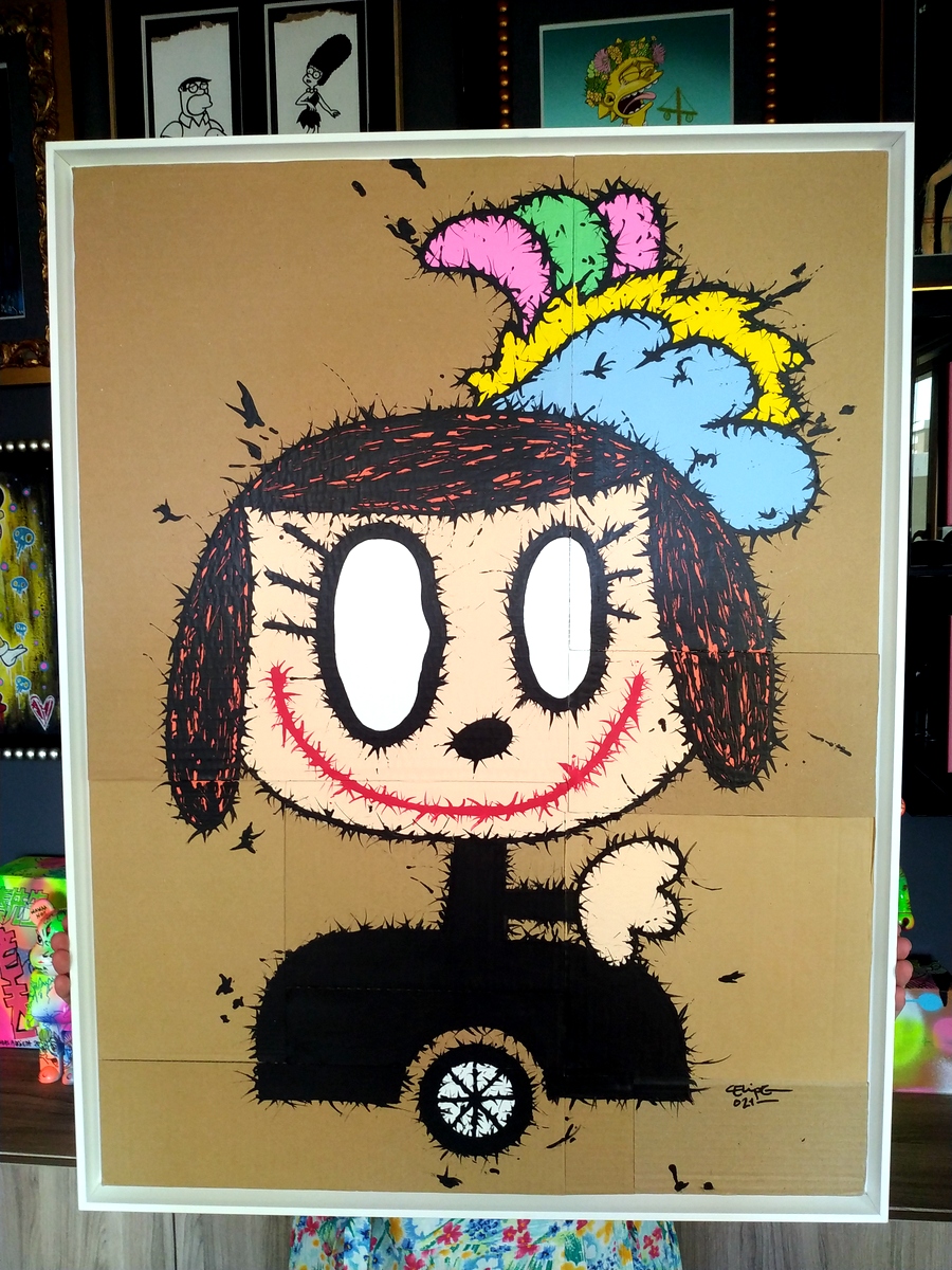 Known as Fragile Freaks, Célipe Perroloco is a multidisciplinary artist who transforms materials like cardboard, paper, canvas, and ink into creations full of strength and expressiveness.