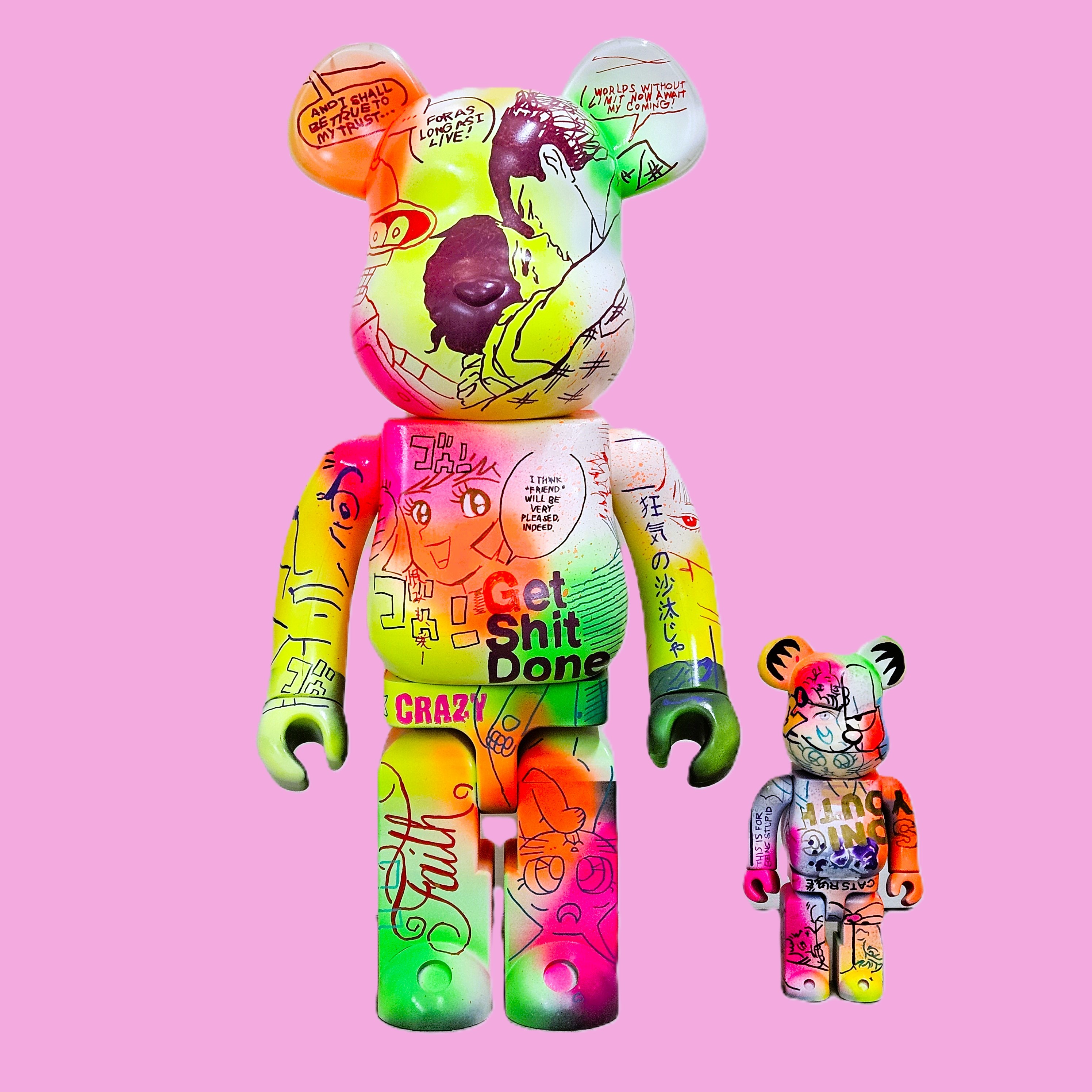 • All custom Bearbricks include a personalized, hand-painted card box by the artist—each one unique. You’re getting two artworks: a custom Art Toy and an original painting that can be displayed together or separately.