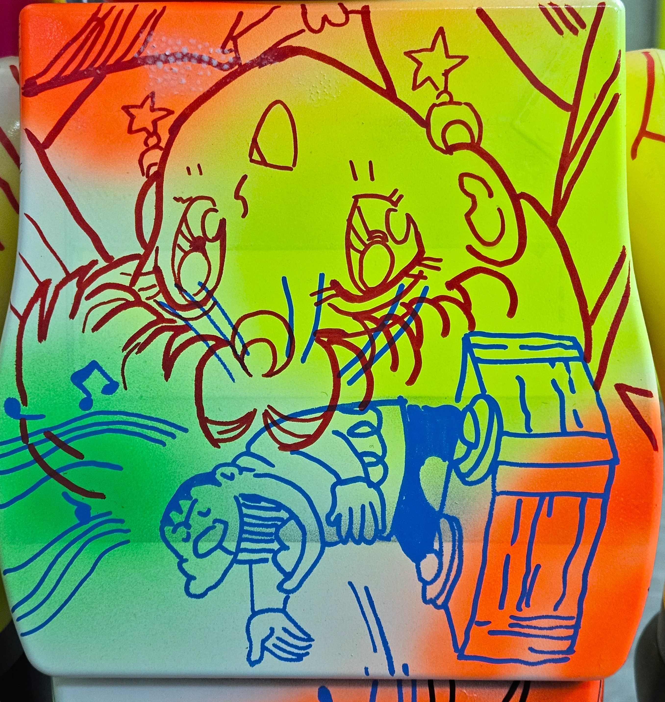 I’m big, bold, and bursting with a perfect chaos of memories, emotions, and pop culture. Every line and color on my surface has something to say, as if all the worlds you imagine collided right here.”