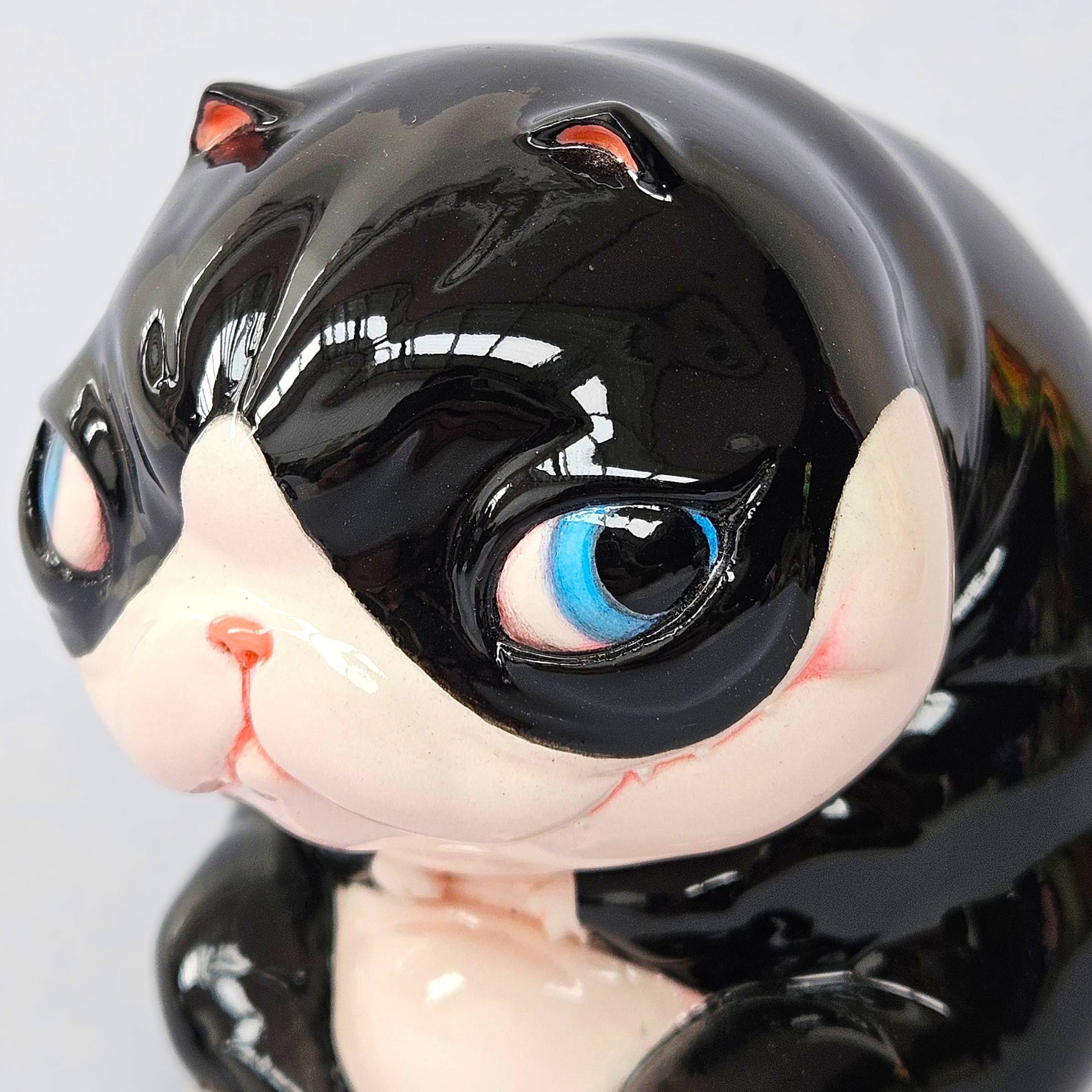 I’m a black-and-white classic, but don’t be fooled—beneath this sophisticated facade lies pure feline mischief.