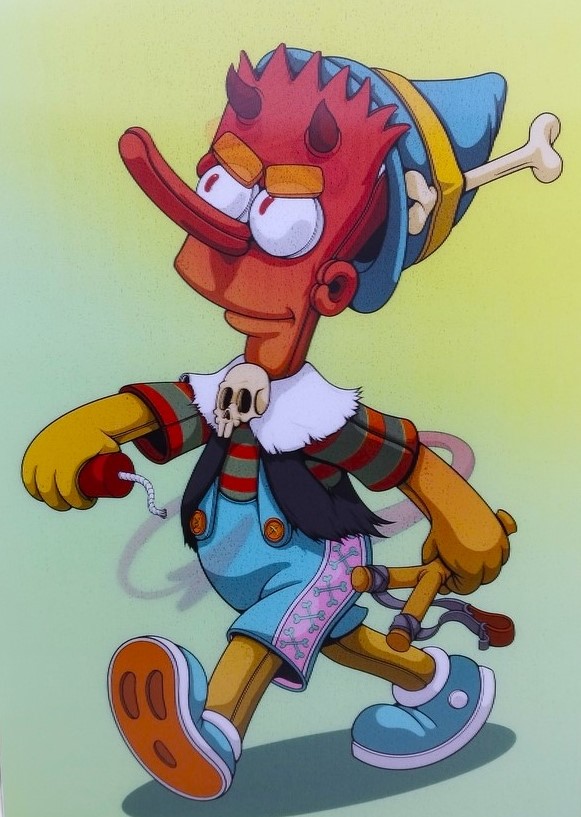 Born in Seville in 1989, Dhani Barragán blends lowbrow art and pop surrealism to transform iconic characters into universal symbols with critical messages. His playful yet dramatic style explores themes of transformation, connecting with audiences in an accessible and thought-provoking way.