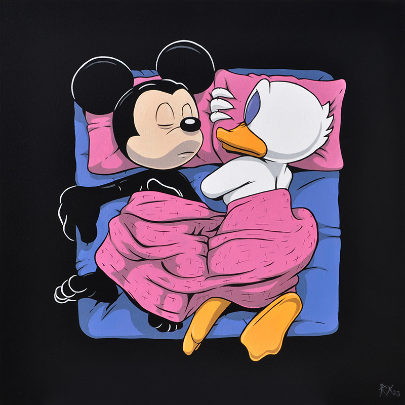 RX is a self-taught Italian artist who transforms pop imagery into a language of confrontation.