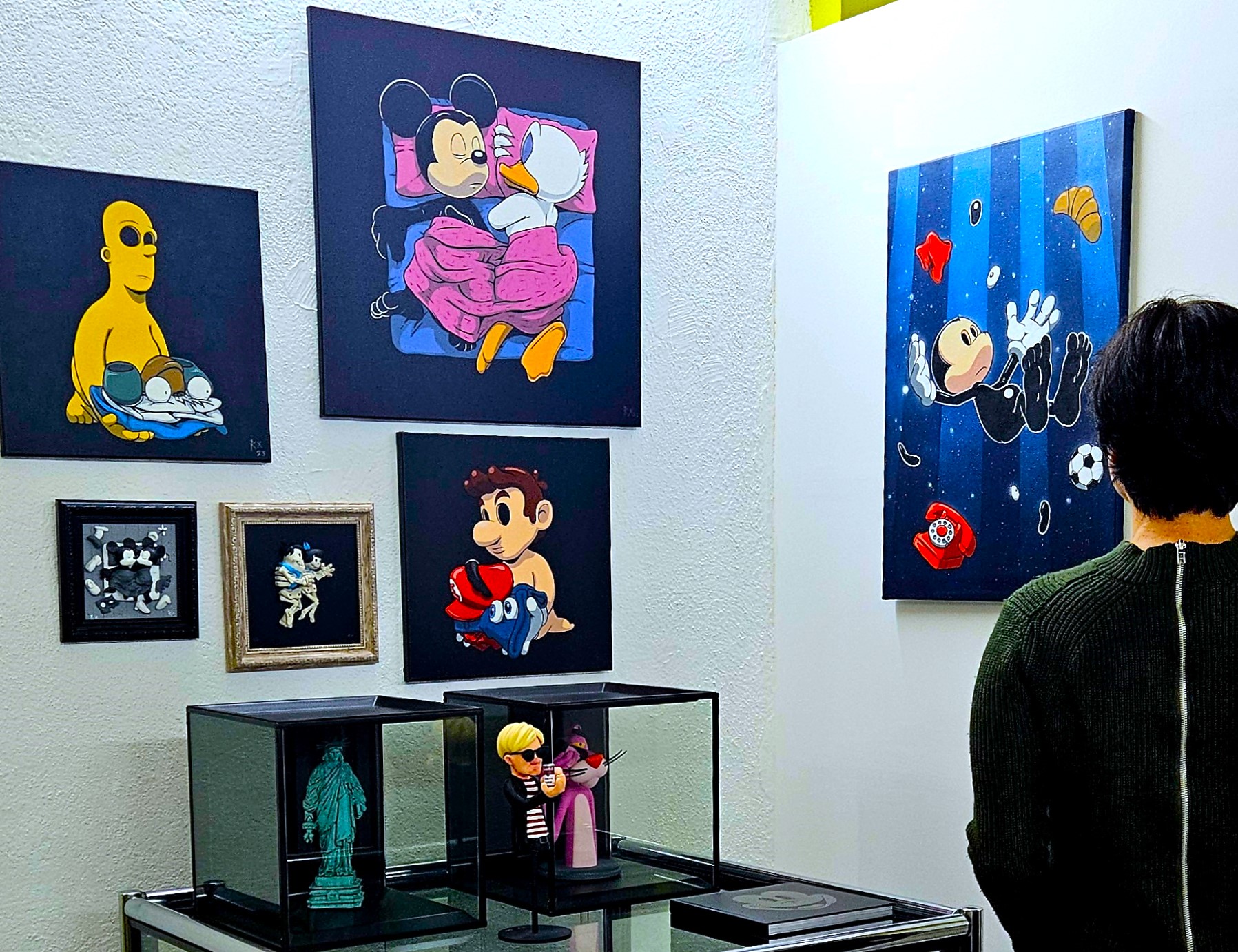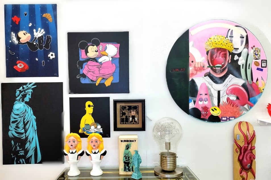 His works reinterpret childhood figures, consumer symbols, and cultural clichés to expose the darker —and truer— sides of the contemporary mind.