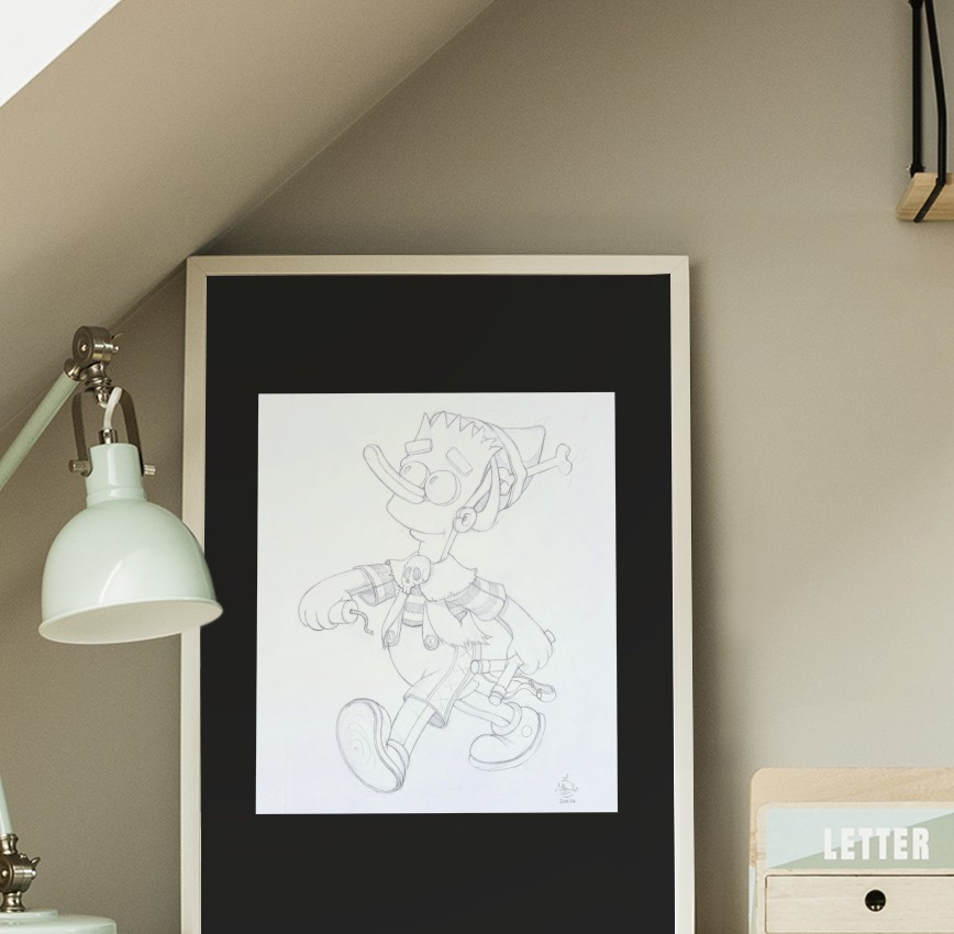 Original sketch of the artwork "Barocchio" by Dhani Barragán. Every line, every stroke is the first step of a unique vision—a piece that captures the essence of the creative process before becoming a finished work of art.