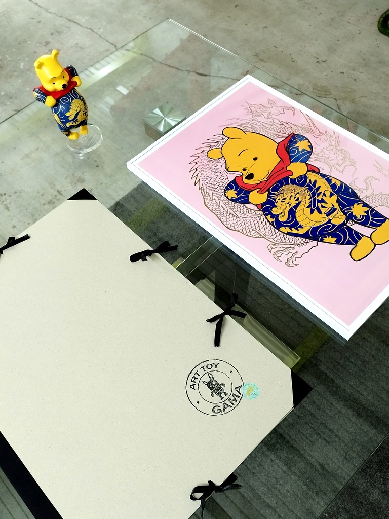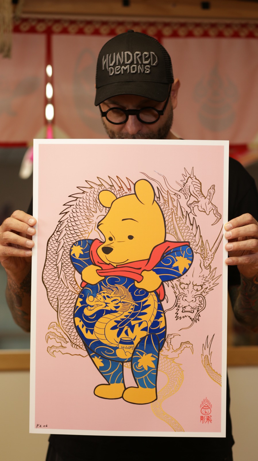 Tatpooh, 彫物 プーさん, created by Jee Saya, is not just a character; it's a symbol. Inspired by the Japanese Irezumi culture, it represents the transition from childhood to adulthood, reminding us that what shaped our childhood still lives within us, transformed into art and a need for self-expression.