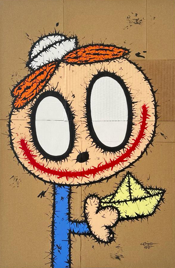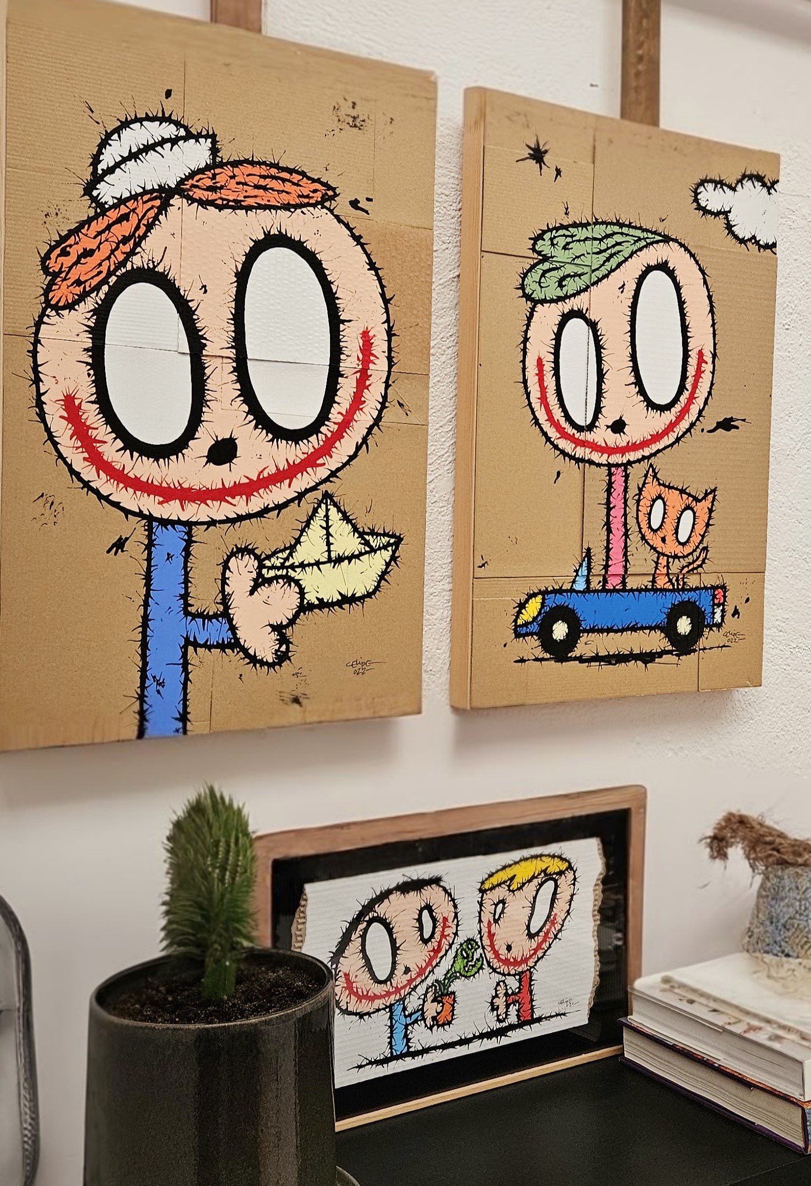 Known as Fragile Freaks, Célipe Perroloco is a multidisciplinary artist who transforms materials like cardboard, paper, canvas, and ink into creations full of strength and expressiveness.