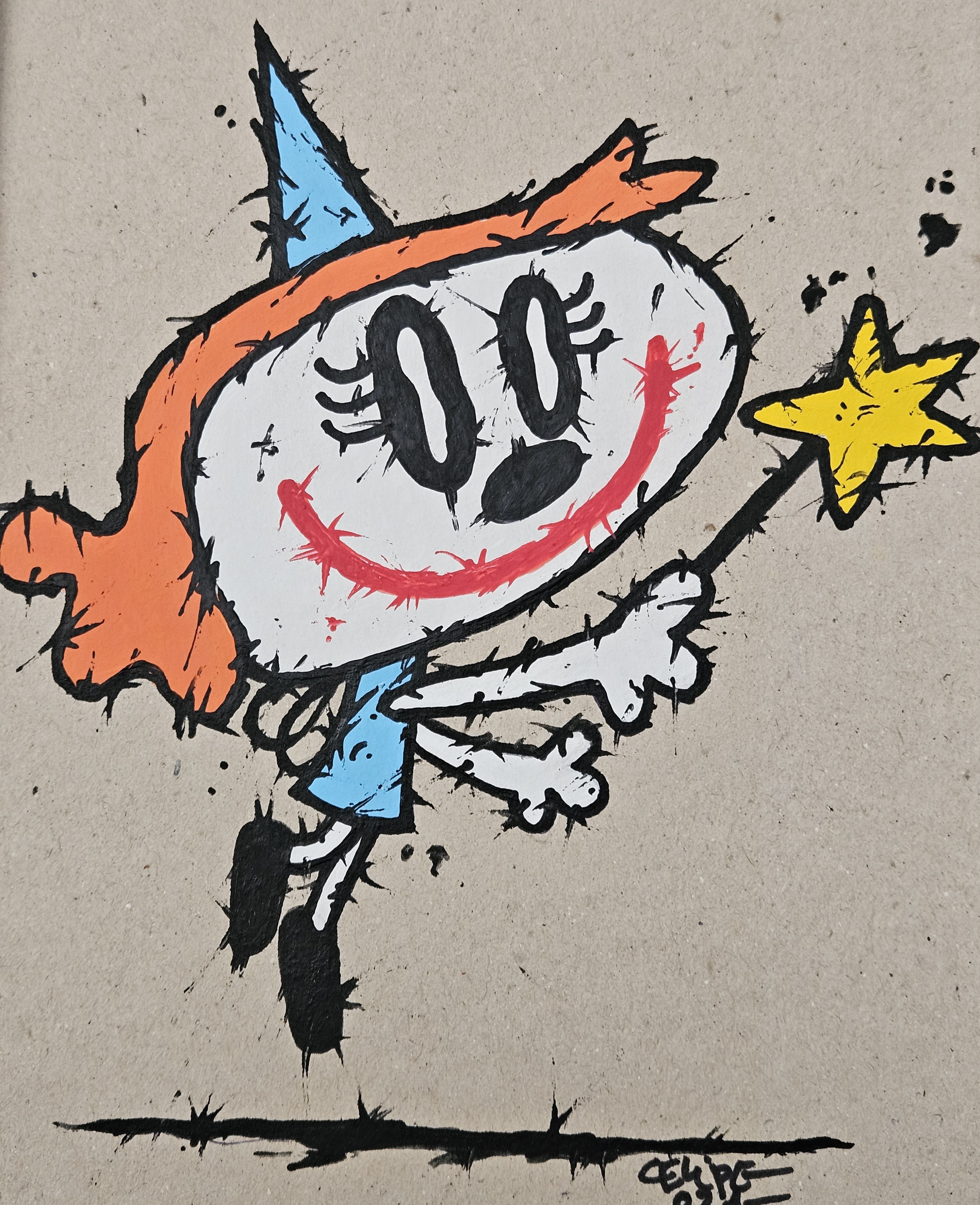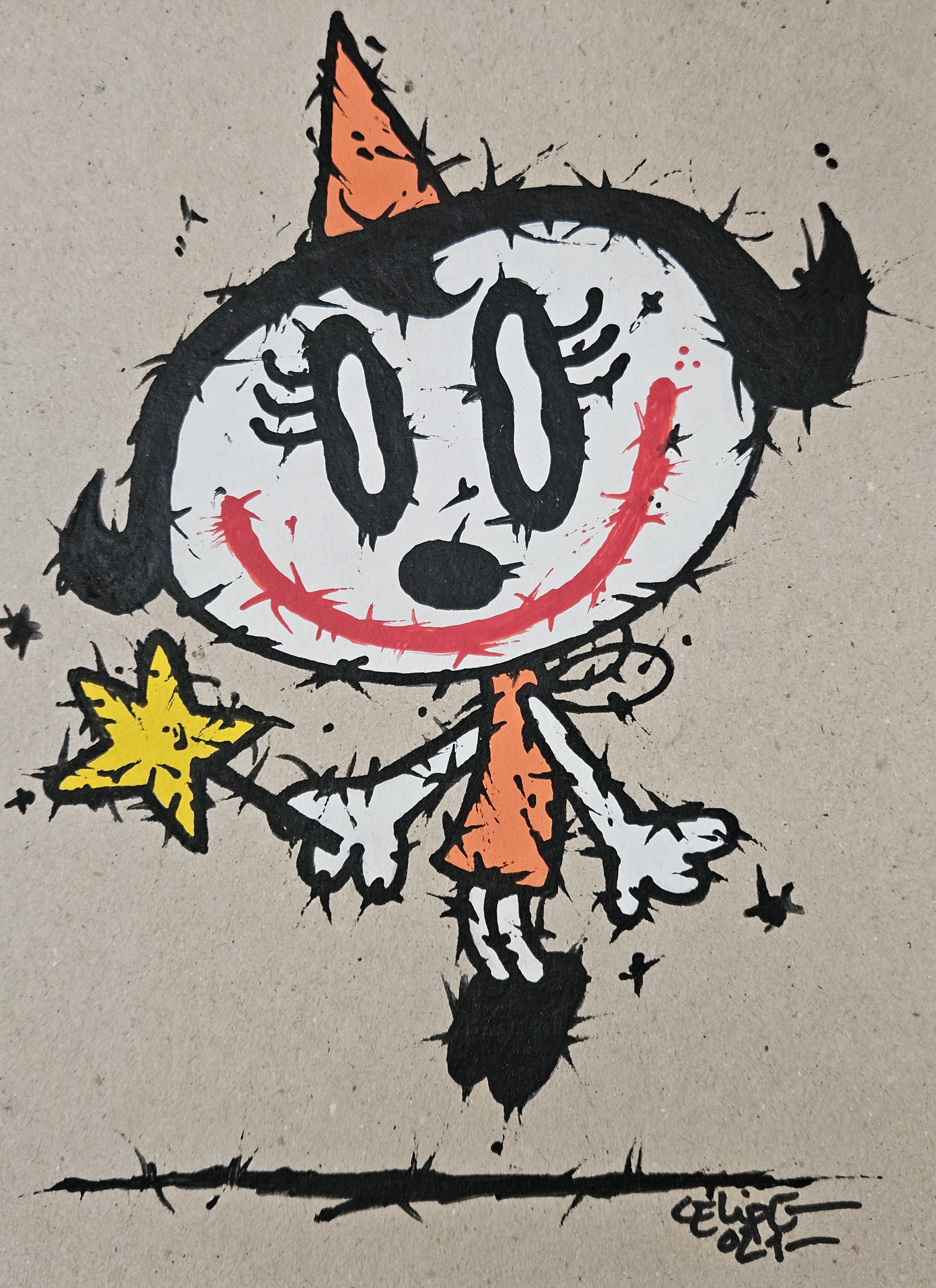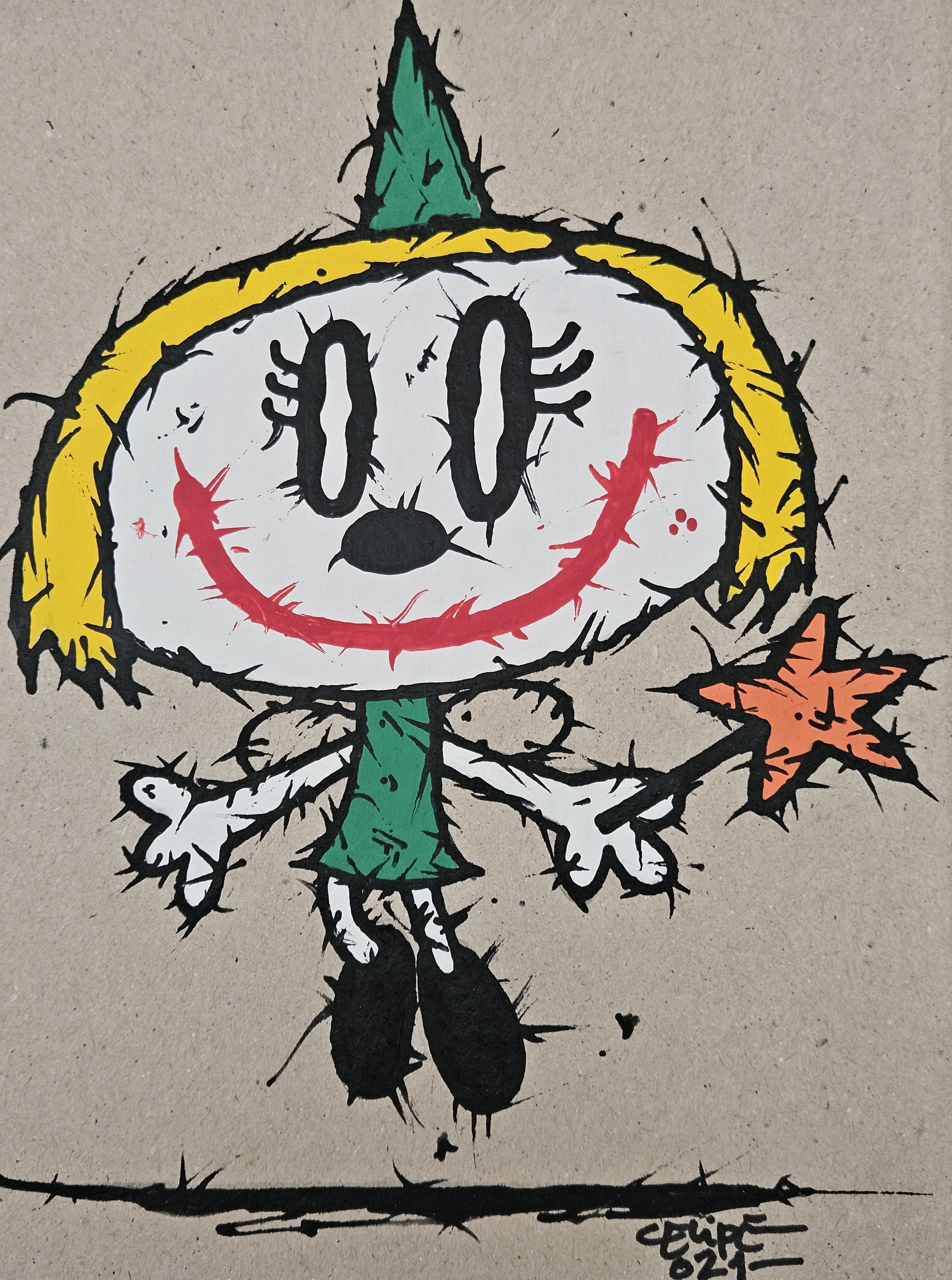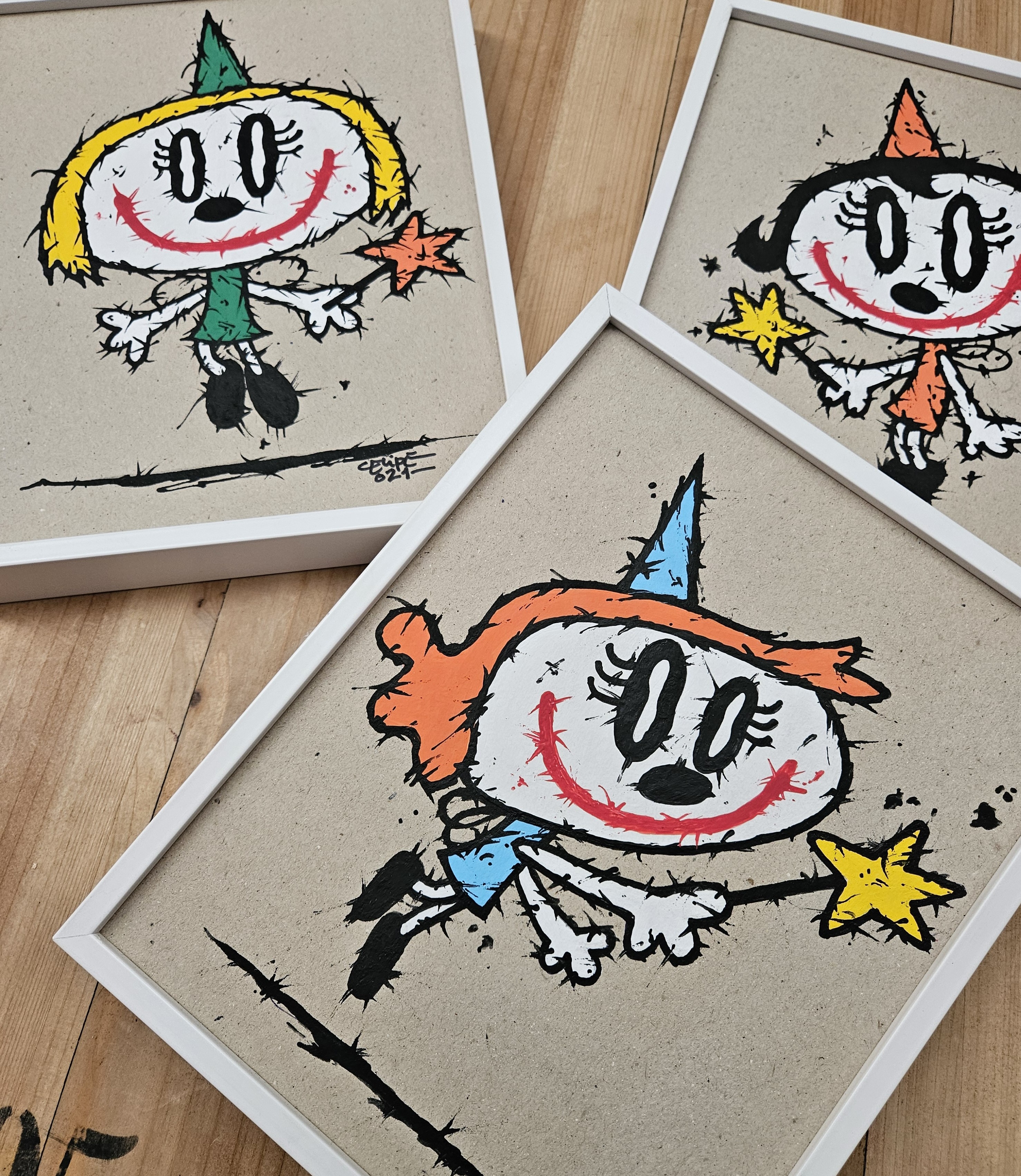 Known as Fragile Freaks, Célipe Perroloco is a multidisciplinary artist who transforms materials like cardboard, paper, canvas, and ink into creations full of strength and expressiveness.