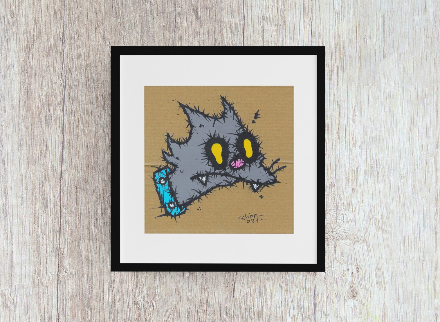 With those intense, almost fluorescent yellow eyes, completely hollow, and a spiky, nervous stroke, this piece doesn’t represent. It activates. Because Célipe Perroloco doesn’t paint characters. He invites you to actively construct meaning through your subjectivity, your experience, your discomfort, your nostalgia, your strangeness...