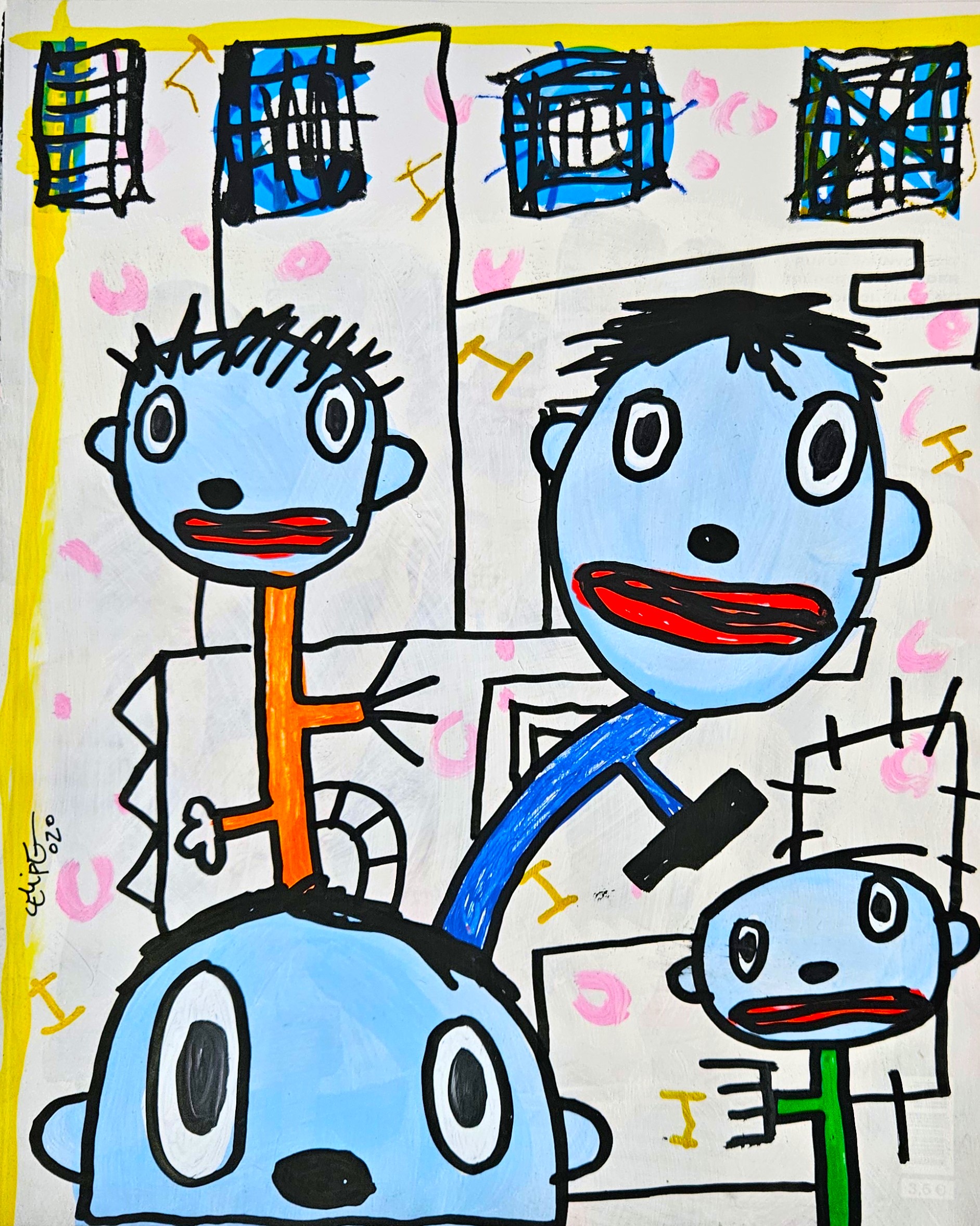 This piece plays with that absurd fusion between identity and work, between who you are and what you do. The fast, unfiltered, almost childlike line is the perfect disguise for a sharper comment: how we sometimes turn into cogs in a machine until we forget where the person ends and the tool begins.