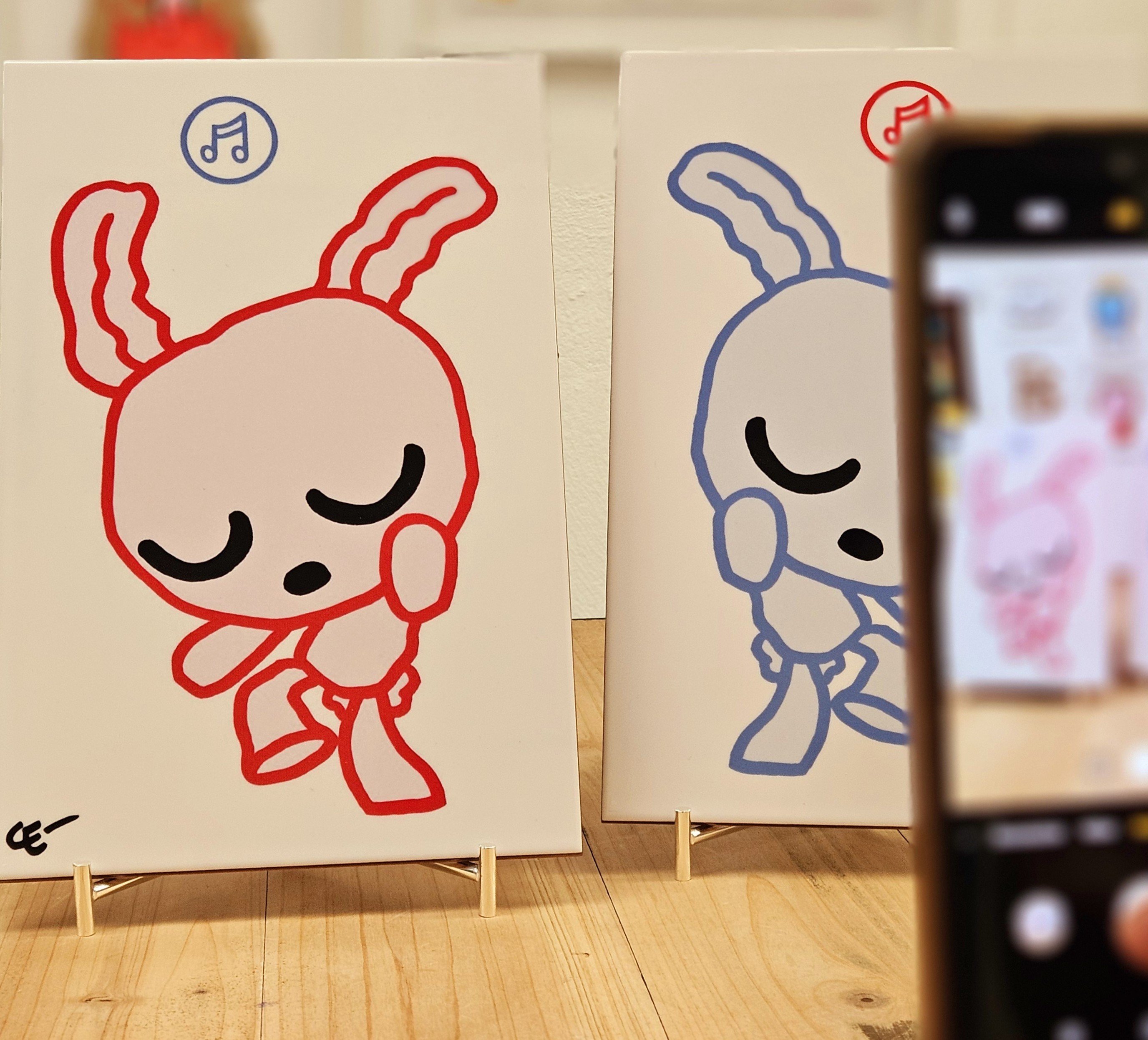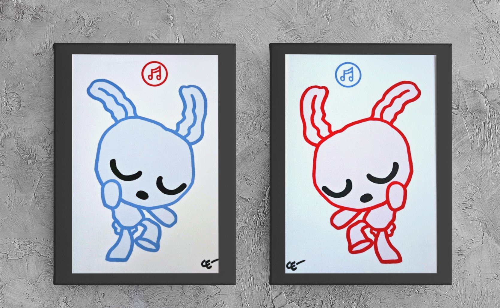 Set Ceramic Tile "Pink & Blue Bunny" Art by Celipe Perroloco