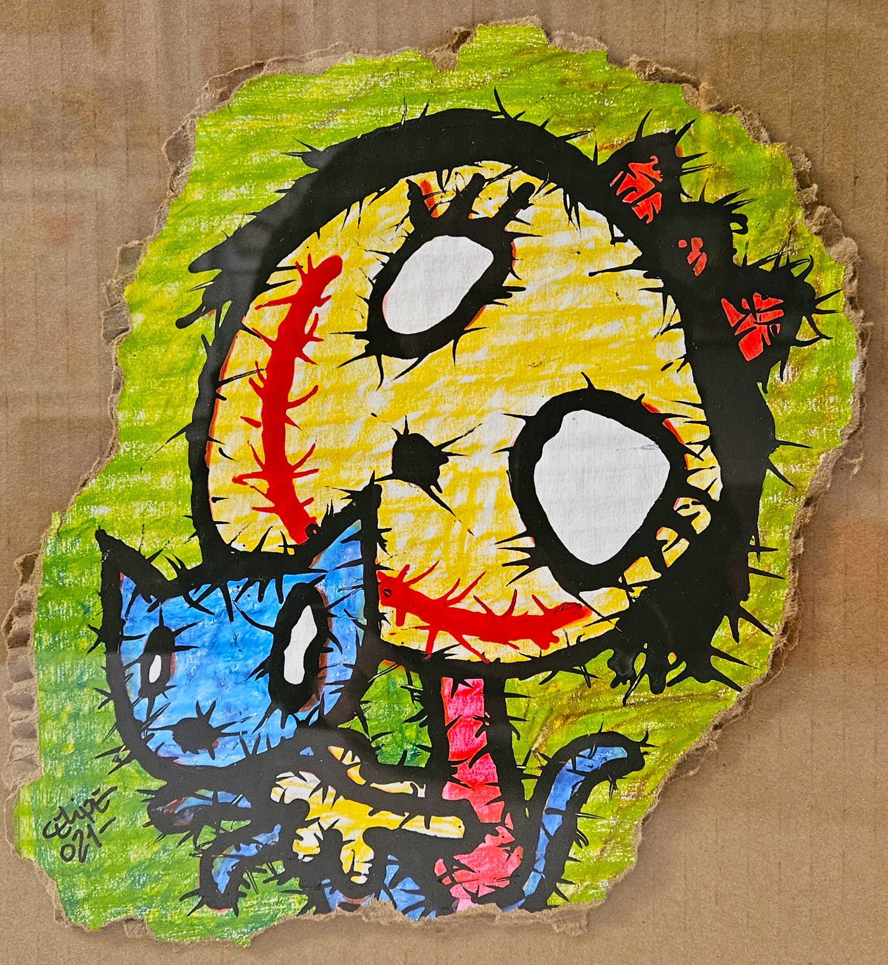 Known as Fragile Freaks, Célipe Perroloco is a multidisciplinary artist who transforms materials like cardboard, paper, canvas, and ink into creations full of strength and expressiveness.