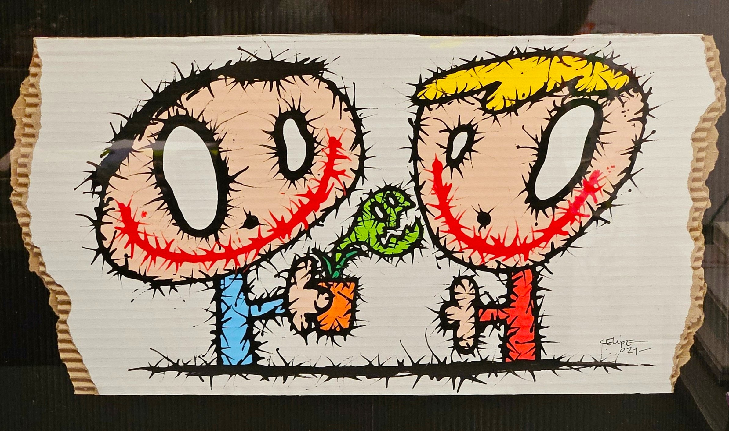 Known as Fragile Freaks, Célipe Perroloco is a multidisciplinary artist who transforms materials like cardboard, paper, canvas, and ink into creations full of strength and expressiveness.