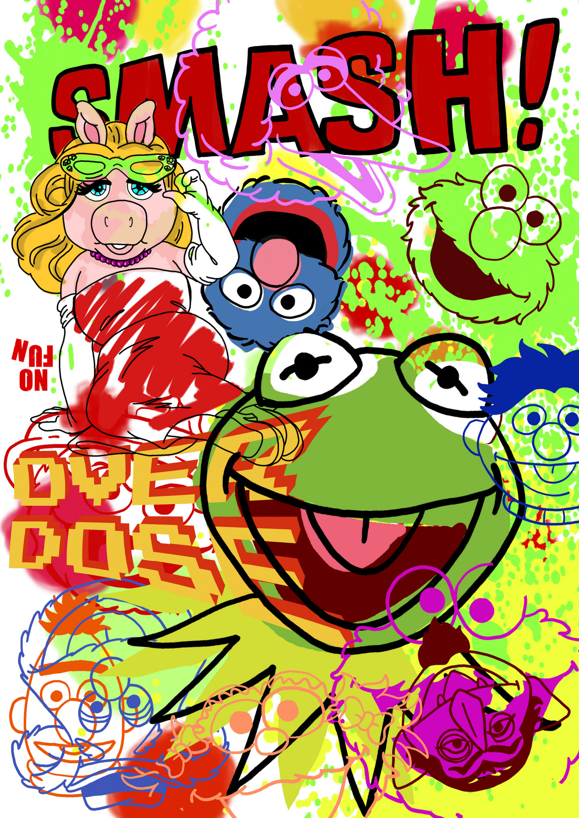 Kermit the Frog, Miss Piggy, Elmo, Ernie and Bert, Count von Count, Big Bird, Grover, Zoe, Fozzie…all tangled in a blast of color, noise, and memory.