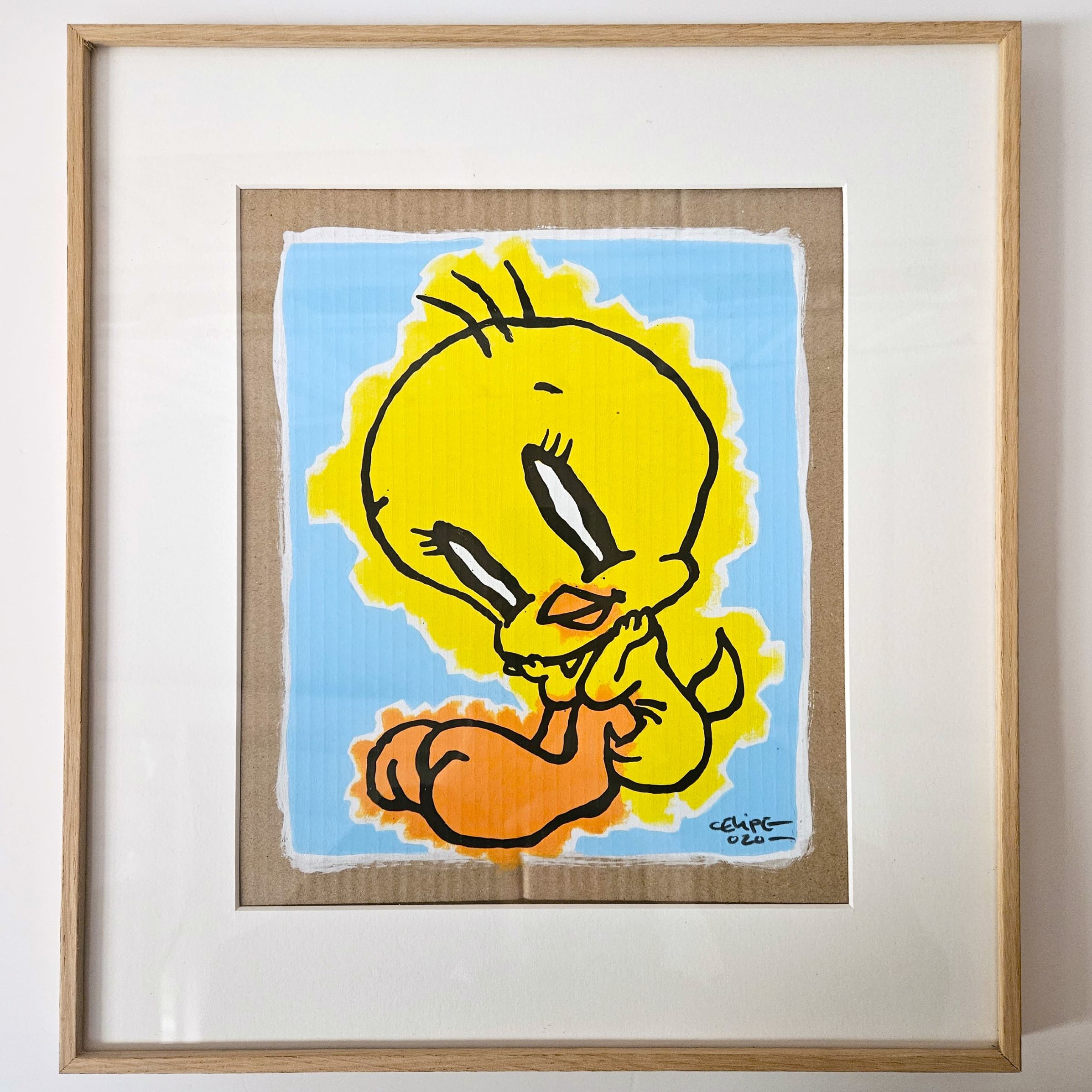 📺Painting by Celipe Perroloco "Corrupted Yellow Bird"